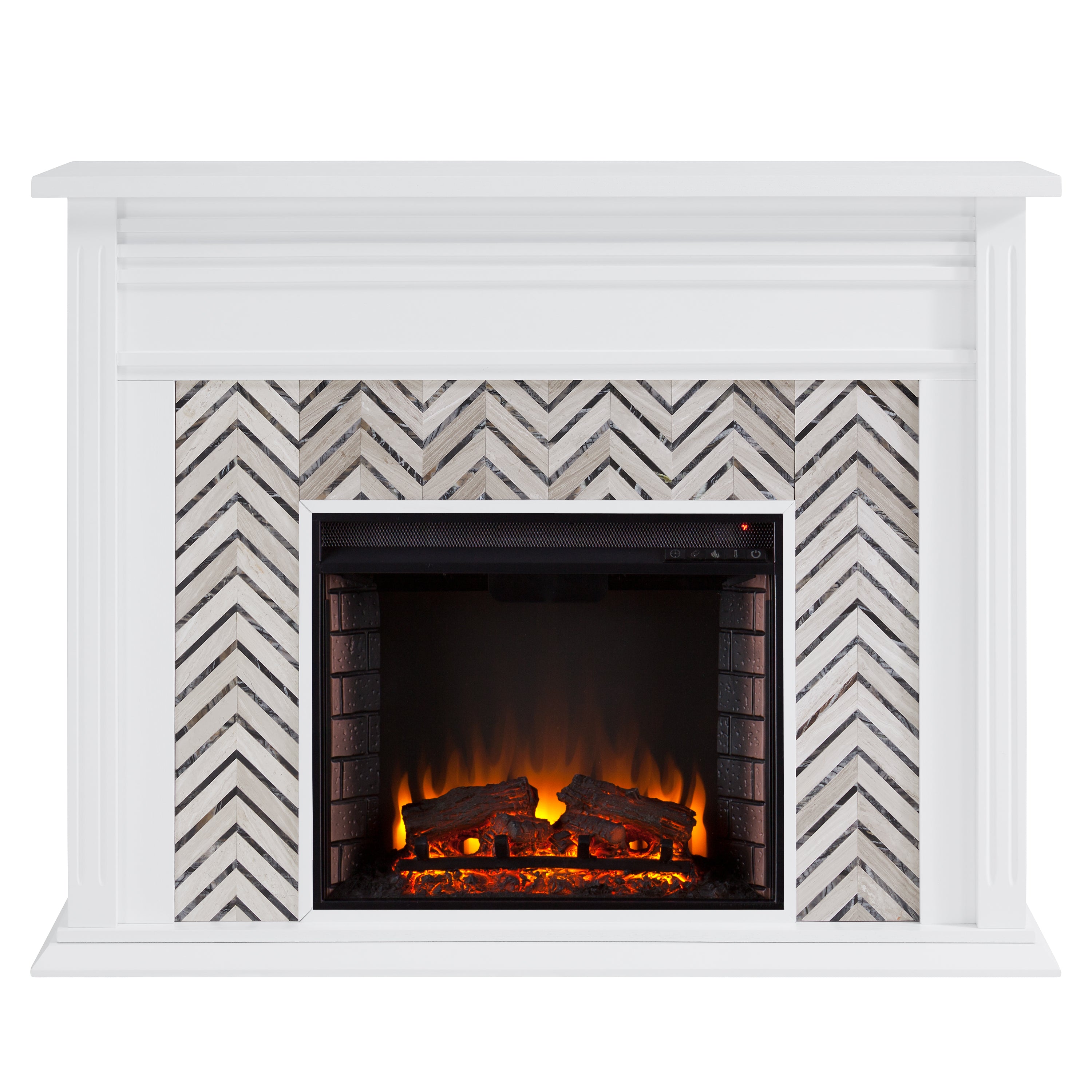 - Feature 7: Chevron patterned marble surround in two-tone finish add a modern touch