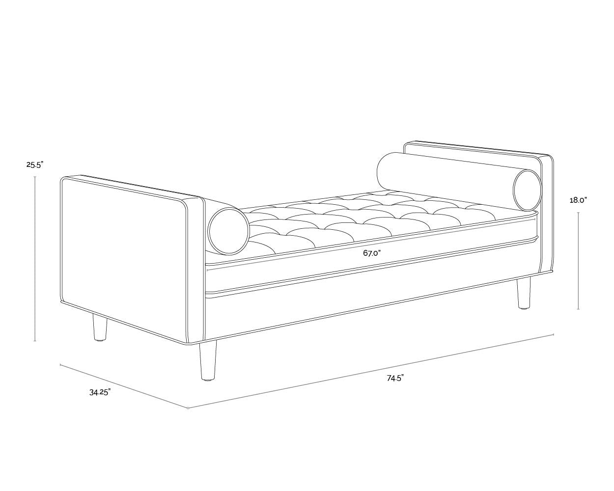 - Dimensions: Donnie Bench - Black - Tobacco Tan 108572 = 74.5W x 34.25D x 25.5H | 70lbs