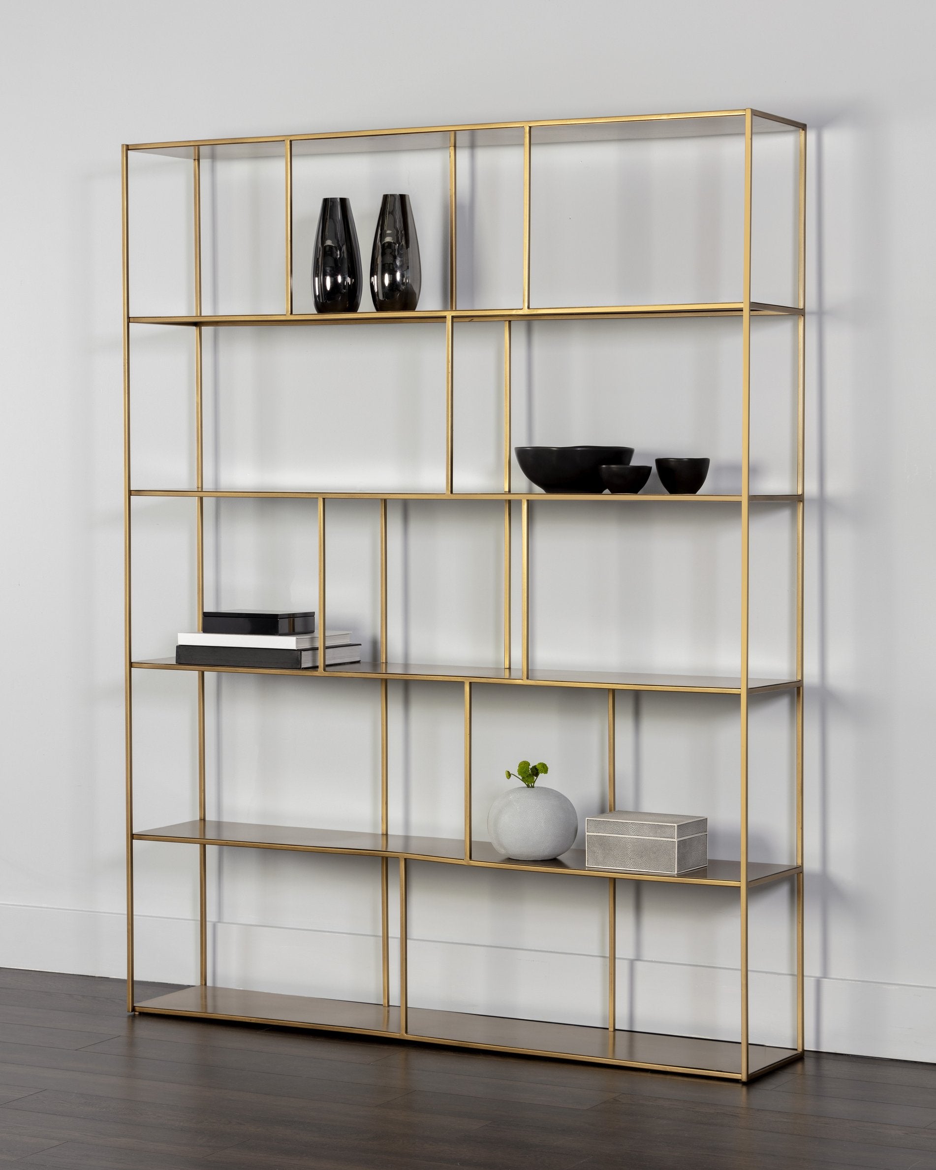 - Dimensions: Eiffel Bookcase - Extra Large - Antique Brass 105940 = 60W x 12D x 77H | 80lbs