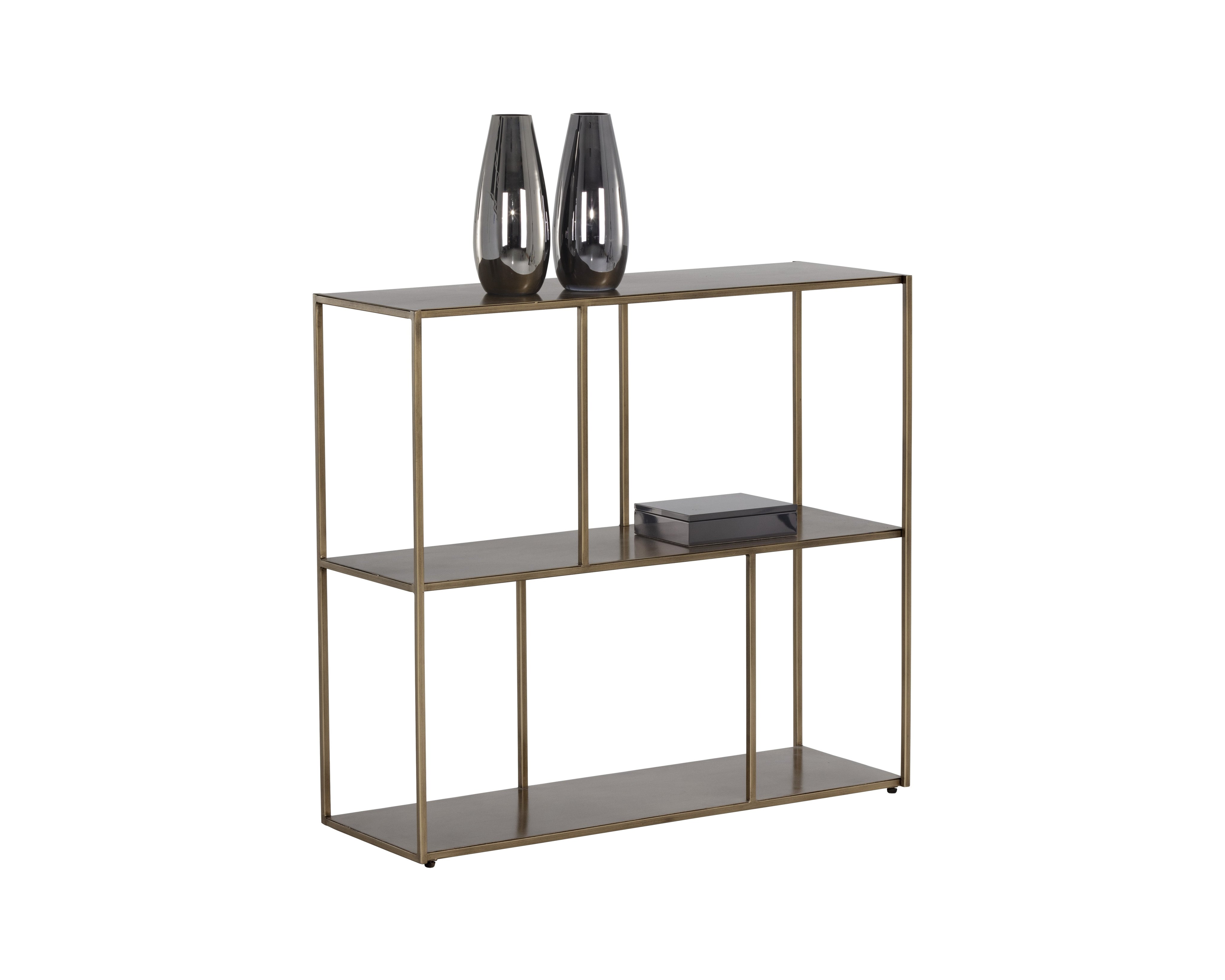 - Dimensions: Eiffel Low Bookcase - Large - Antique Brass 106604 = 60W x 12D x 31H | 40lbs