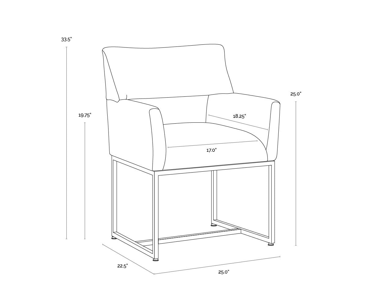 - Dimensions: Greco Dining Armchair - Aura Teal 110782 = 25W x 22.5D x 33.5H | 21lbs