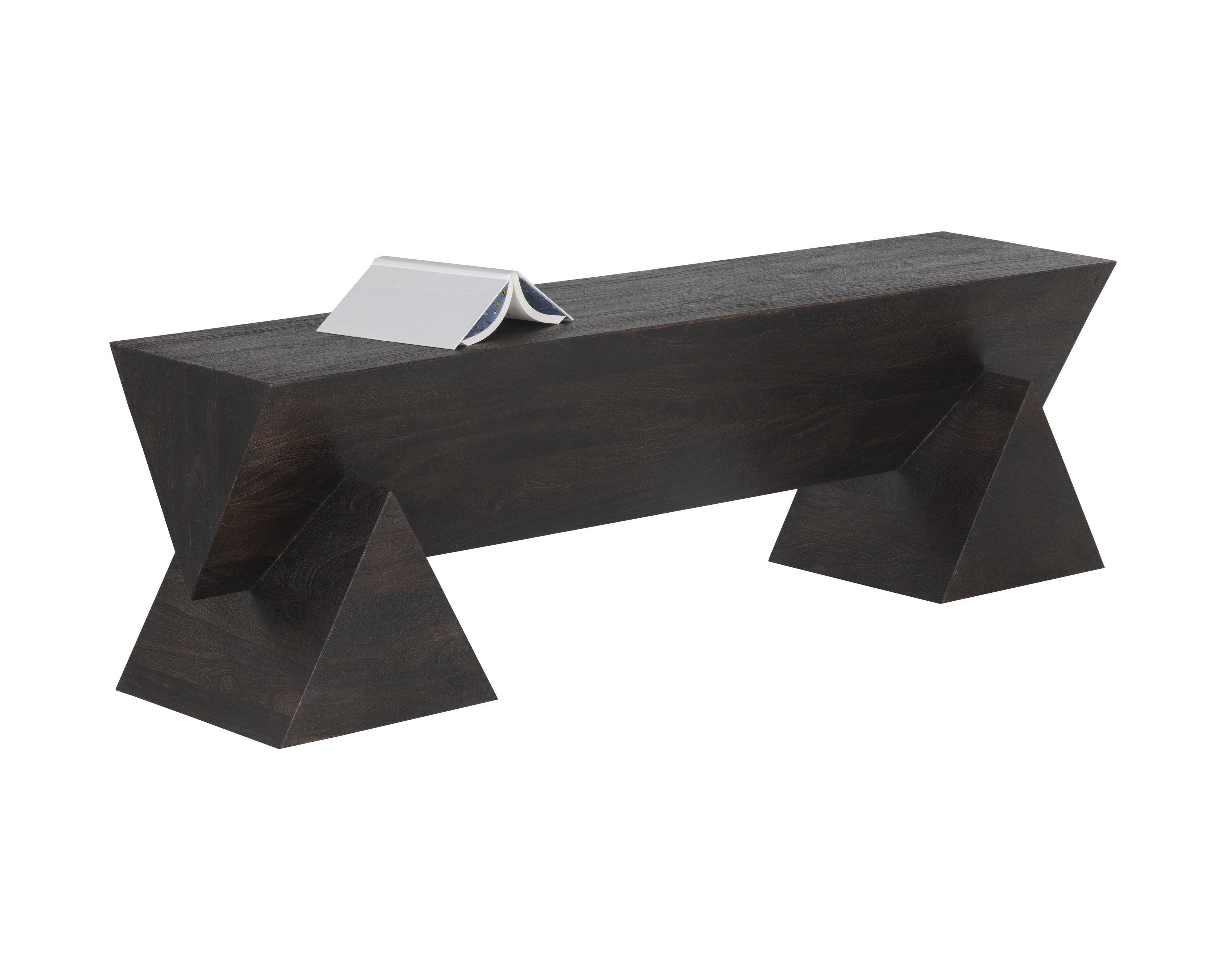 - Dimensions: Gregor Bench - Dark Brown 106637 = 59W x 13.75D x 17.75H | 64lbs