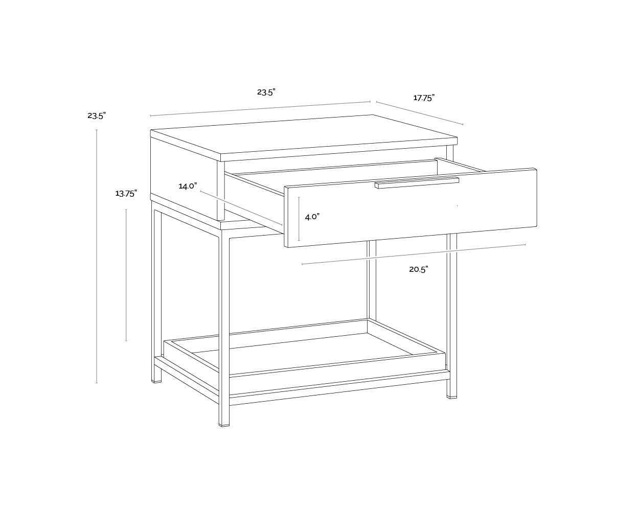- Dimensions: Rebel Nightstand - Large - Champagne Gold - Cream 109074 = 38W x 20D x 27.25H | 84lbs