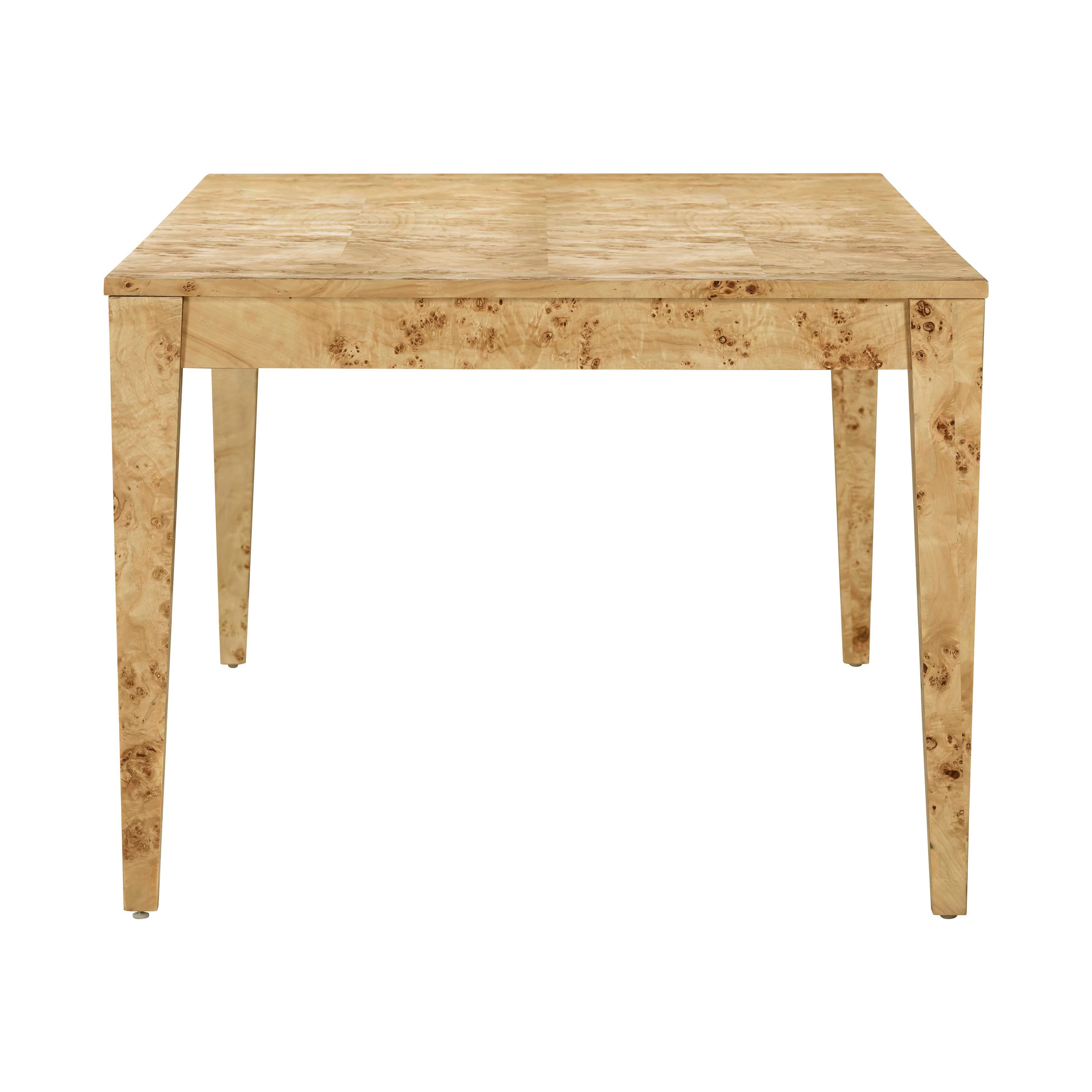 - Combination of chic modern burl wood with a classic French country dining table silhouette