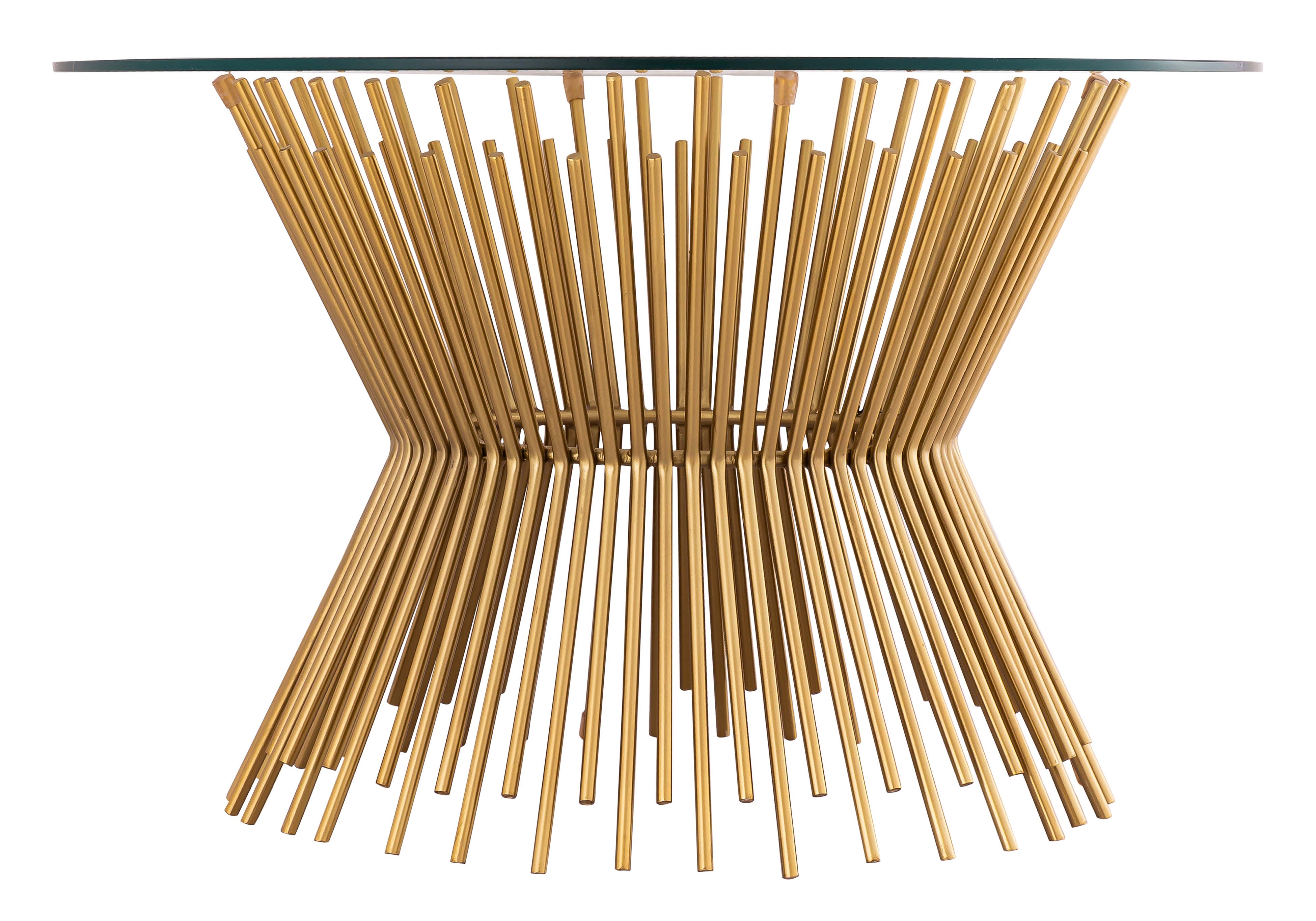 - Feature 3 : Glass tabletop Hourglass pedestal base