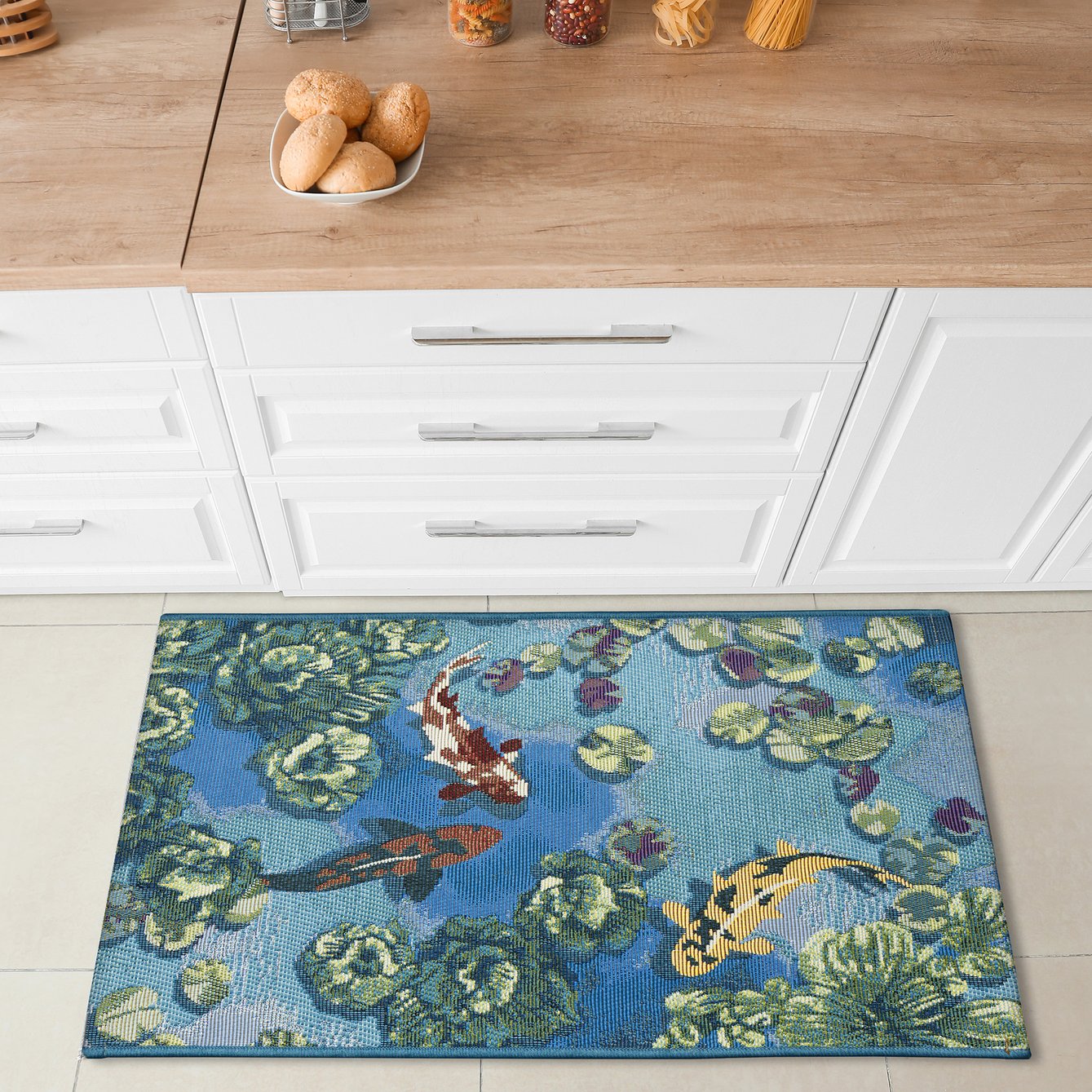 - Features Modern Novelty All-Purpose Coastal Home Lodge Decorative Multicolor Ocean brightly colored koi Fish swimming peacefully in the lily pond