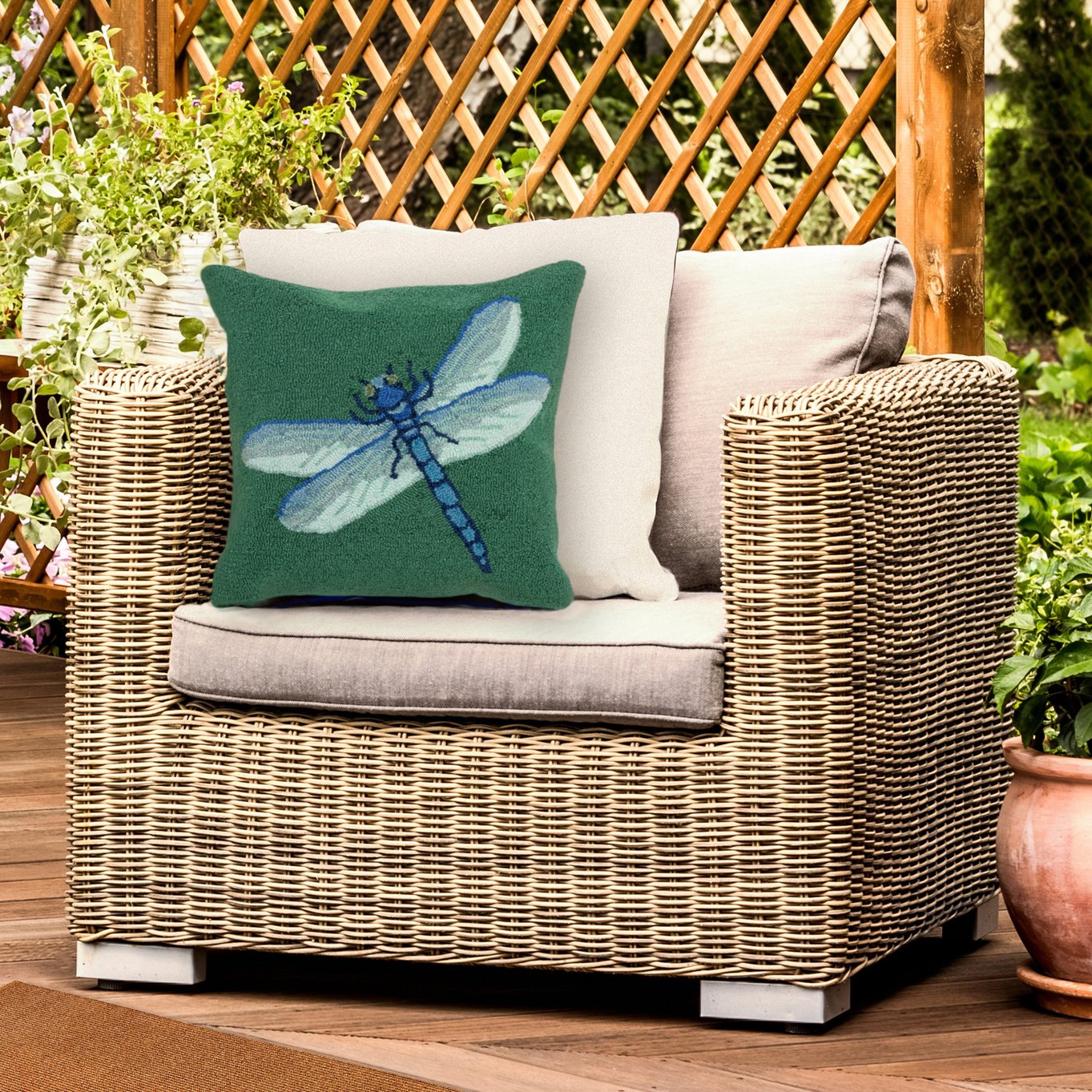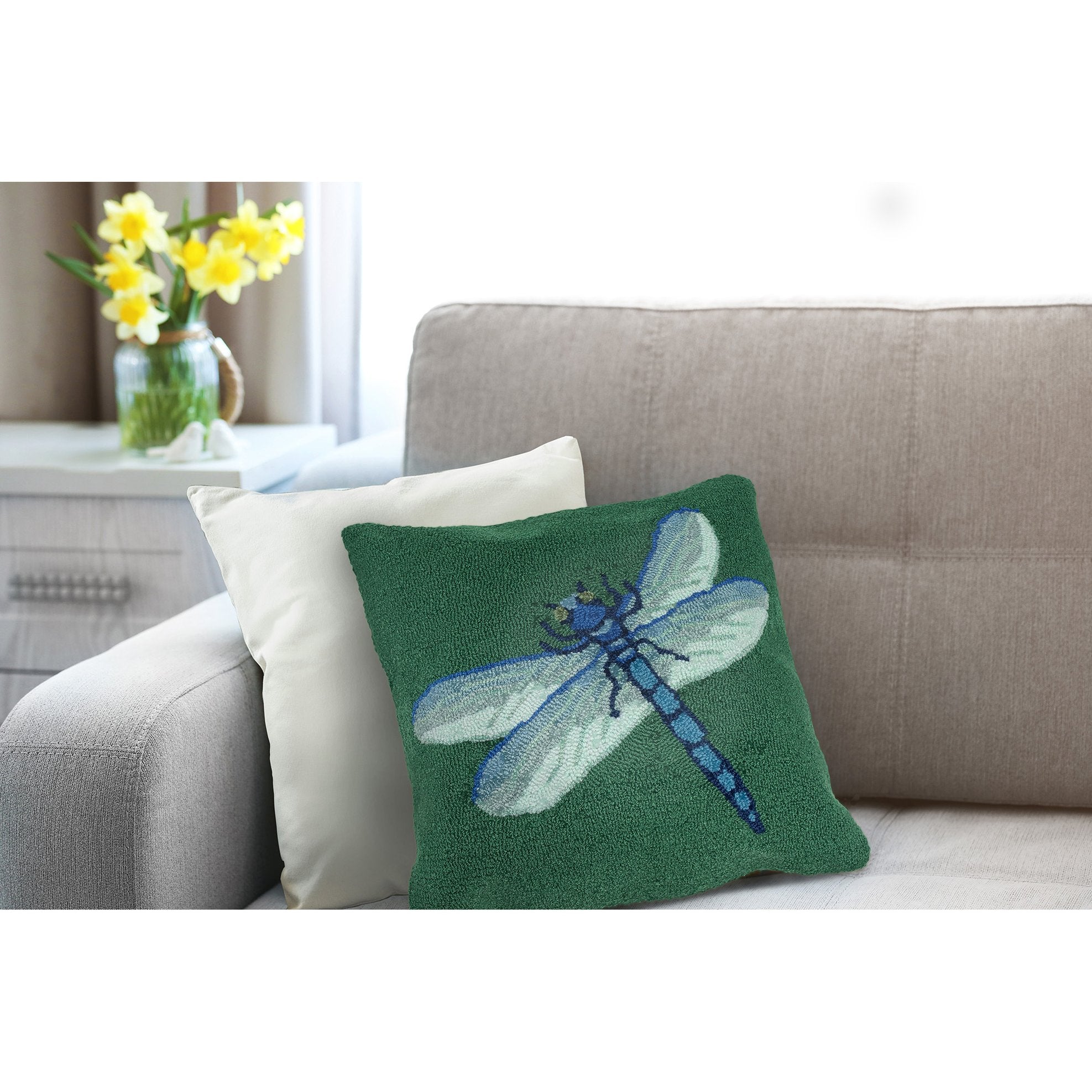 - Features an All-Purpose All-Season Country Garden Home Global Nature Decorative Multicolor pillow with a stylized dragonfly on a solid a background