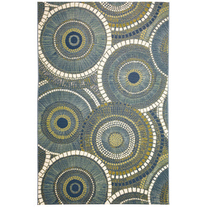 - Feature 10: Features blue and green circles accents with ivory borders