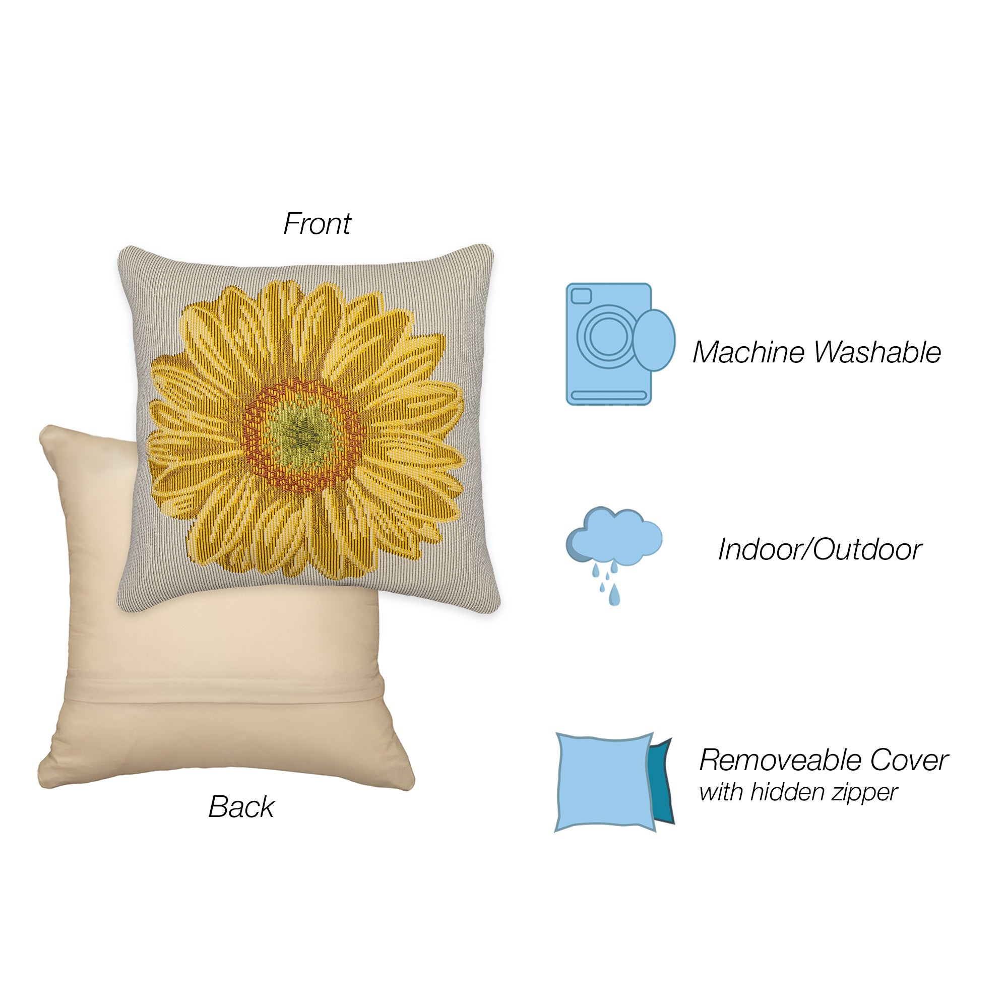 - Masterfully woven of weather-resistant of 75% polypropylene/25% Polyester face and 100% Polyester back Fiber fill Insert Machine Made Machine Washable Synthetic Blend Hidden zipper Removable Cover pillow Insert Toss Lumbar All-Purpose all-season Cushion