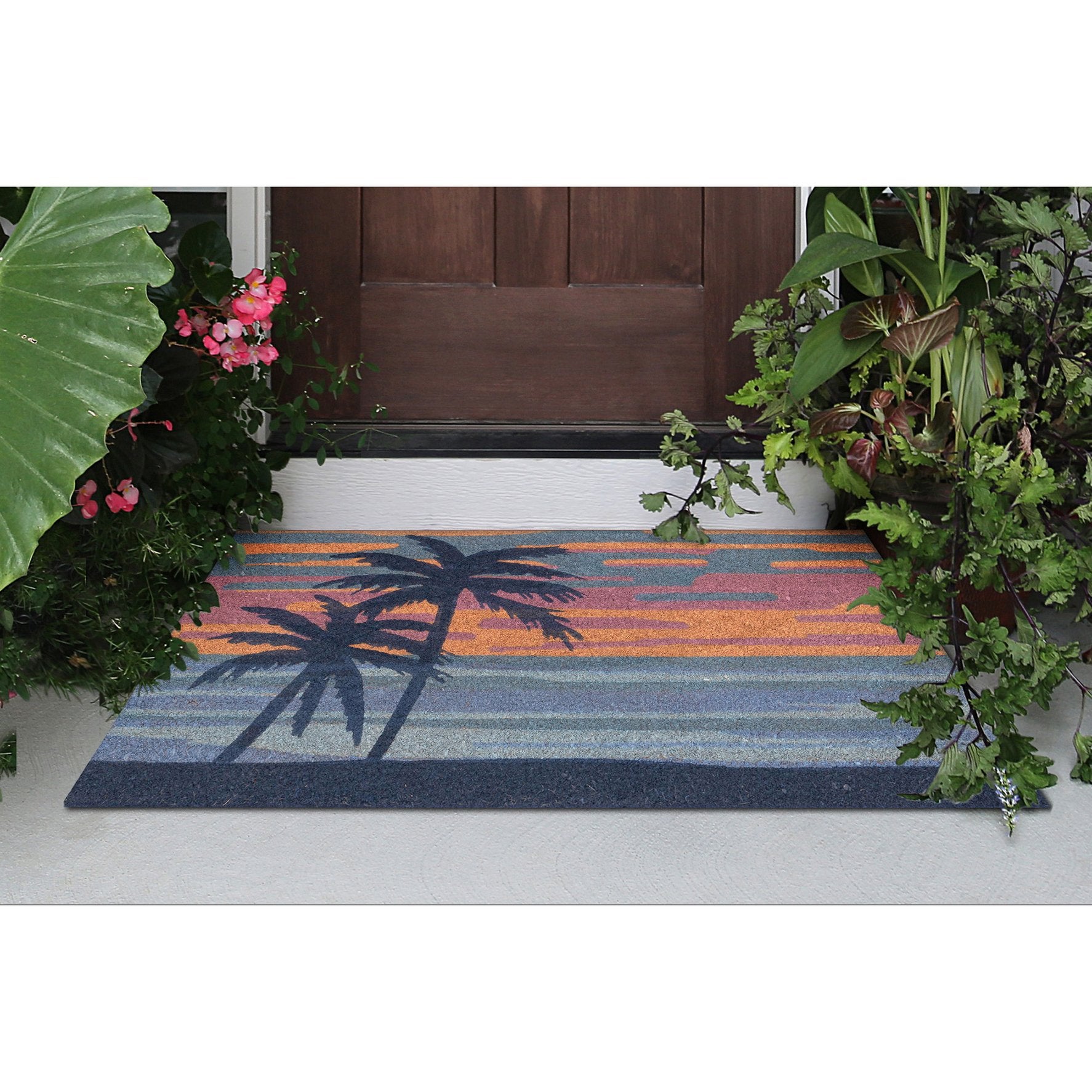 - Features a Contemporary, global All-Purpose, Coastal, Beach, Ocean, Casual Colorful, Graphic, Nautical, Botanical, Leaf mat with a Tropical sunset Accent