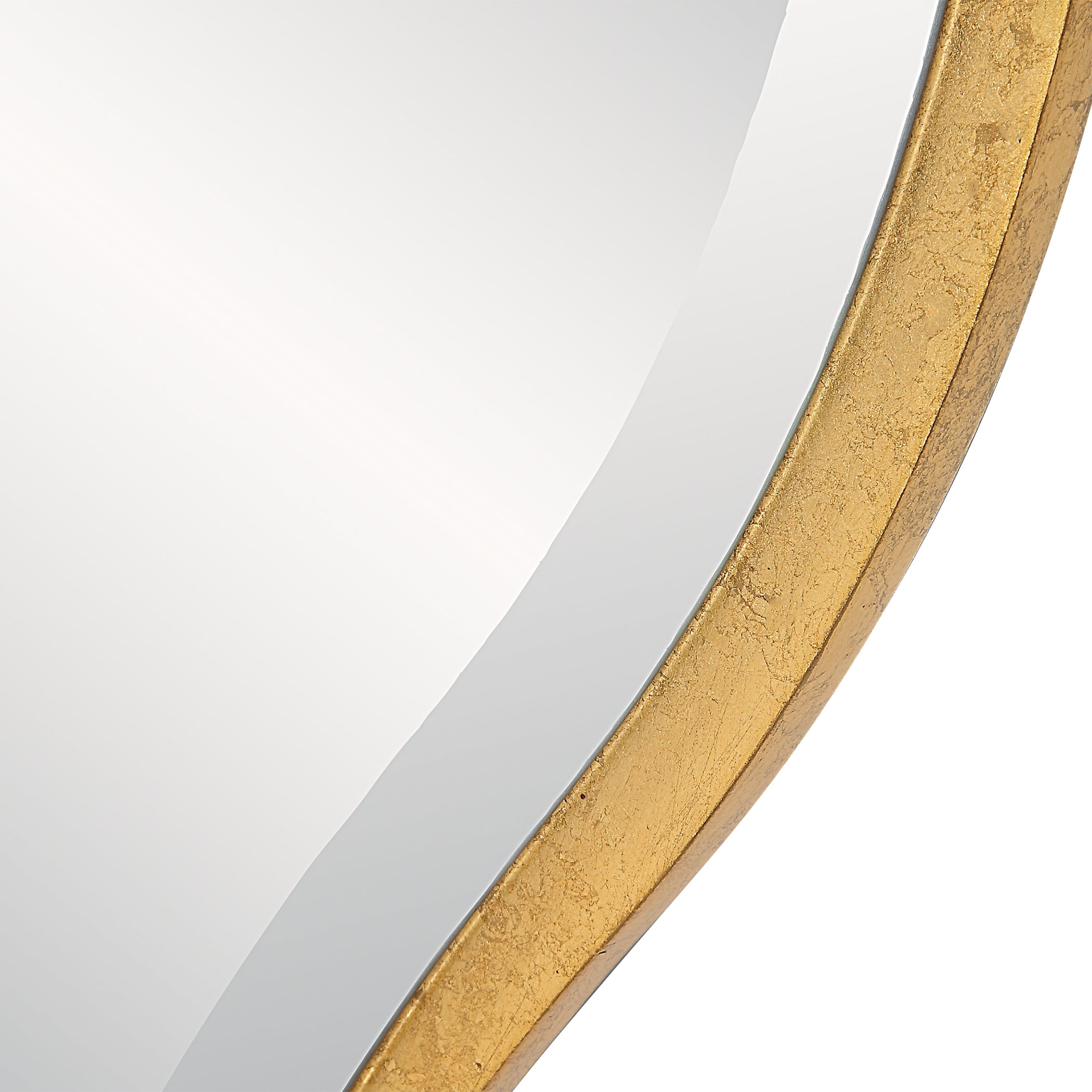 - Finish/Frame Description: Showcasing An Impressive Scale And A Feminine Scalloped Edge, This Shaped Wood Mirror Adds Whimsical Flair To Any Design. The Mirror Is Finished In Aged Gold And Has A 1" Bevel.