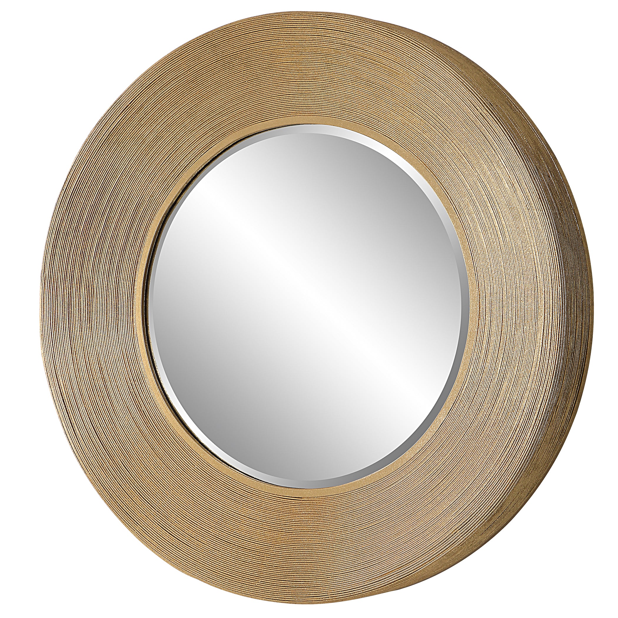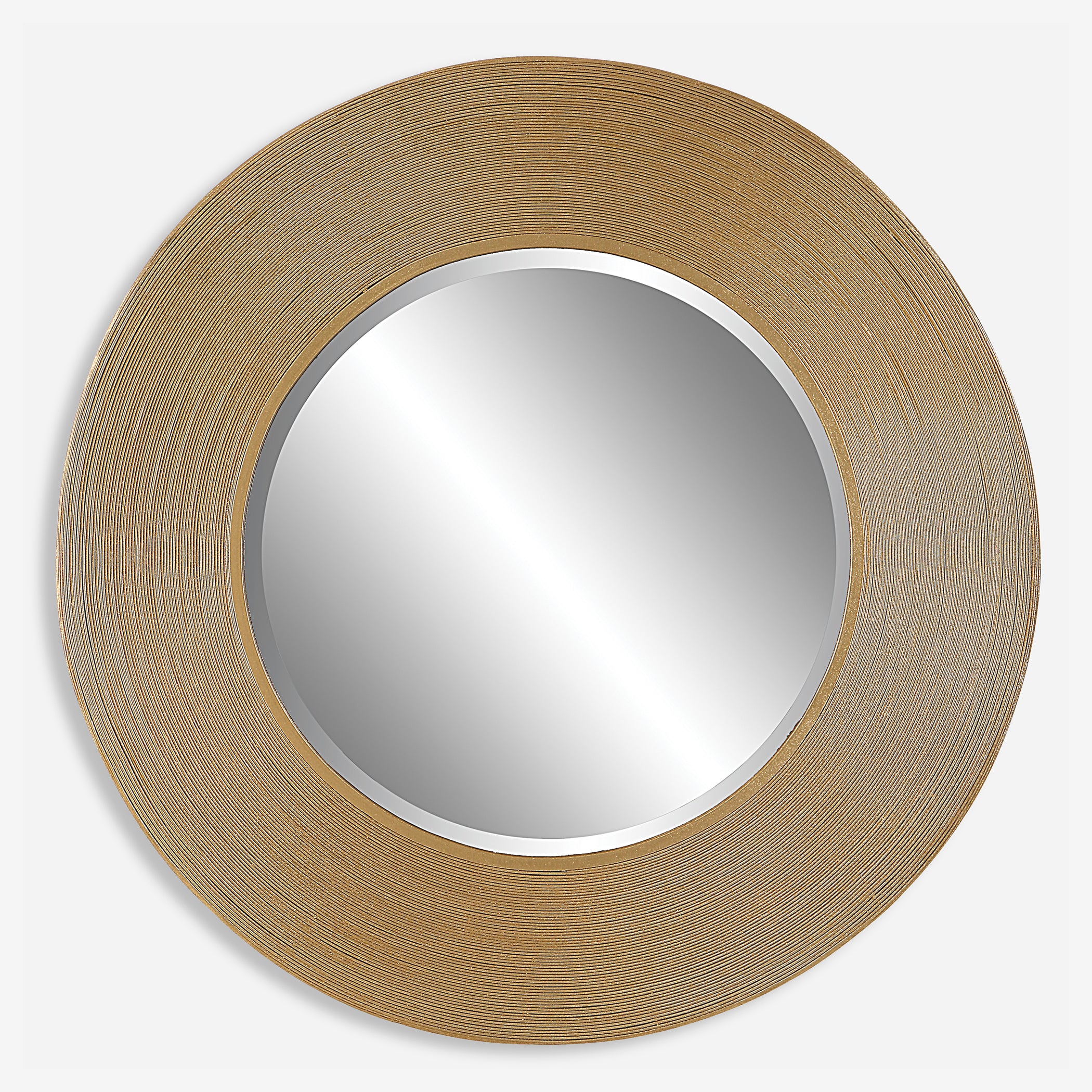 - Finish/Frame Description: This Round Mirror Features A Concaved Profile Constructed From Thick Iron Wire, Wrapped Continuously To Create A Sophisticated Design, Finished In A Metallic Gold Leaf. Mirror Features A 1 1/4" Bevel.