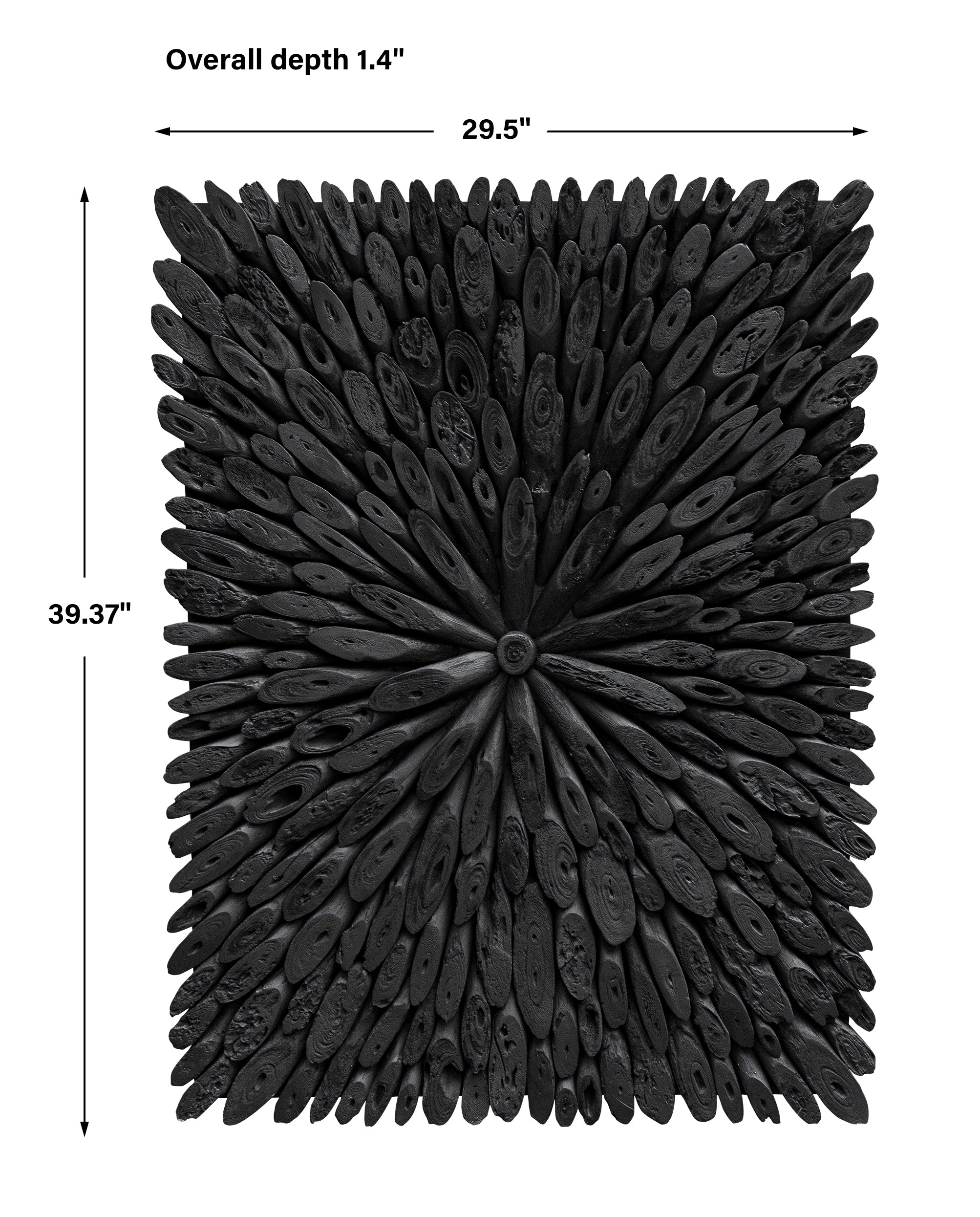- Finish/Frame Description: This Wood Wall Panel Is Handcrafted From Individually Cut Natural Driftwood Pieces In A Rustic Black Finish, Artfully Arranged In A Striking Sunburst Pattern. May Be Hung Horizontal Or Vertical.