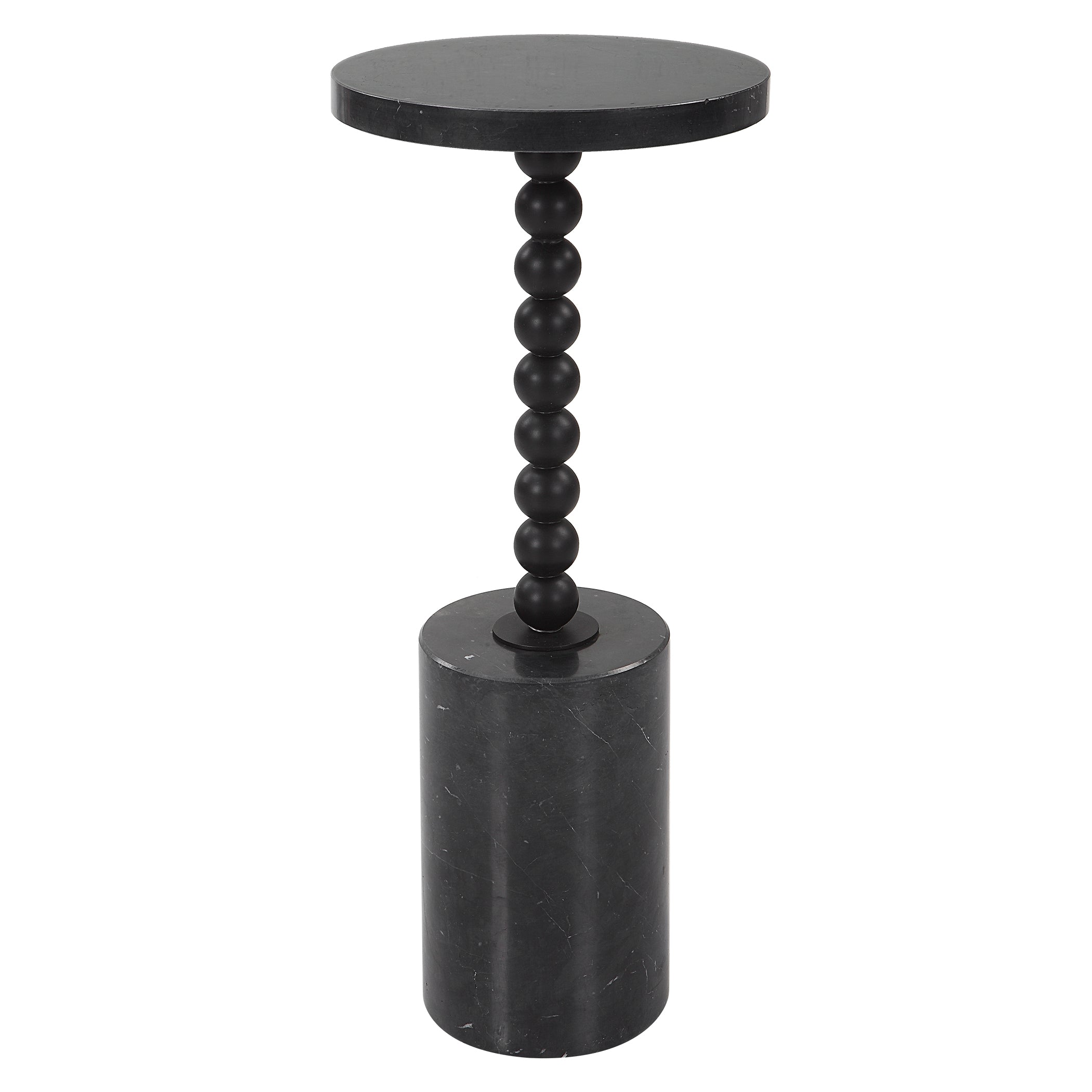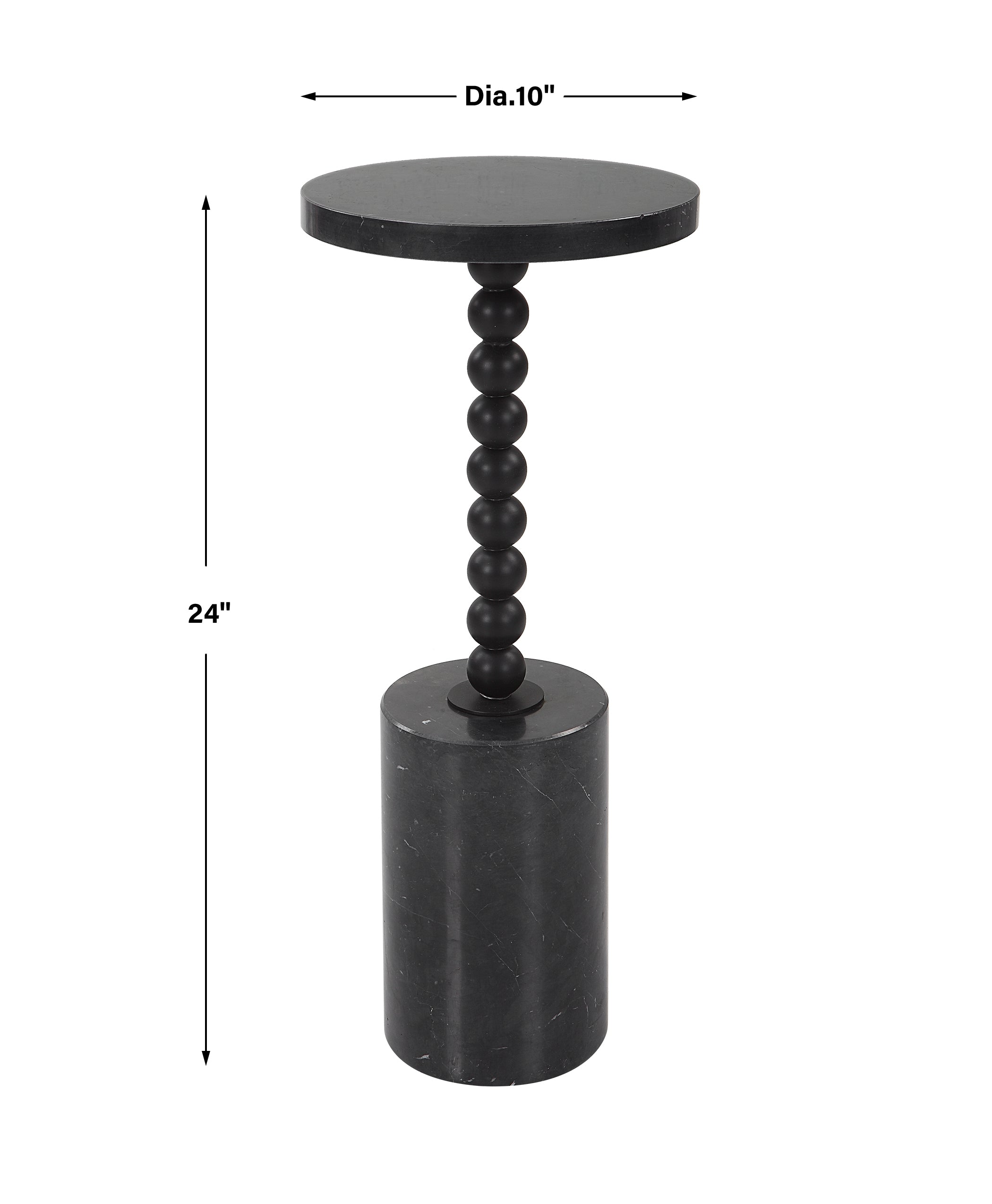 - Finish/Frame Description: The Little Black Table, Perfect For Every Occasion! Our Bead Drink Table Is Made From Solid Black Marble With Natural White Veining, Separated By Satin Black Iron Beaded Details. Because Of The Natural Characteristics Of Marble, Each Piece Will Have Unique Veining Patterns.