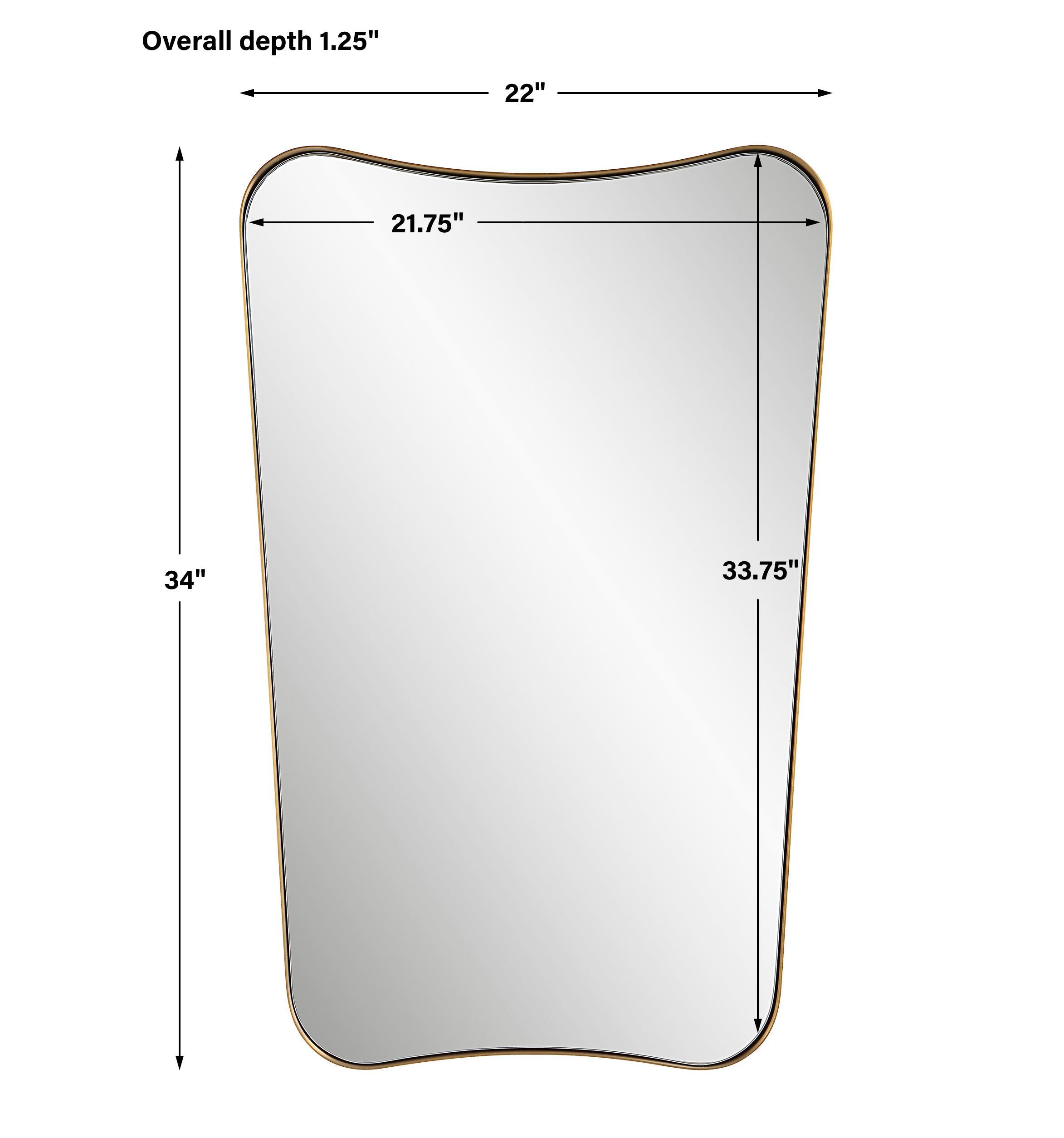 - Finish/Frame Description: This Vanity Mirror Features A Sophisticated Stainless Steel Frame Finished In A Rich Antique Brass. The Curved Silhouette Adds A Contemporary Feel To This Piece.