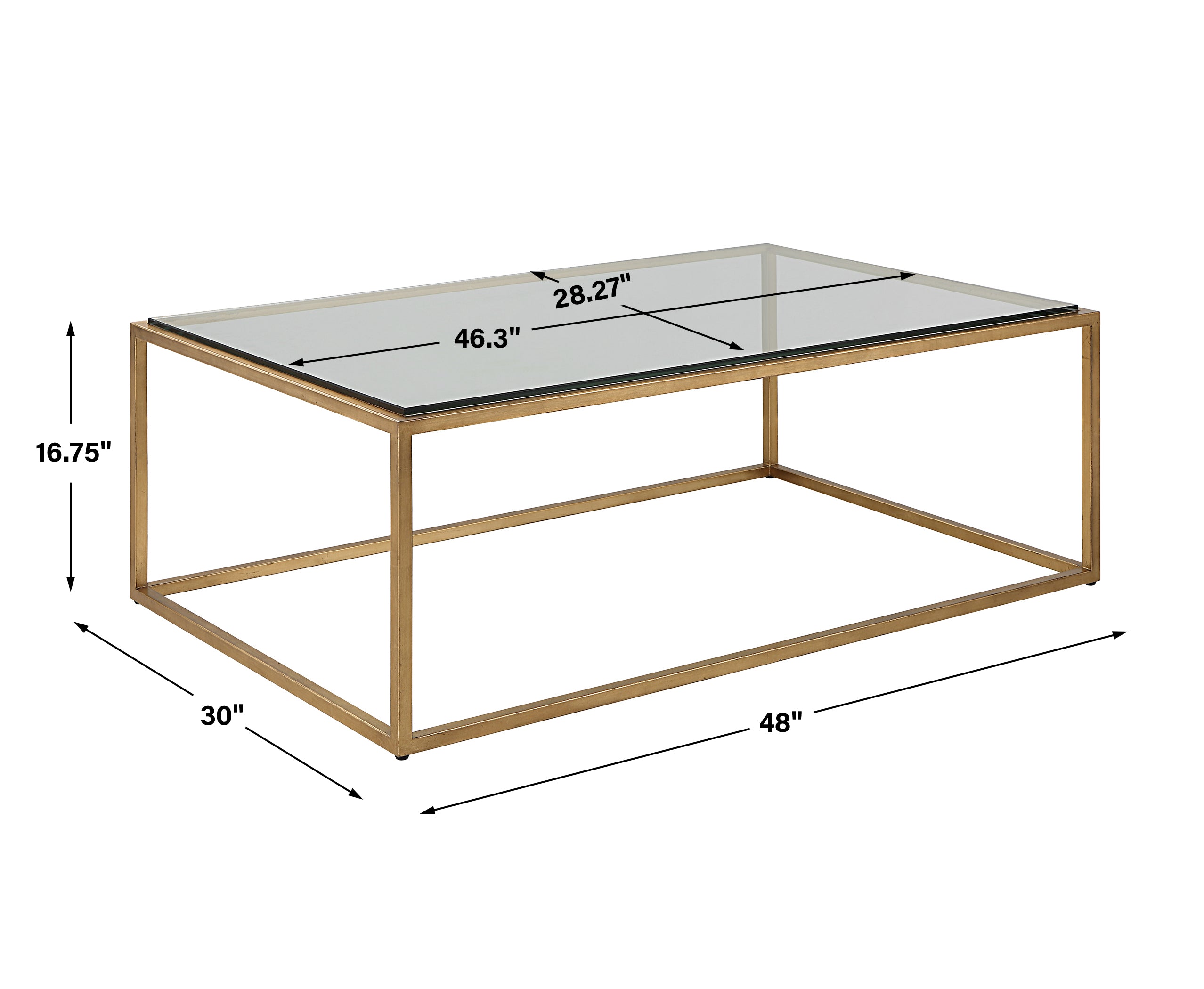 - Finish/Frame Description: A Complement To Virtually Any Style, This Coffee Table Features A Streamline Iron Frame Finished In Brushed Gold Leaf With An Inset Tempered Glass Top.