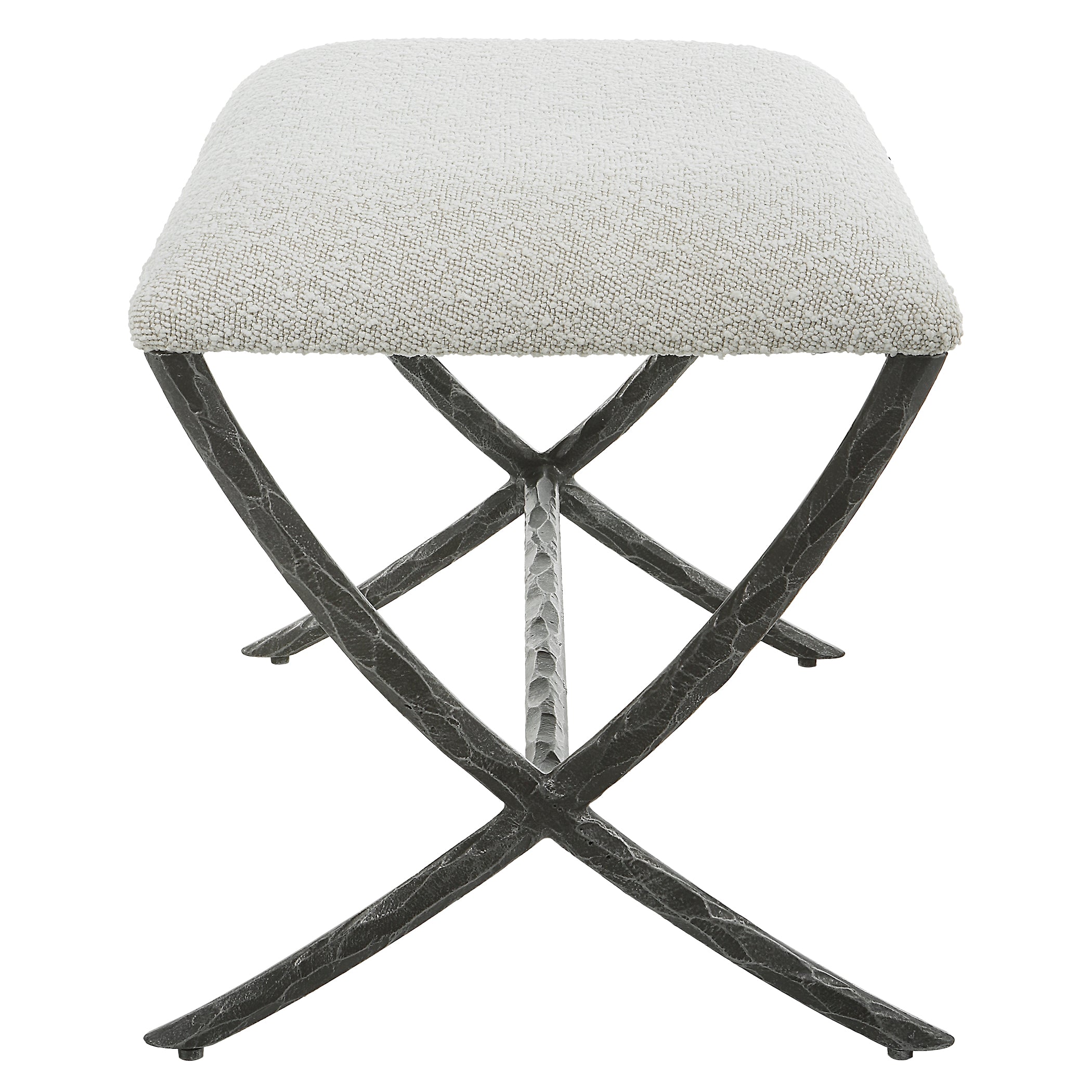 - Finish/Frame Description: With Clean Contemporary Lines, This Cast Iron Base Features A Chiseled Texturing With A Distressed Charcoal Finish. Topped With An Upholstered Seat In A Casual Ivory And Warm Gray Boucle Fabric.