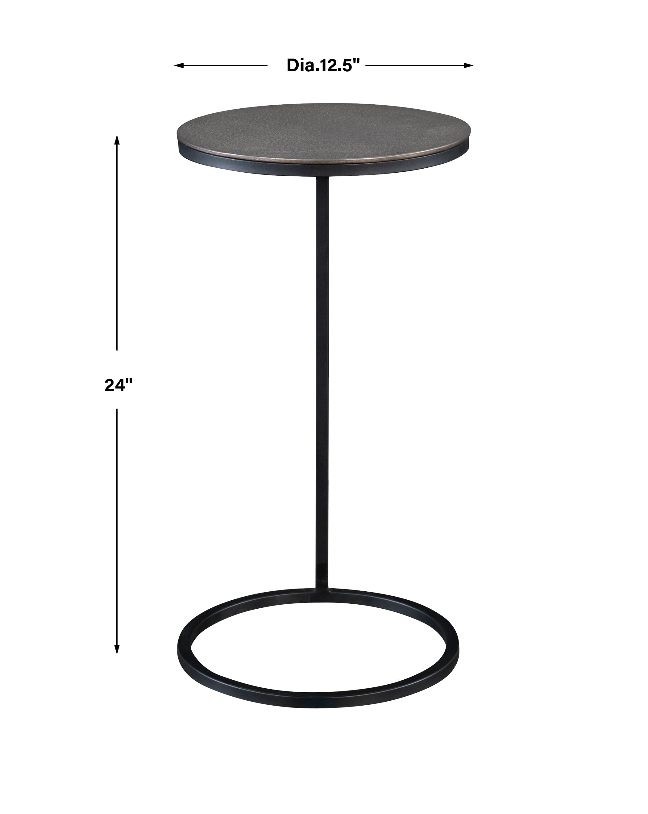 - Finish/Frame Description: Modern And Streamlined, This Round Accent Table Is Constructed In An Aged Black Iron Featuring A Cast Textured Aluminum Slab Top Finished In A Plated Antique Nickel.