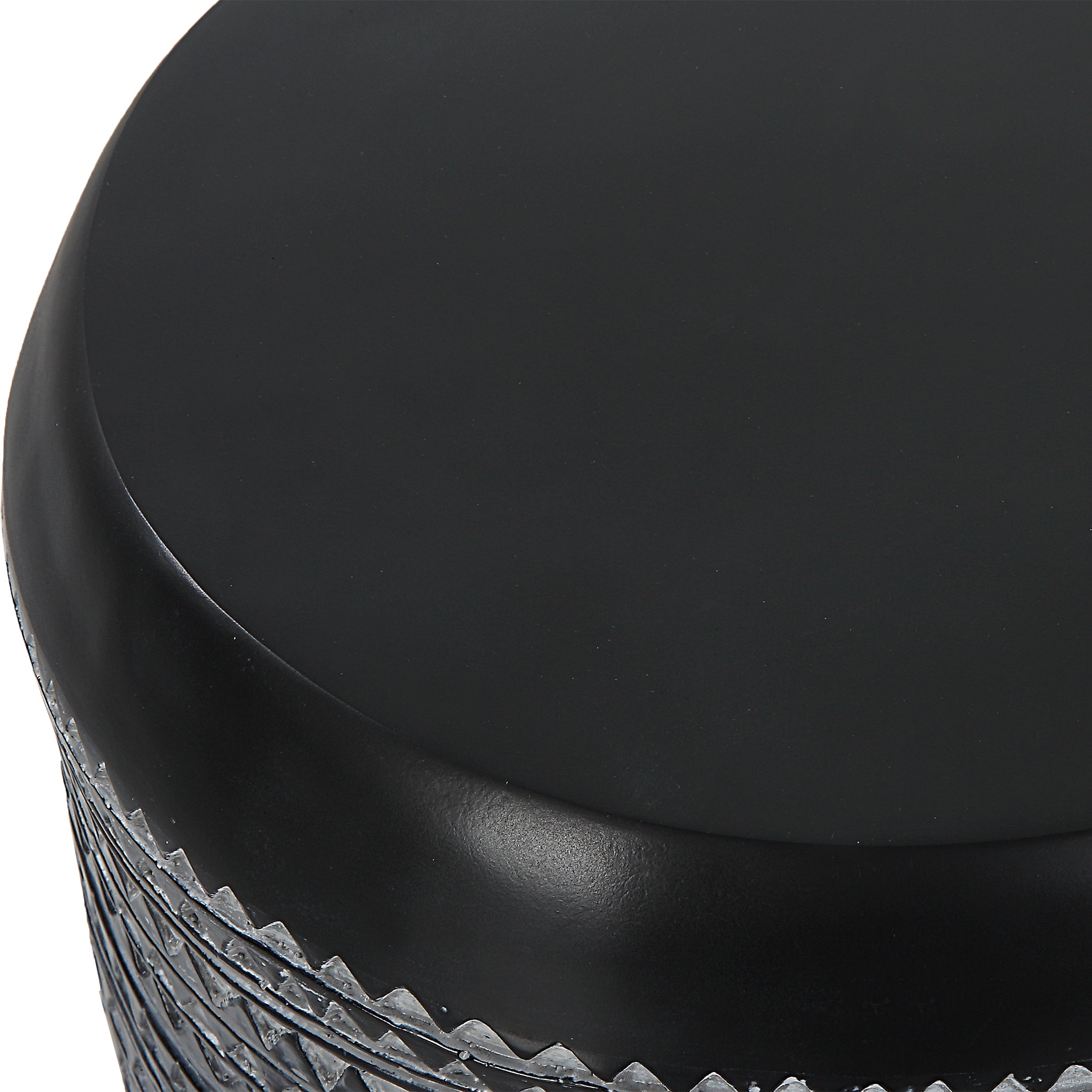 - Finish/Frame Description: Make A Fun Tribal Statement With The Cutting Edge Accent Table, Formed From Cast Resin In A Chalk Black And Gray Pairing With Recessed Textures.