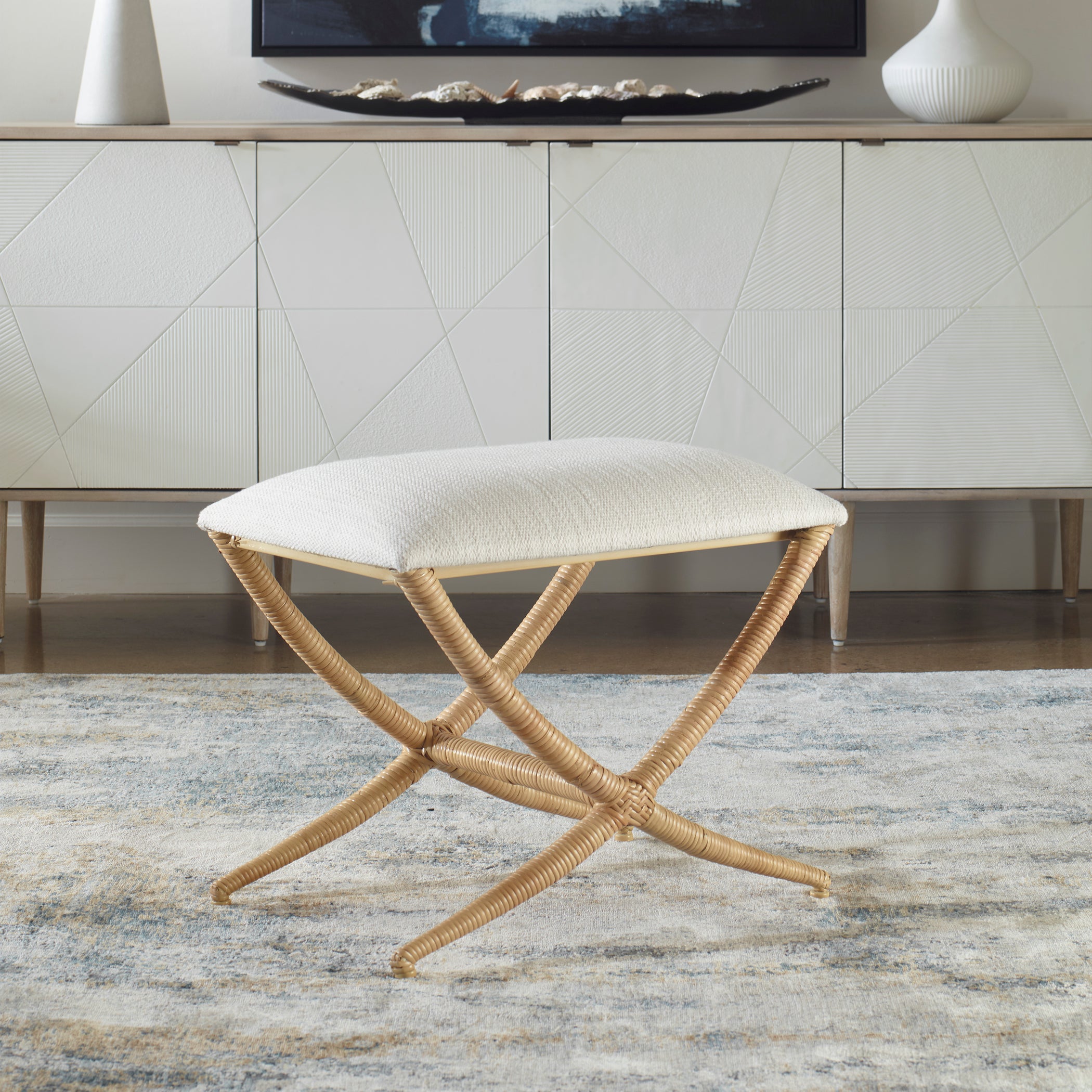 - Finish/Frame Description: The Perfect Casual Accent, The Expedition Small Bench Displays Coastal Influence With A Natural Rattan Wrapped Iron Base. The Cushioned Seat Is Upholstered In A Crisp White Textured Polyester Fabric.