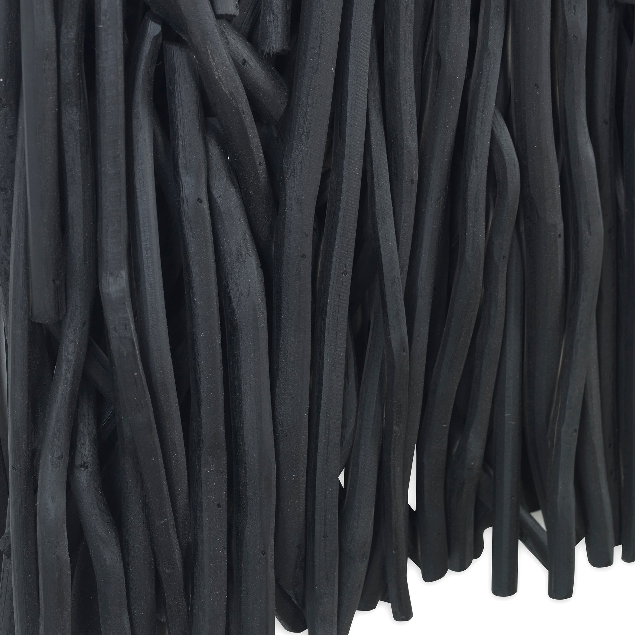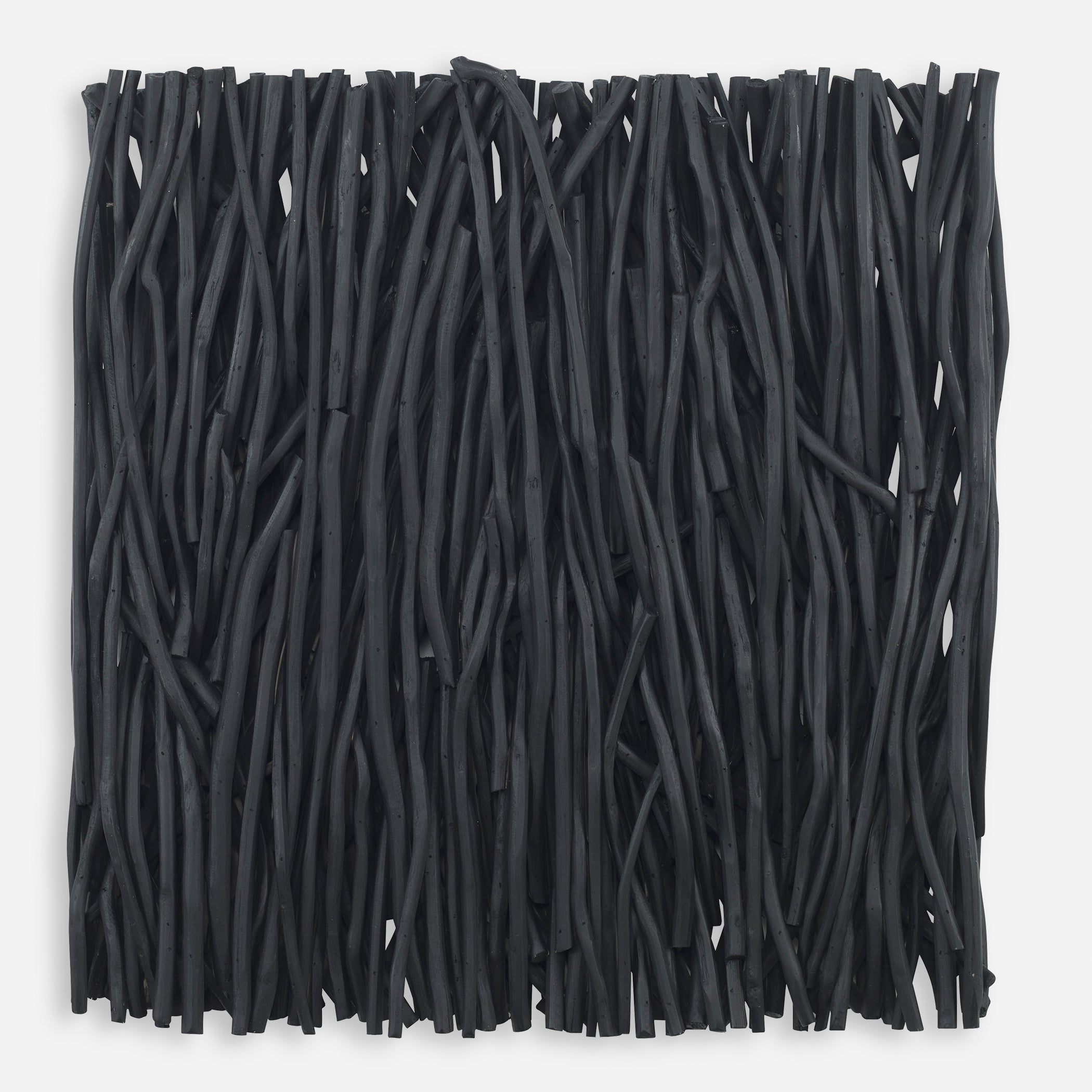 - Finish/Frame Description: This Square Wood Wall Panel Is Artfully Created From Teak Branches In A Contemporary Black Finish. May Be Hung Horizontal Or Vertical.