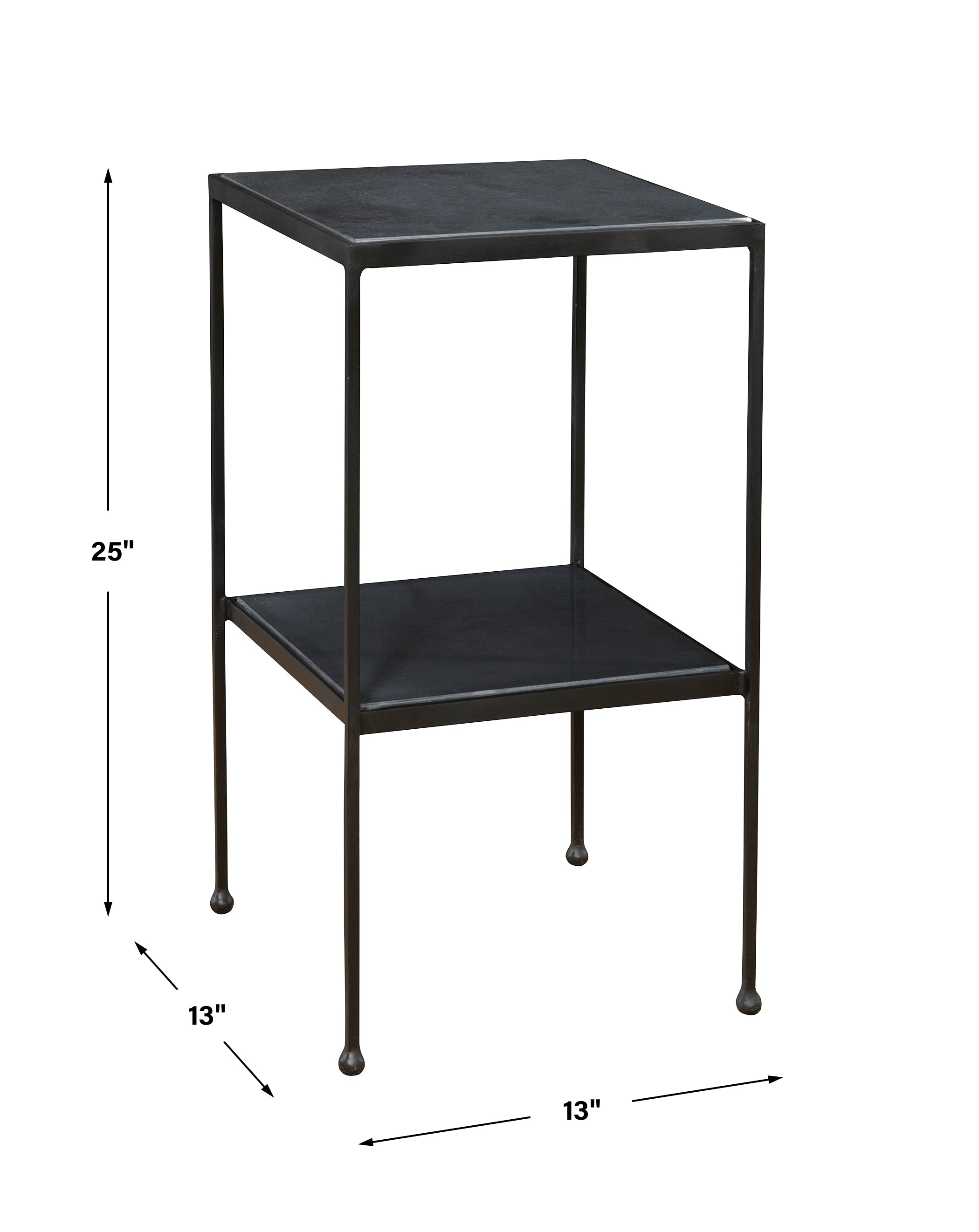 - Finish/Frame Description: Constructed From Solid Iron, This Accent Table Is Finished In A Smooth Matte Black With Double Black Honed Marble Shelves.