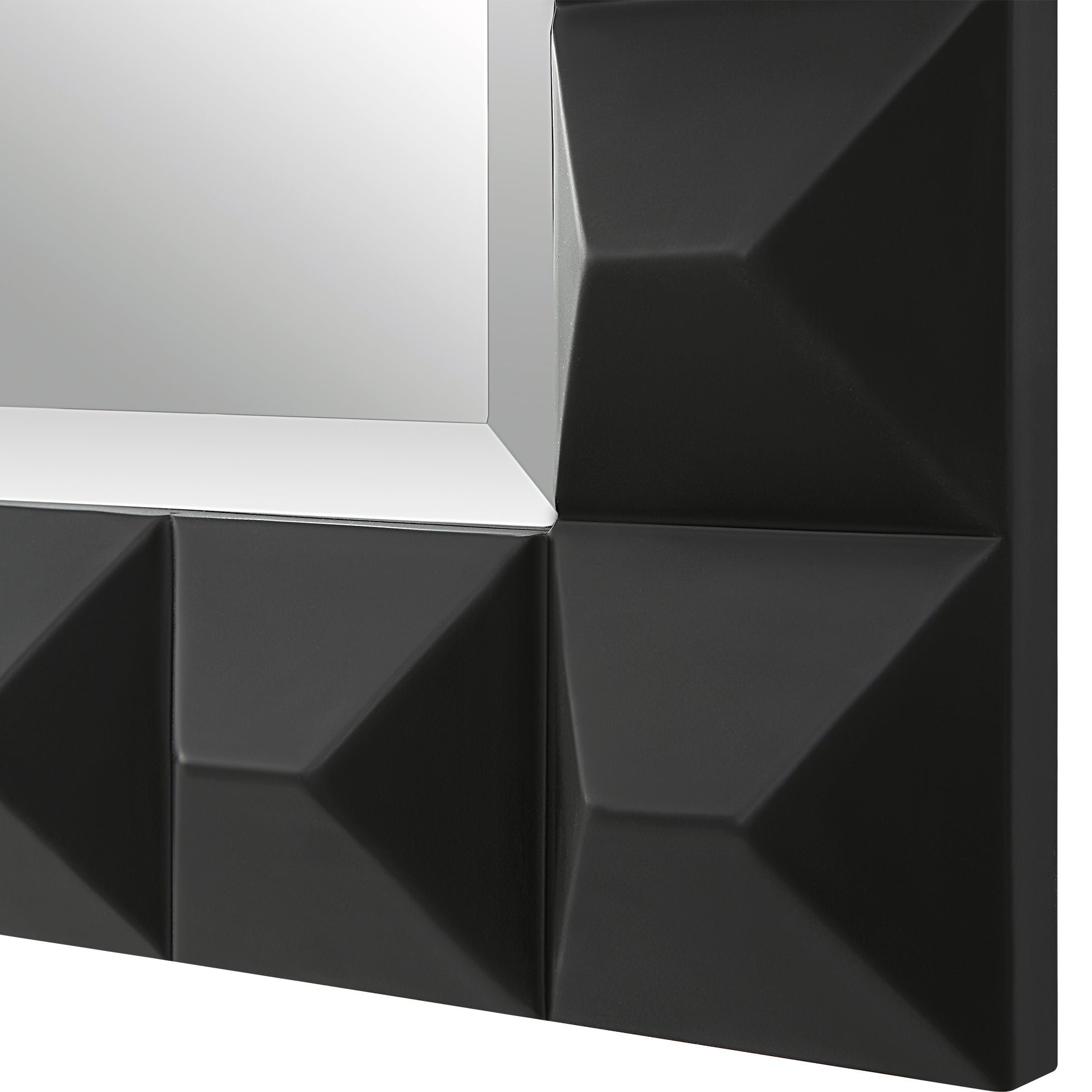 - Finish/Frame Description: The Studded Mirror Has An Updated Appeal To A Timeless Design Featuring A 3-dimentional Pattern Finished In A Sleek Matte Black. Mirror Has A Generous 1 1/4" Bevel. May Be Hung Horizontal Or Vertical.