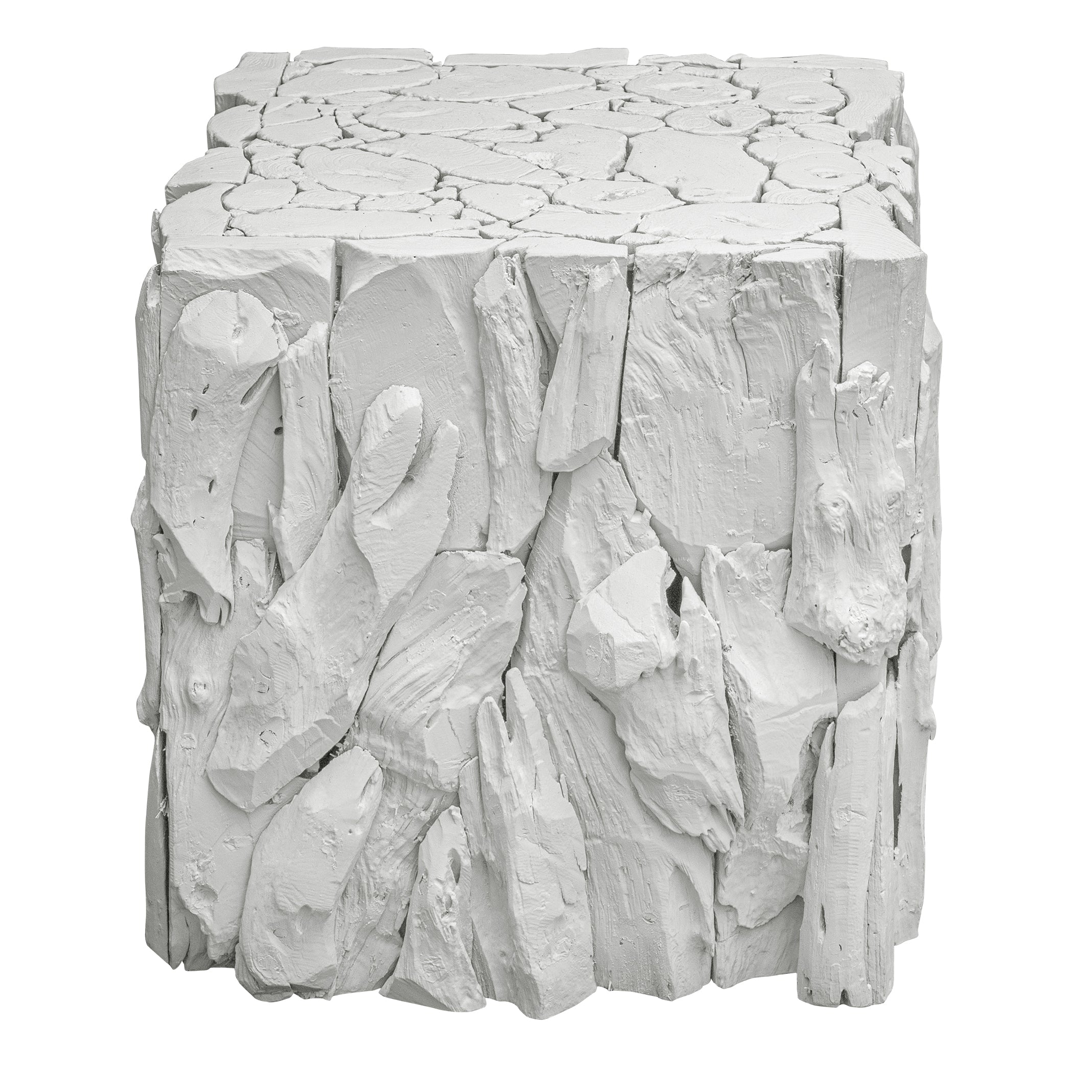 - Finish/Frame Description: Whitewashed Teak Wood Skillfully Pieced Together Into An Artistic And Precise Sculpture With A Smoothly Sanded Top And Open Bottom, Multiplying Its Use As A Table, Seat, Or Box Planter.