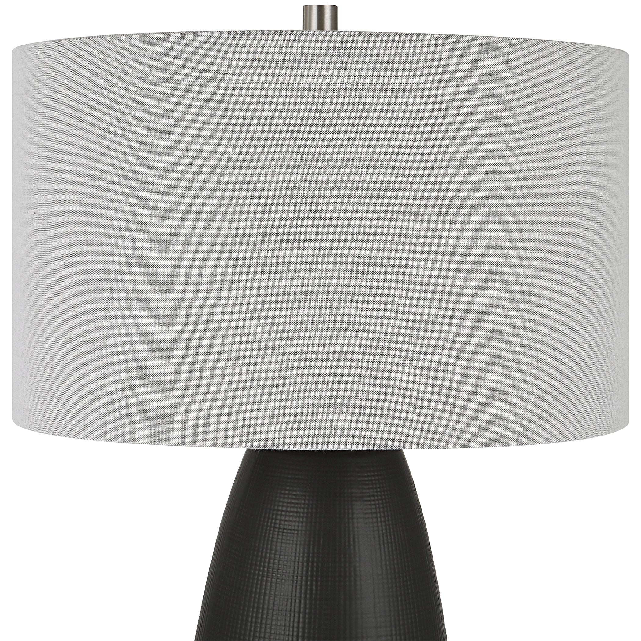 - Finish/Frame Description: The Twilight Table Lamp Features A Ceramic Base With A Subtle Carved Gridline Texture, Finished In A Satin Black Glaze And Accented By Brushed Nickel Plated Details.