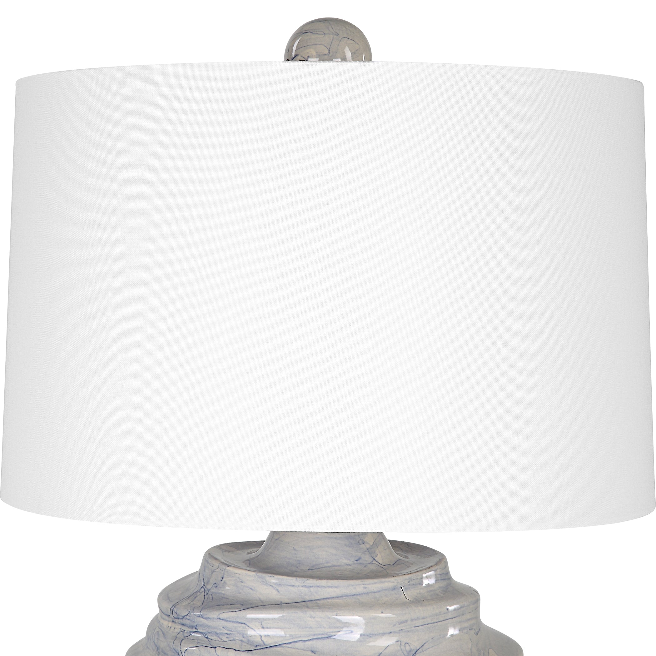 - Finish/Frame Description: A Contemporary Take On Classic Blue And White Ceramics, This Ceramic Lamp Features A Unique Sculpted Design With A Hand Applied Light Cobalt Blue Drip Glaze And A Oversized Matching Ceramic Finial.