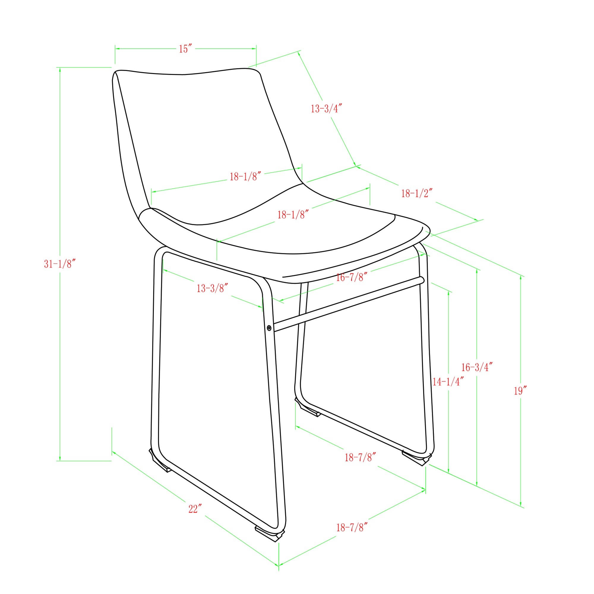 - Powder-coated steel metal legs