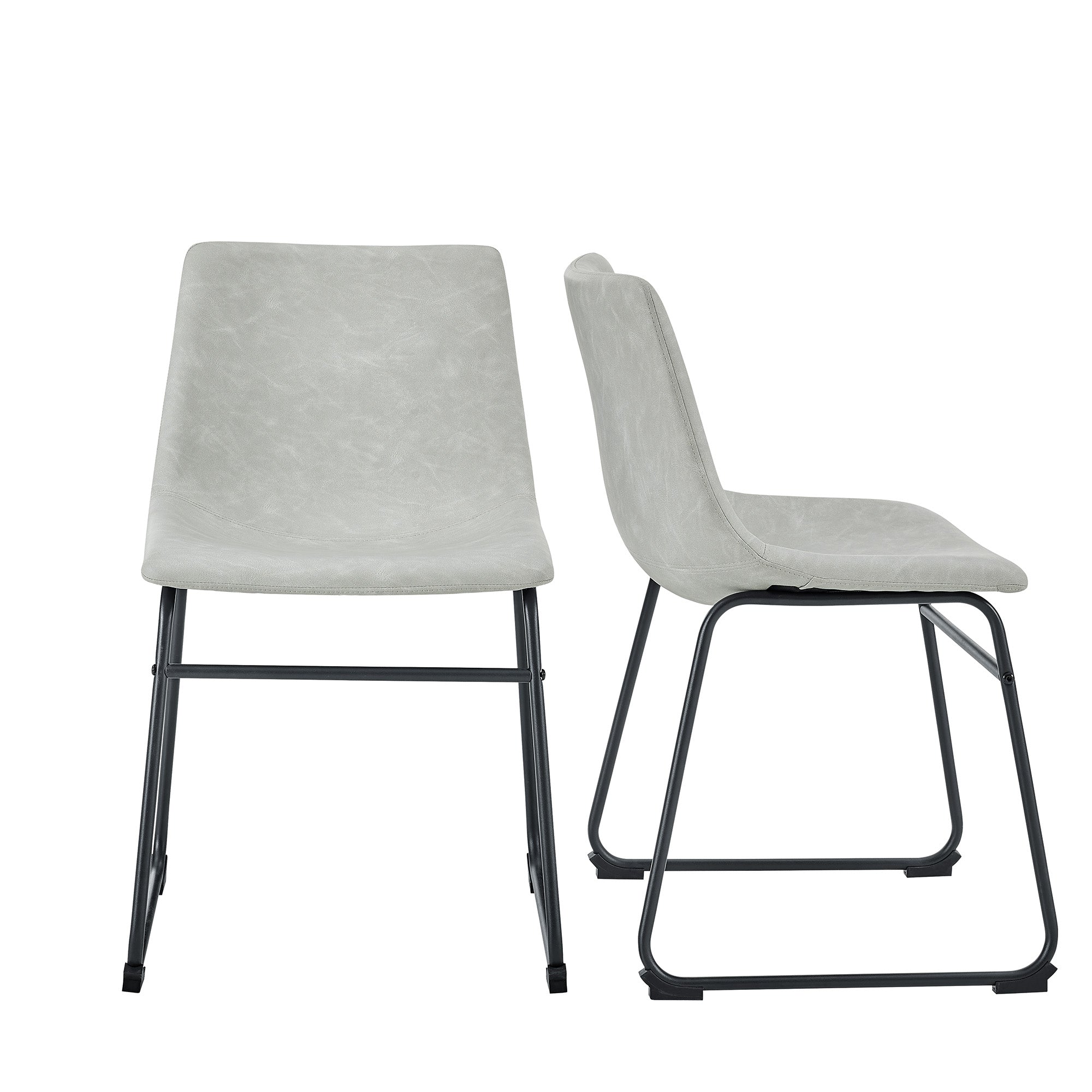 Bring the sophisticated look of leather seating to your kitchen with these faux leather dining chairs. They'll be the perfect addition to your eating space and are great for everyday use. The synthetic leather is soft to the touch, the curved seating provides comfort and the seat is supported by powder-coated steel legs for a durable, long lasting design. These chairs look best in an urban industrial styled space, but also can coordinate well with many other popular interior styles and can be used in home offices and living rooms as an accent chair.