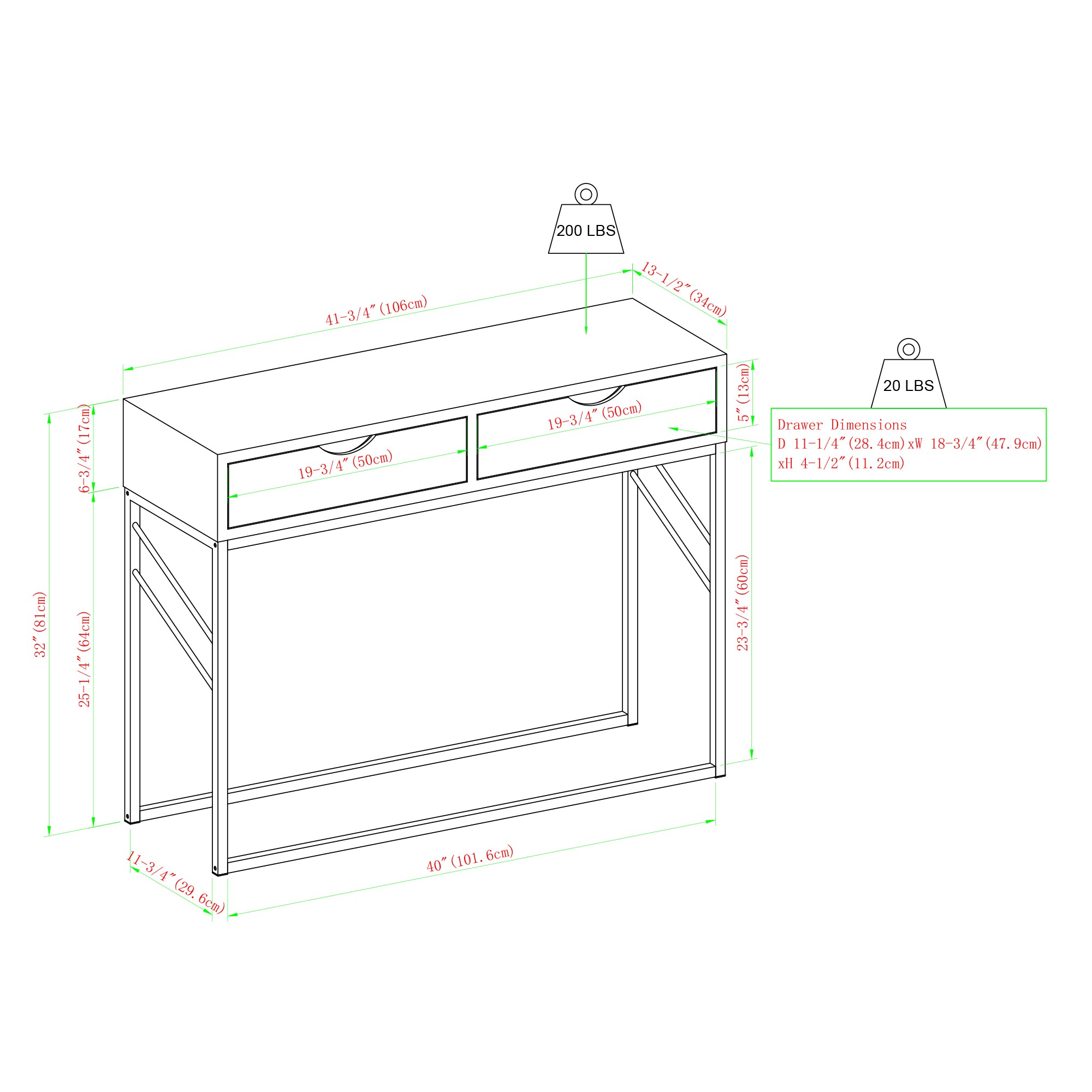 - Dimensions: AFVET2DRETOW 2-Drawer Faux Shagreen Entry Table - 32" H x 41.75" L x 13.5" W
