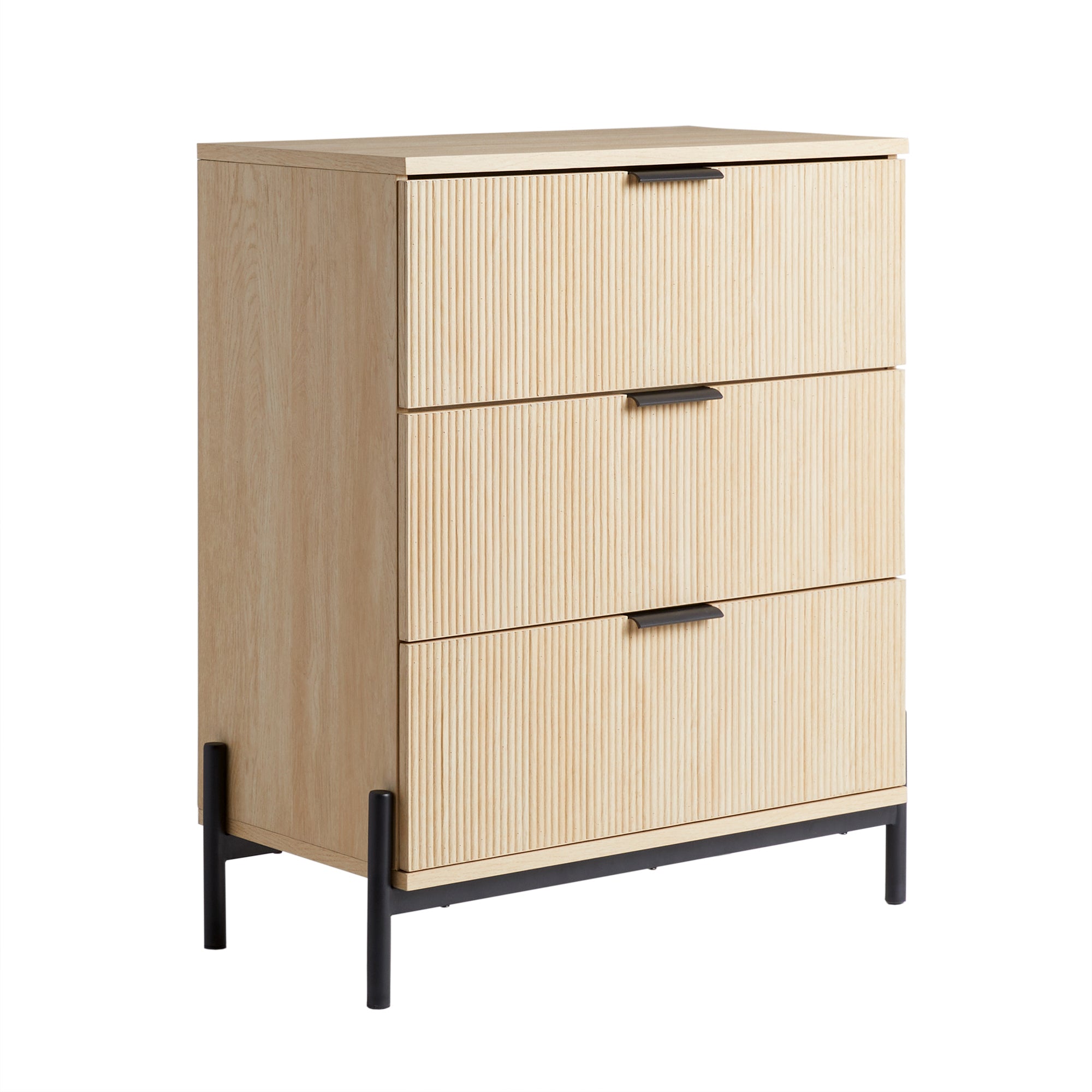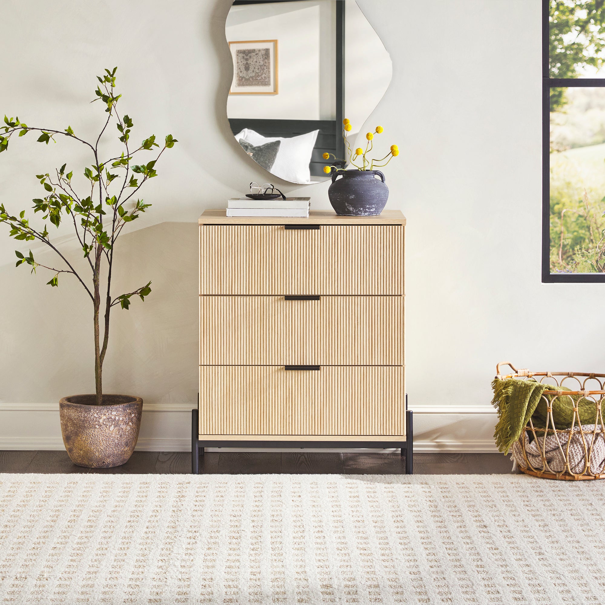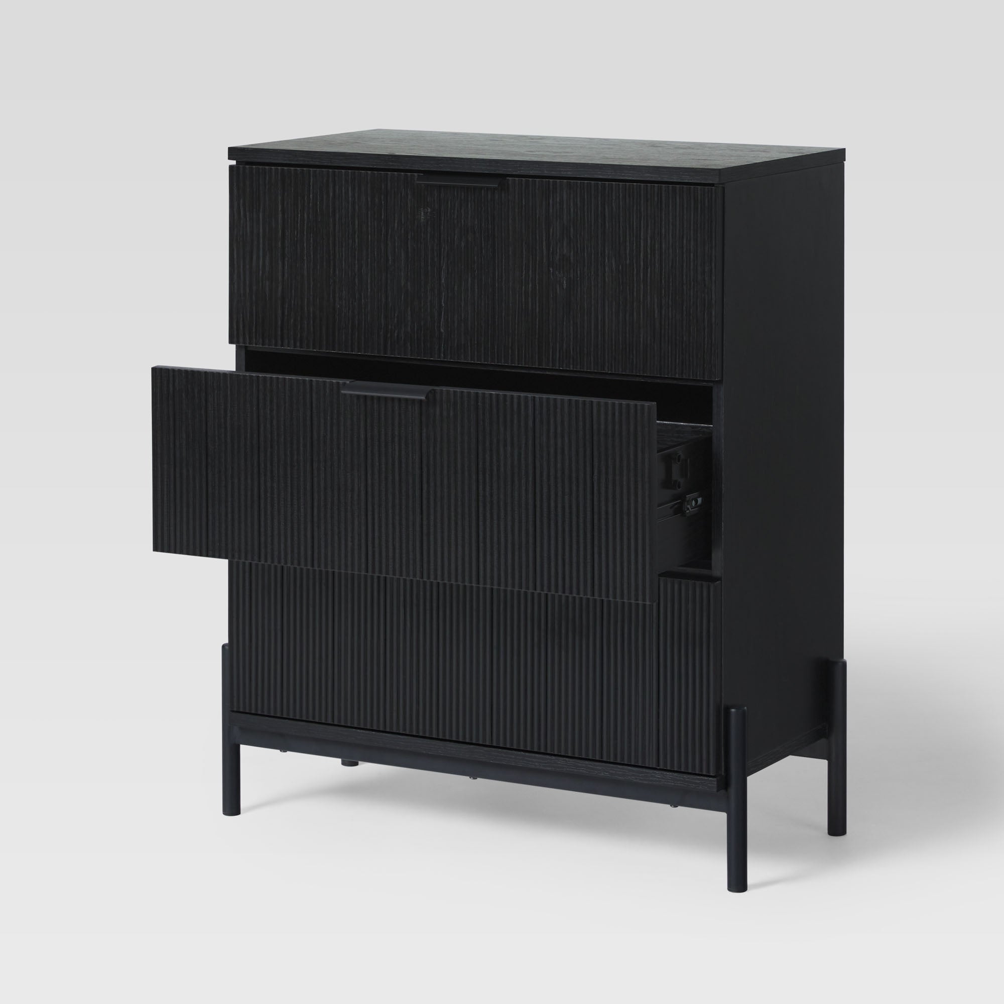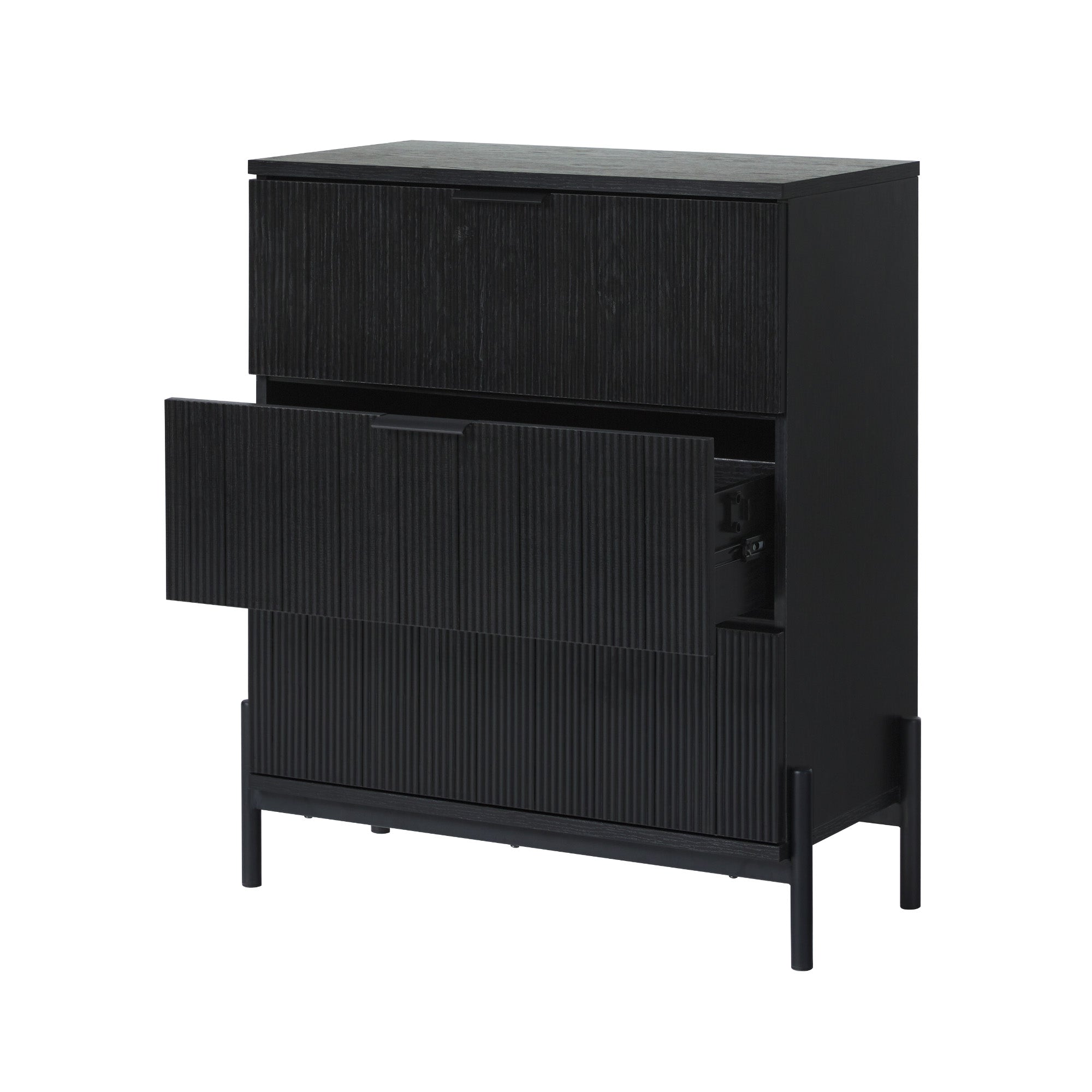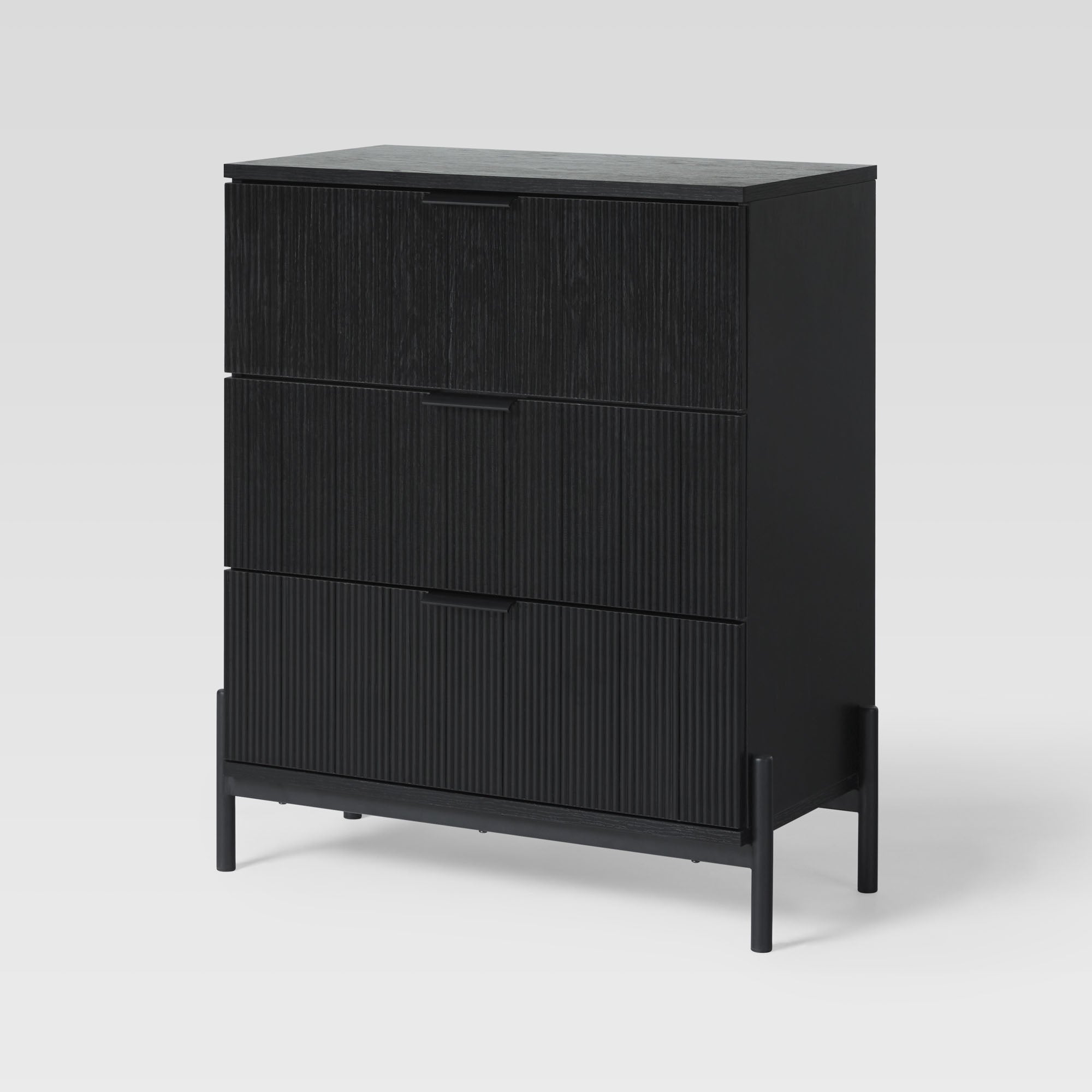 - Color: PRSB3BBL2 3 Drawer Chest with Reeded Drawer Fronts - Black