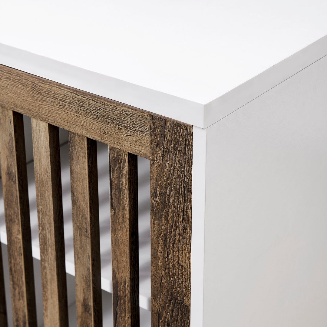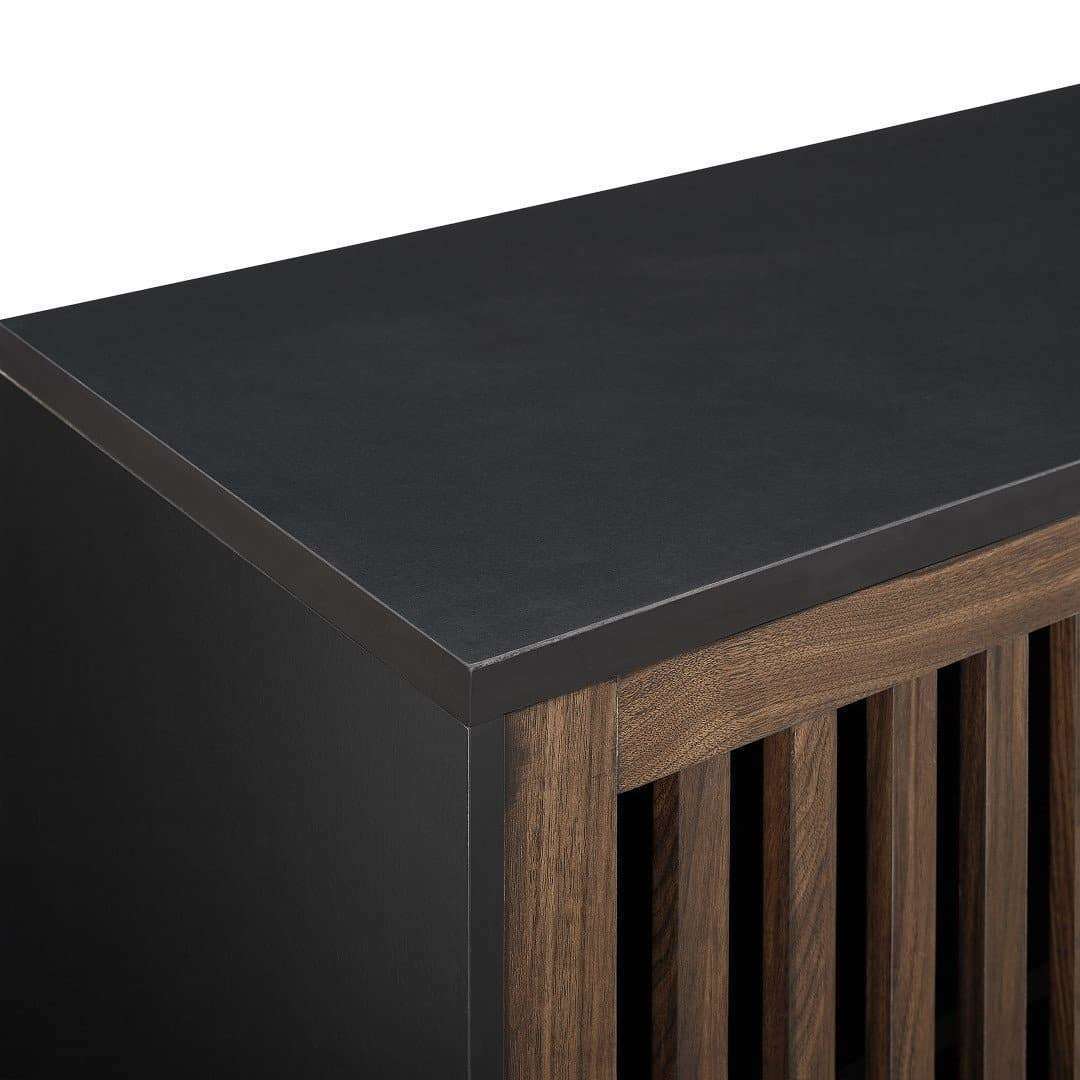 Elevate the look of your living room with our storage console as it’ll give your home a flattering modern mix of mid centuryand farmhouse style. With sliding slat doors of one featuring vertical slats and the other horizontal, the doors create an intriguing artistic element when overlapped. Inside you’ll find an adjustable shelf to fit your household items more easily, from your electronics to your room décor. Designed to take on different functions, you can use this as an accent or storage console, TV stand in your living room with a cord management feature in back, or a bar cabinet in your kitchen.