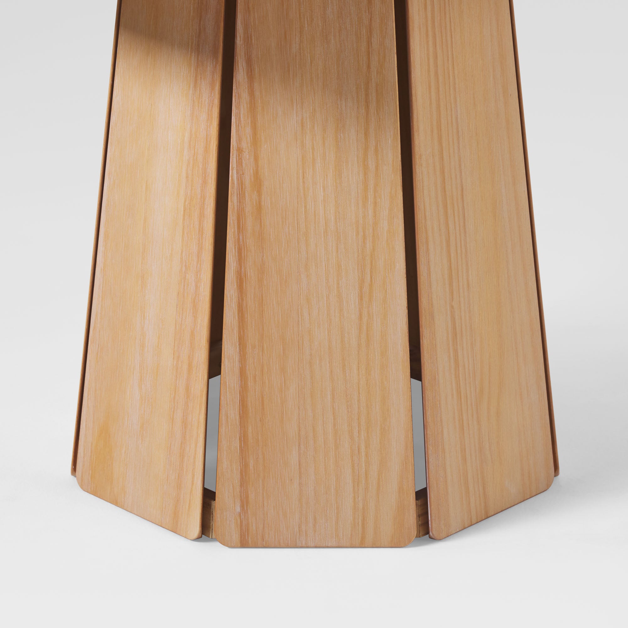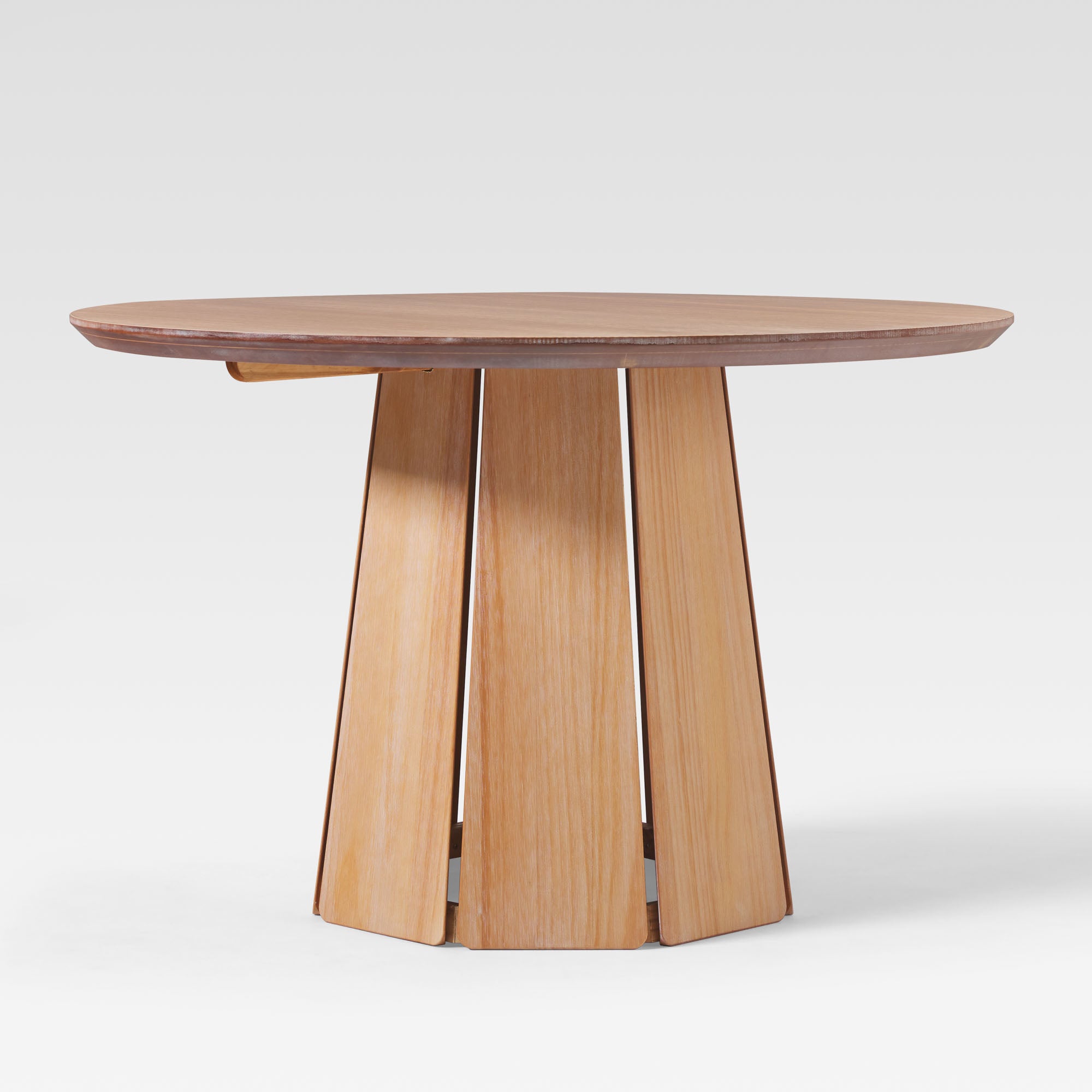 - Round dining table, Slat style base, felt adhesive pads for floor protection