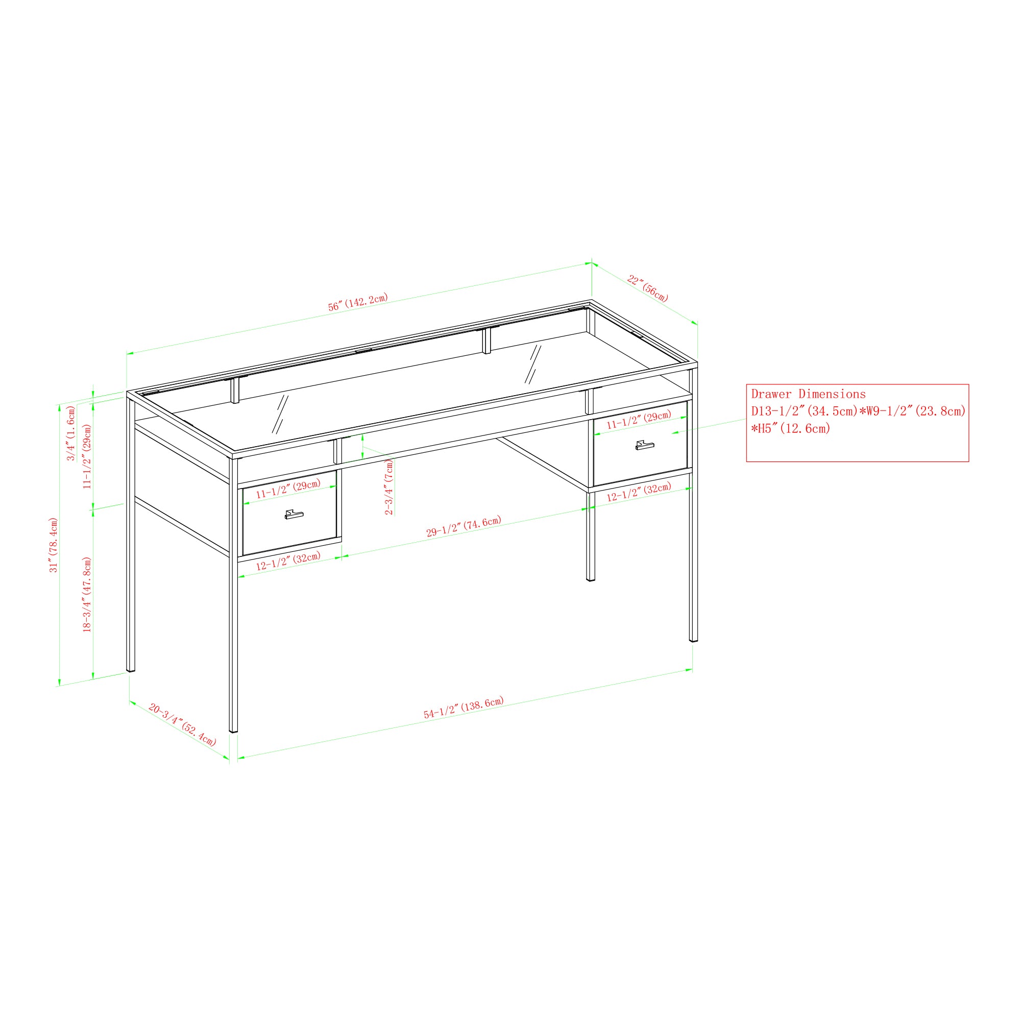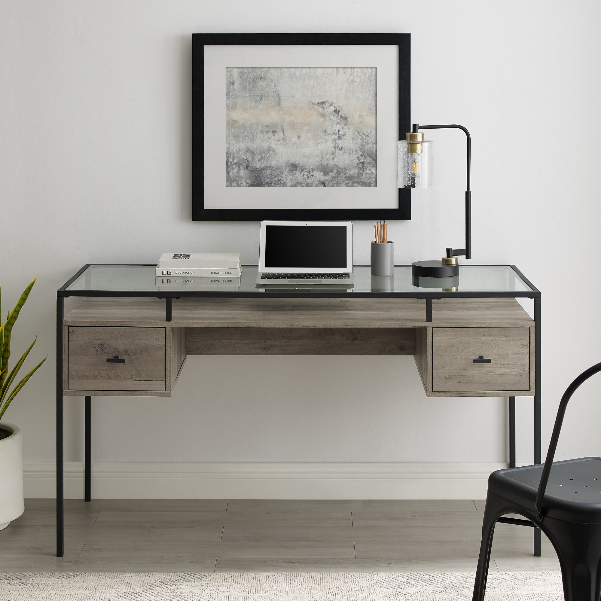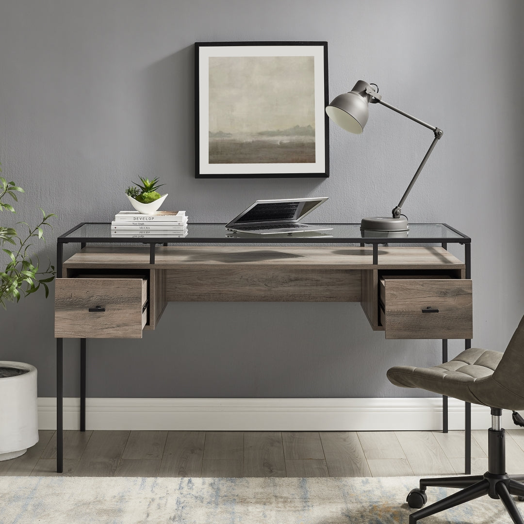 Looking for a little magic to push your small business to the next level? Find secret powers with this contemporary writing desk. The mixed materials provide an enchanting aesthetic that will motivate you to get work done faster than ever before. Two drawers create needed space for important documents and sophisticated office supplies. Every client who walks in the office will see the illusion of perfect professionalism.