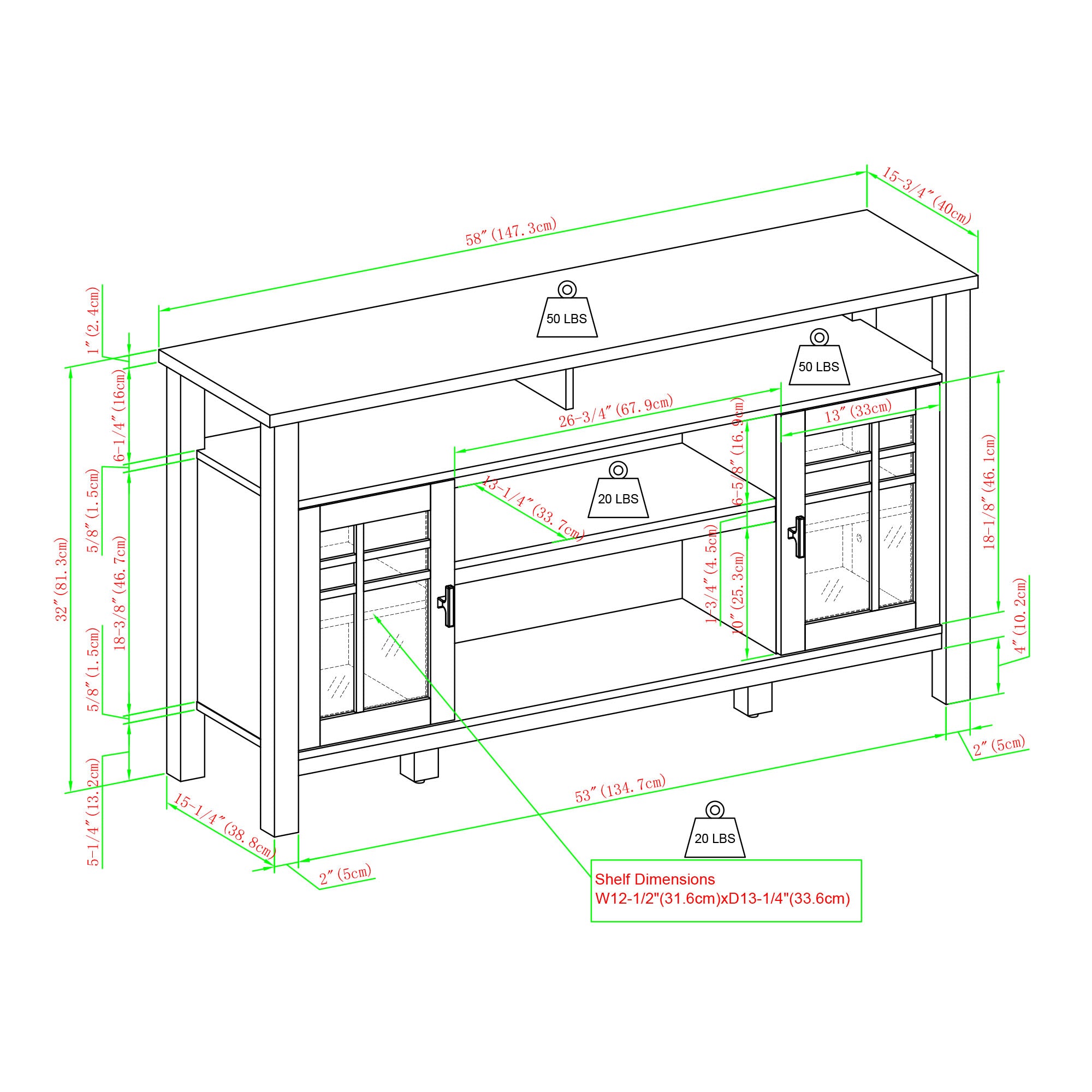 - Assembled dimensions 32†H x 58†L x 15 ¾â€ W