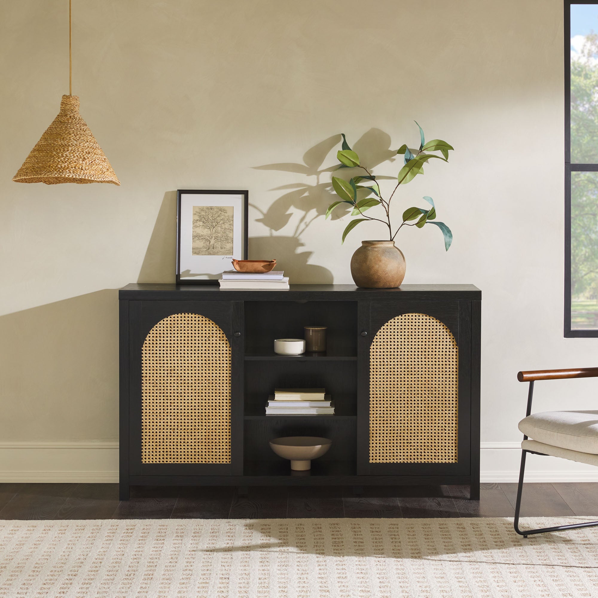 - Dimensions: SAHD5DEO 58" 4-Door Sideboard w/ Arched Rattan Panels - 34" H x 58" L x 15.75" W