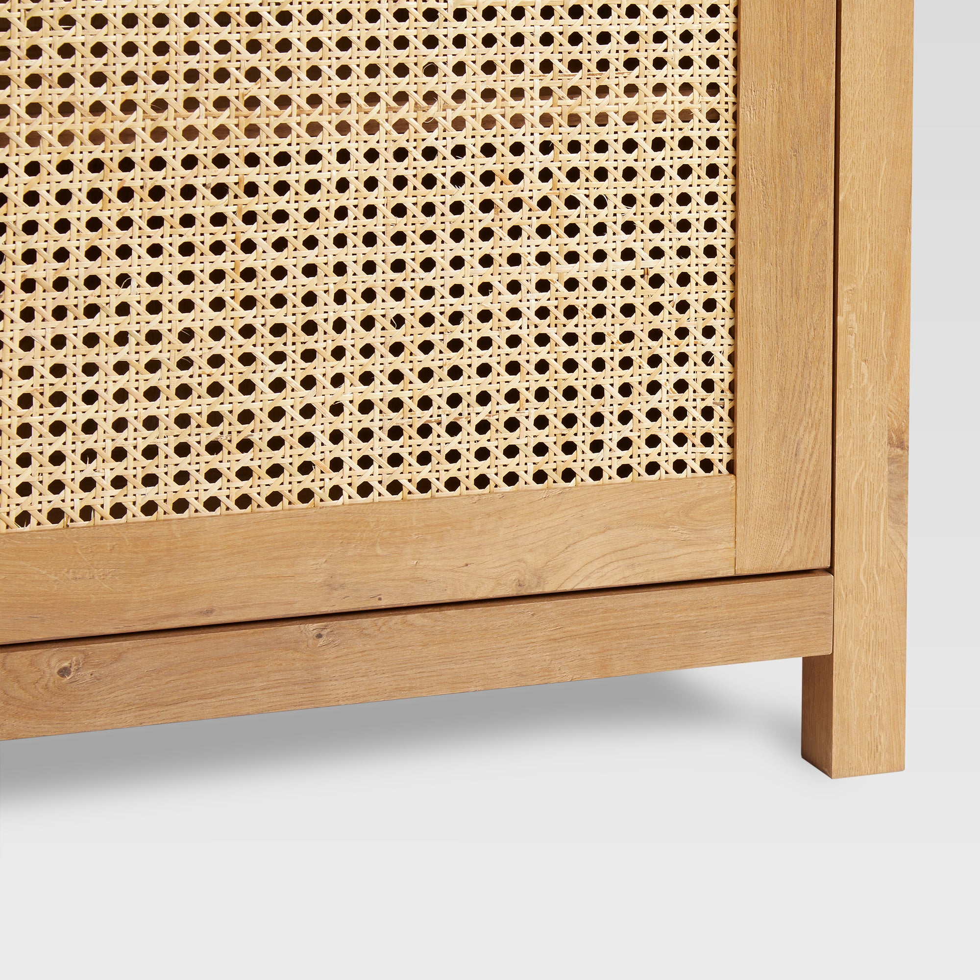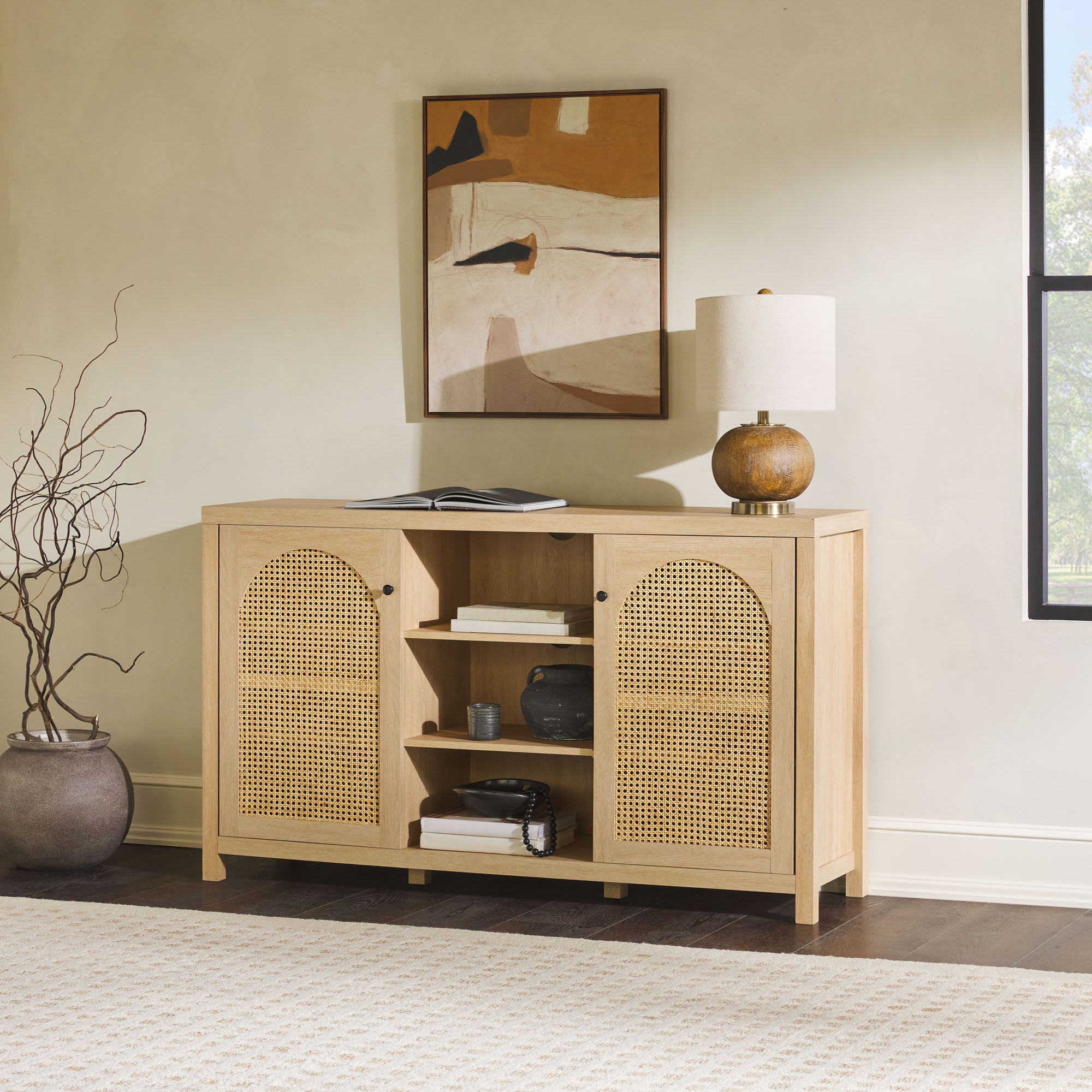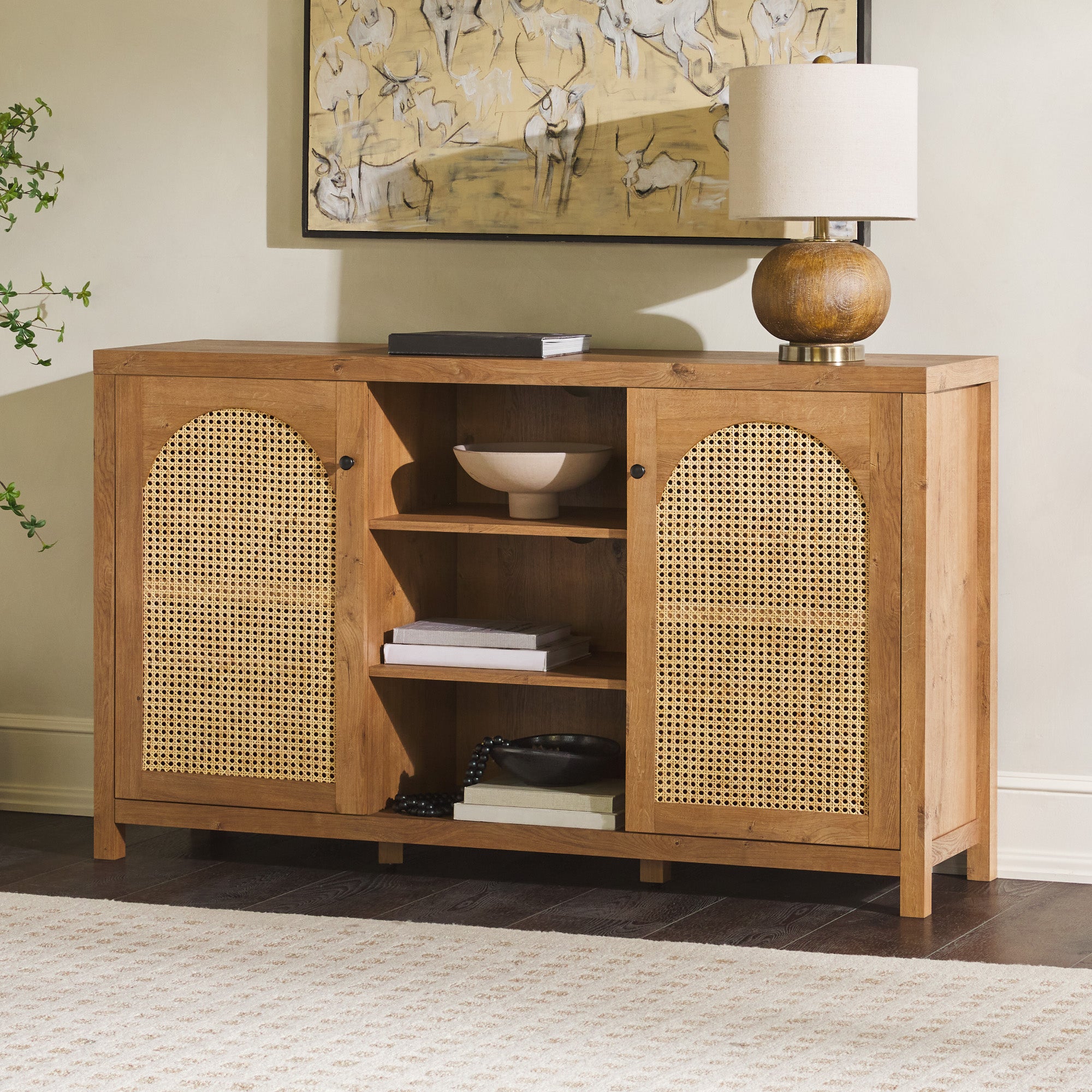 - Color: SAHD5DEO 58" 4-Door Sideboard w/ Arched Rattan Panels - English Oak