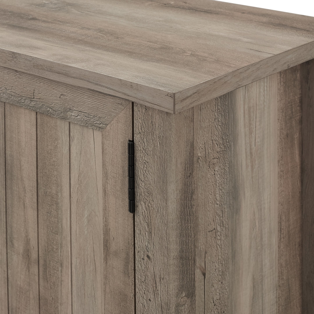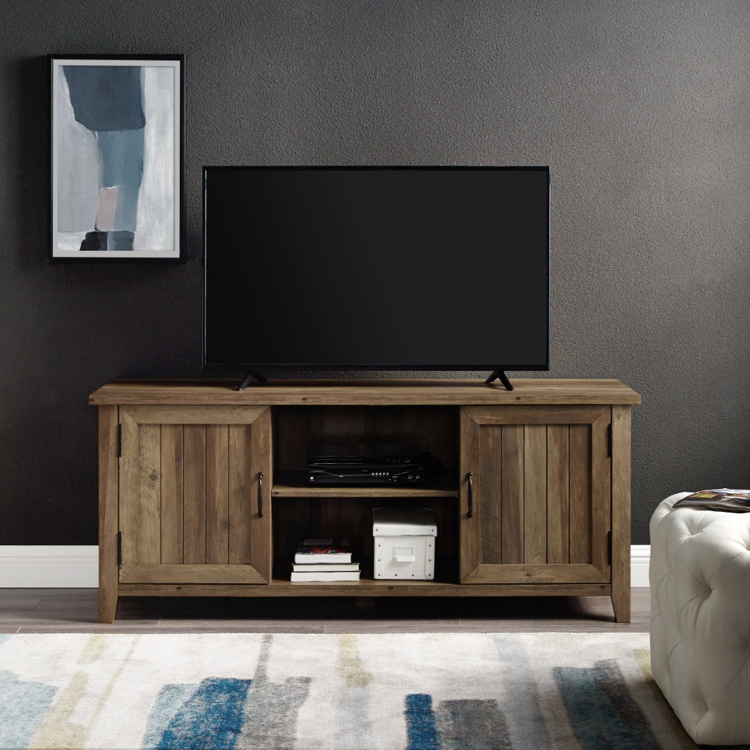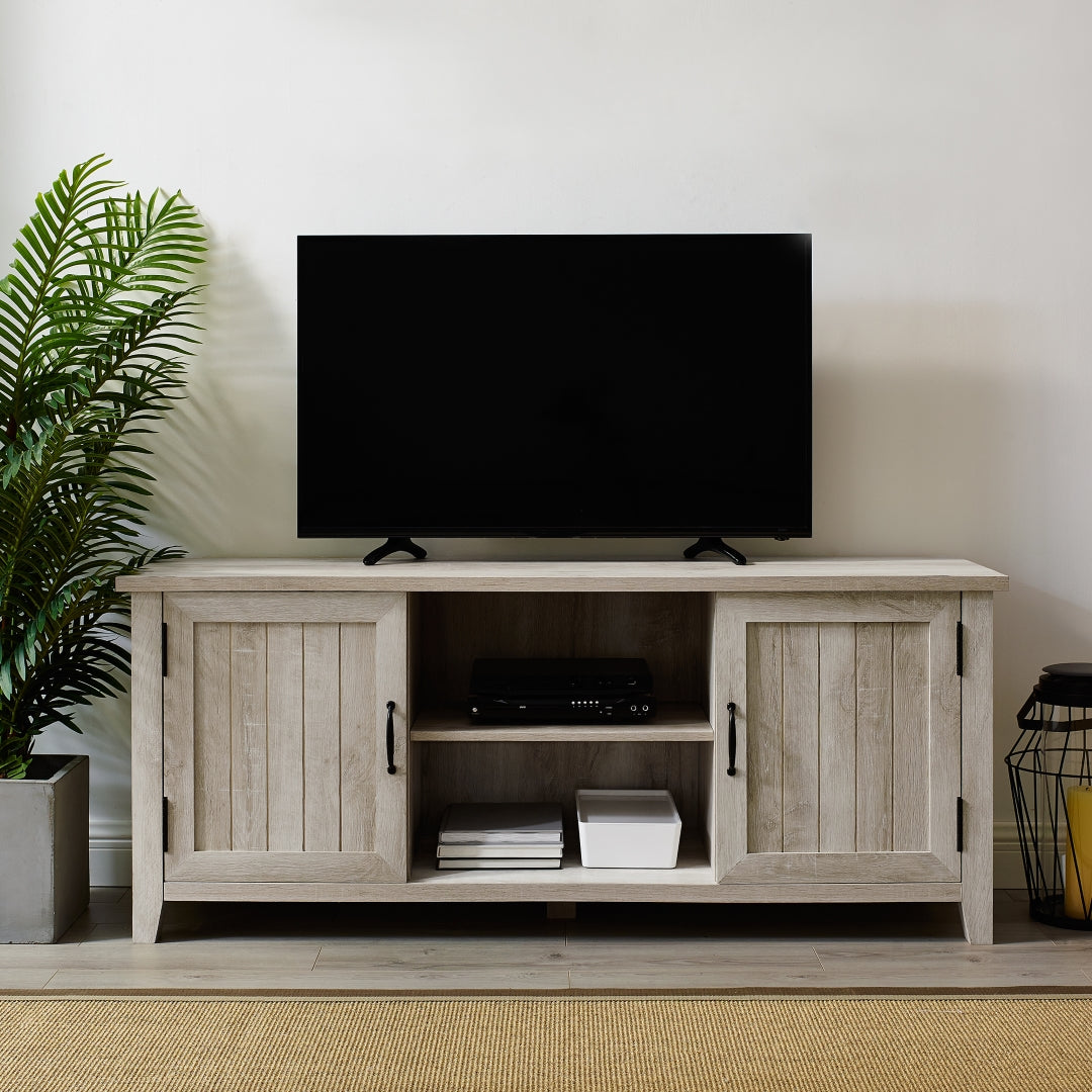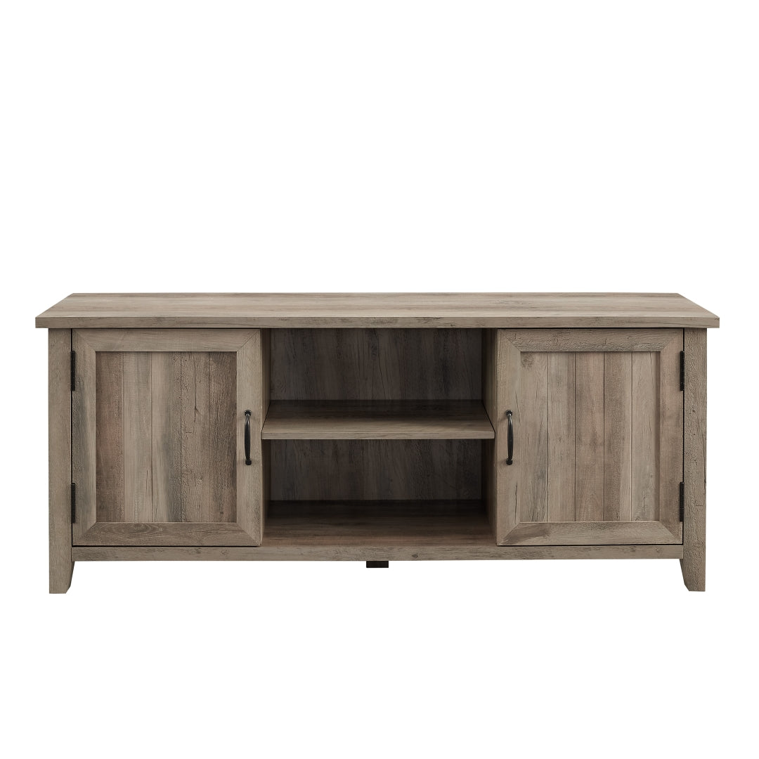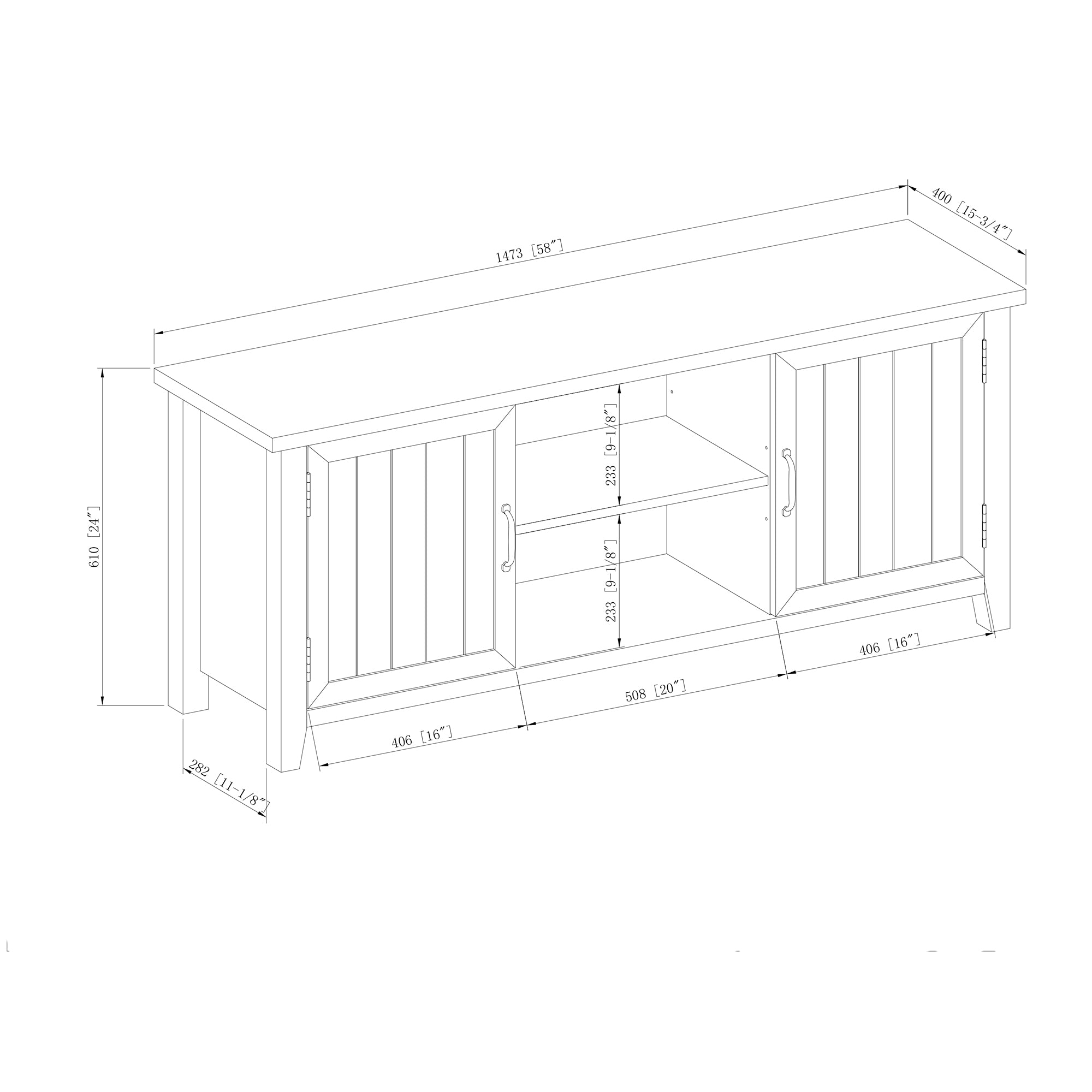 In a simple yet stylish design, this TV stand will improve the look of your home. With a modern farmhouse aesthetic with slatted cabinet door fronts and metal accents. This high-grade MDF, durable laminate, and metal entertainment center provides open and closed storage for your electronics, books, and more. With cord management to keep electronic wires organized and adjustable shelves to fit everything you need accessible. Use in your living room as a TV stand to fit up to a 64-inch TV, as a buffet table in your kitchen to hold your extra plates and glasses, or as a storage console in your bedroom.