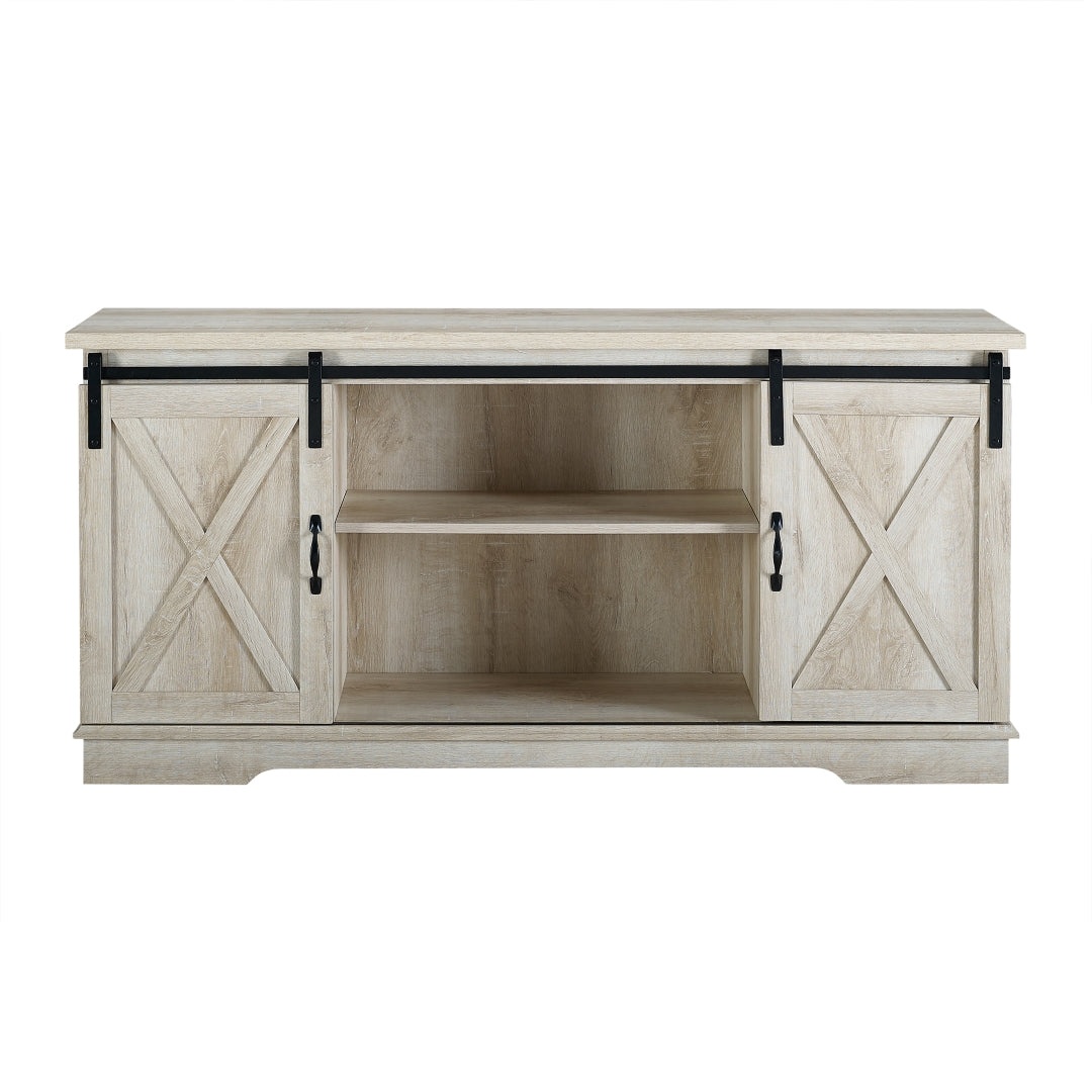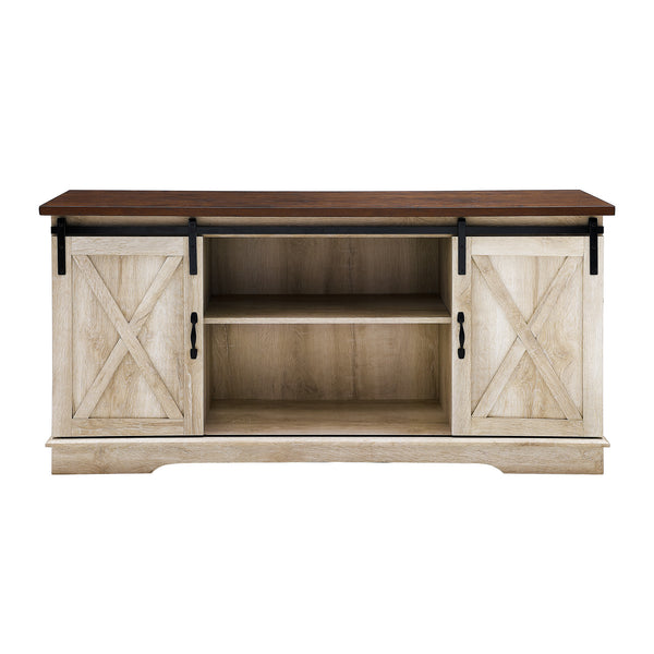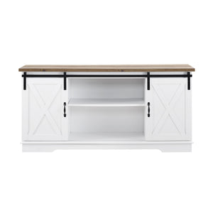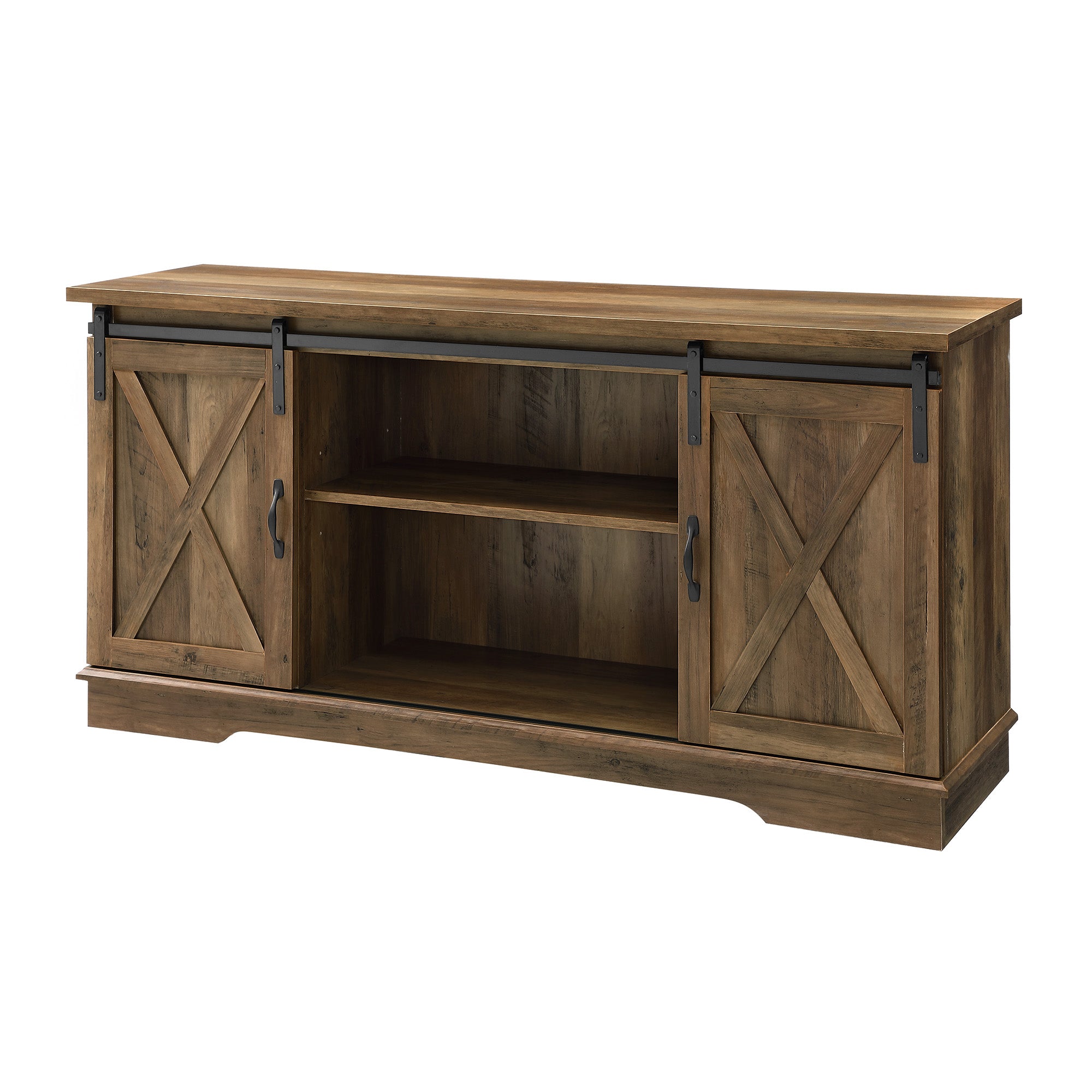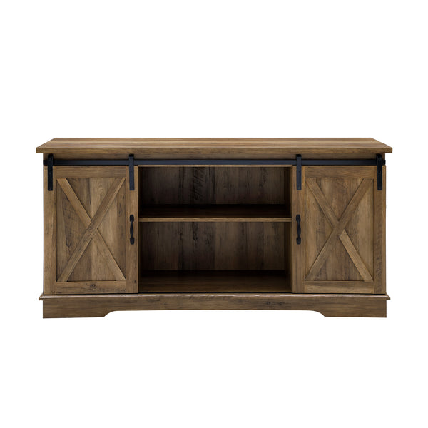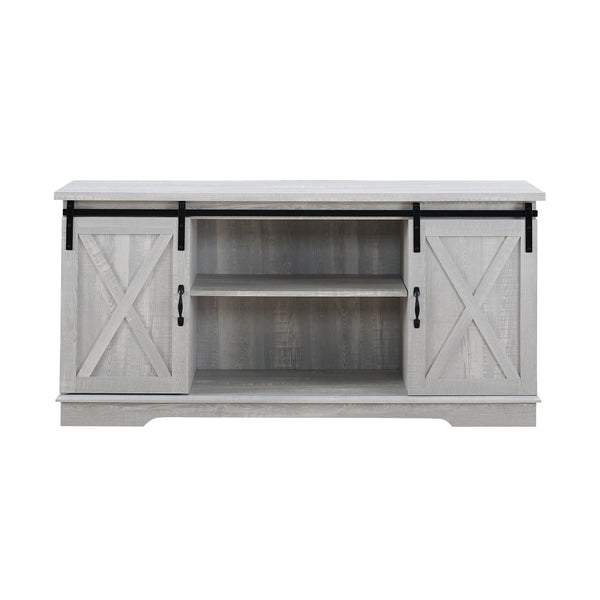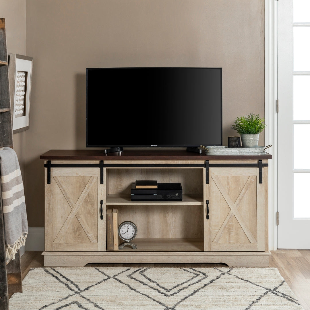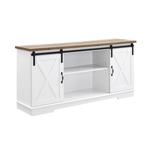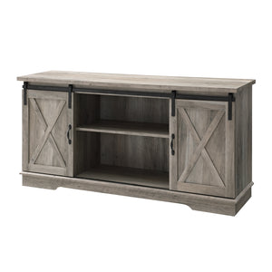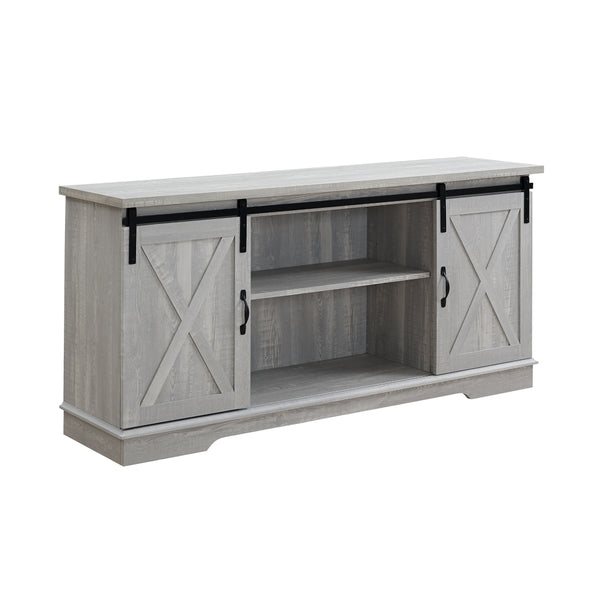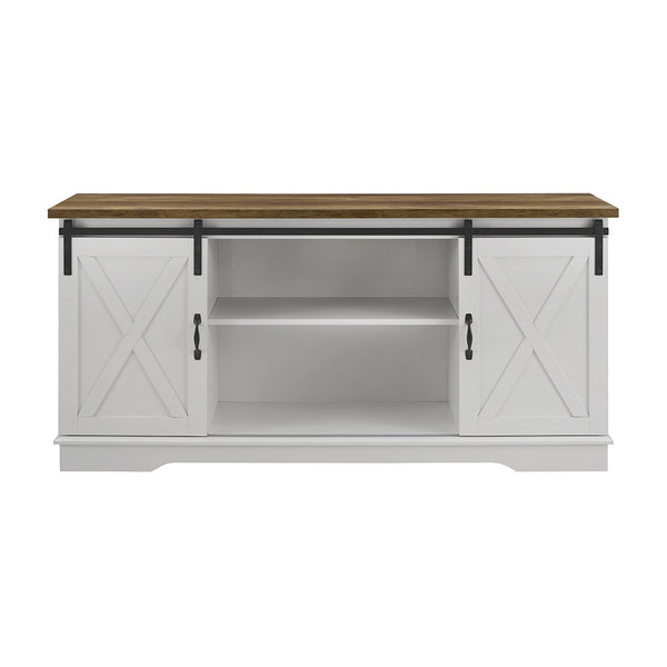 This TV stand will give your living room a charming country feel, while also providing plenty of storage space for your electronics and décor. Featuring two sliding barn door styled cabinet fronts for a versatile design where you can either close off the middle or both sides, depending on your needs. Adjustable shelving and cable management make it simple for you to keep your electronics in one place. This media console is constructed of high-grade MDF. The modern farmhouse style of this entertainment center will become a piece in your living room you’ll admire.