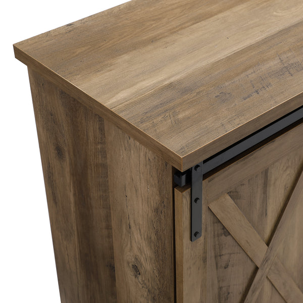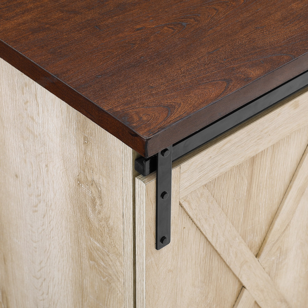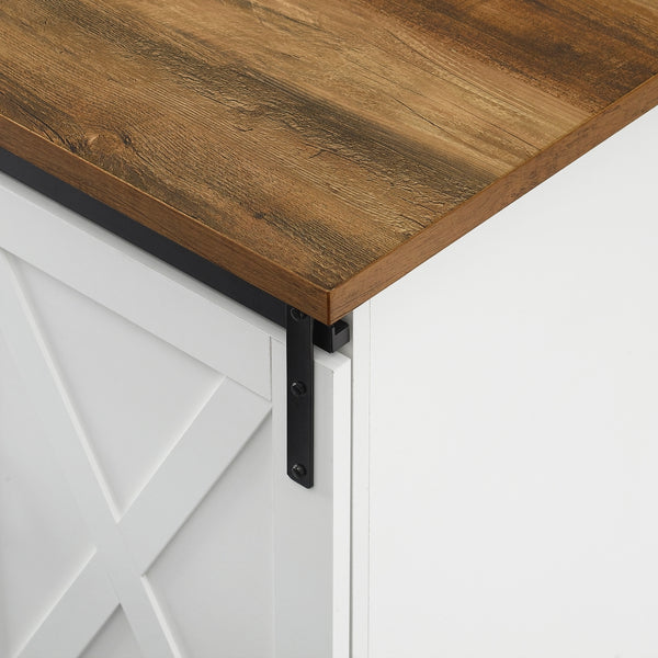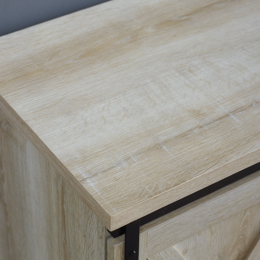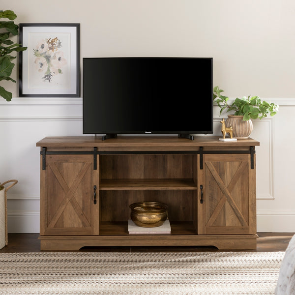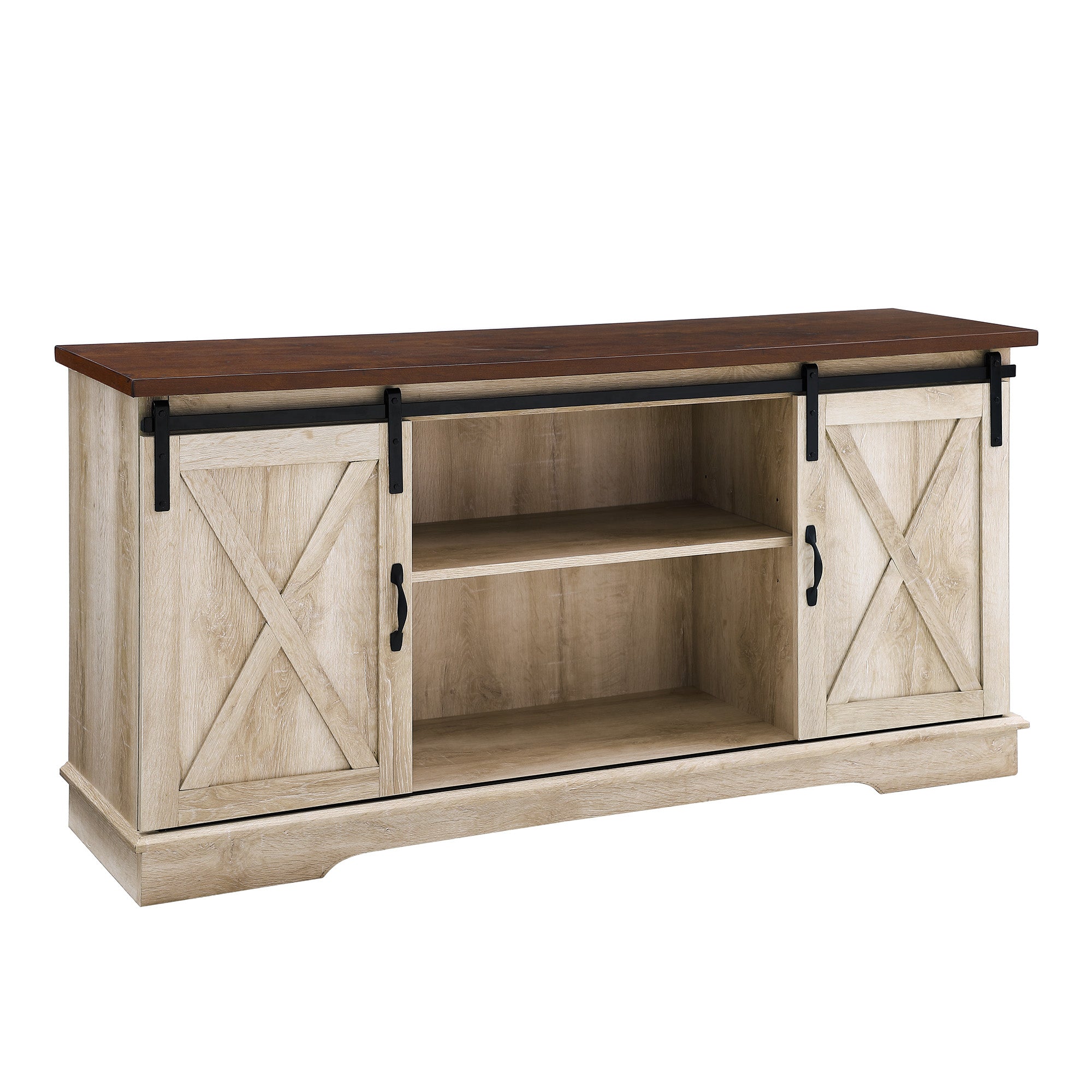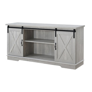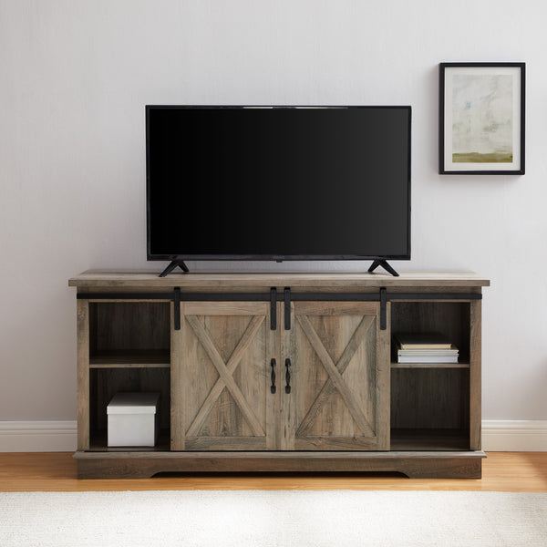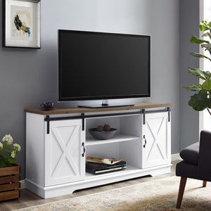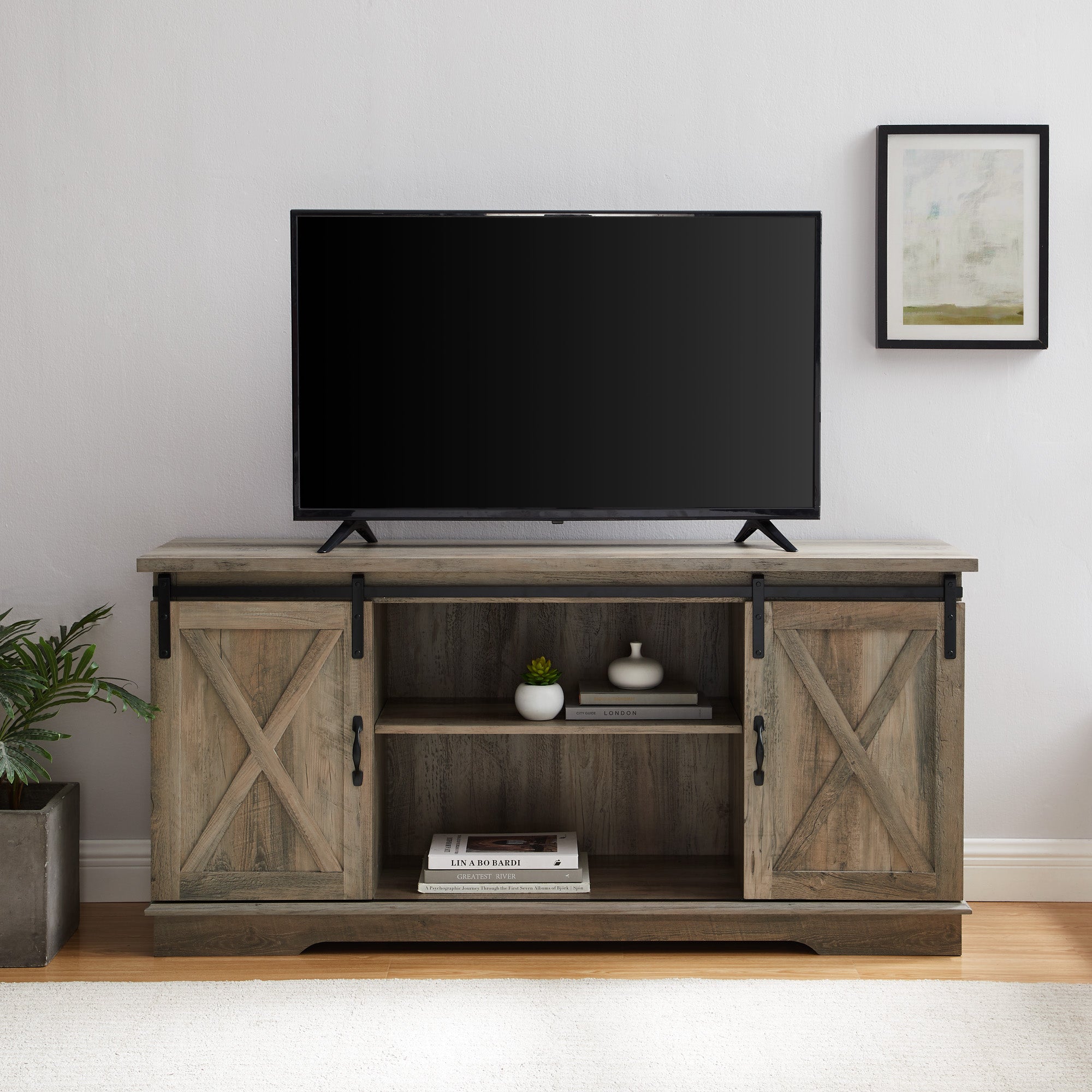 This TV stand will give your living room a charming country feel, while also providing plenty of storage space for your electronics and décor. Featuring two sliding barn door styled cabinet fronts for a versatile design where you can either close off the middle or both sides, depending on your needs. Adjustable shelving and cable management make it simple for you to keep your electronics in one place. This media console is constructed of high-grade MDF. The modern farmhouse style of this entertainment center will become a piece in your living room you’ll admire.