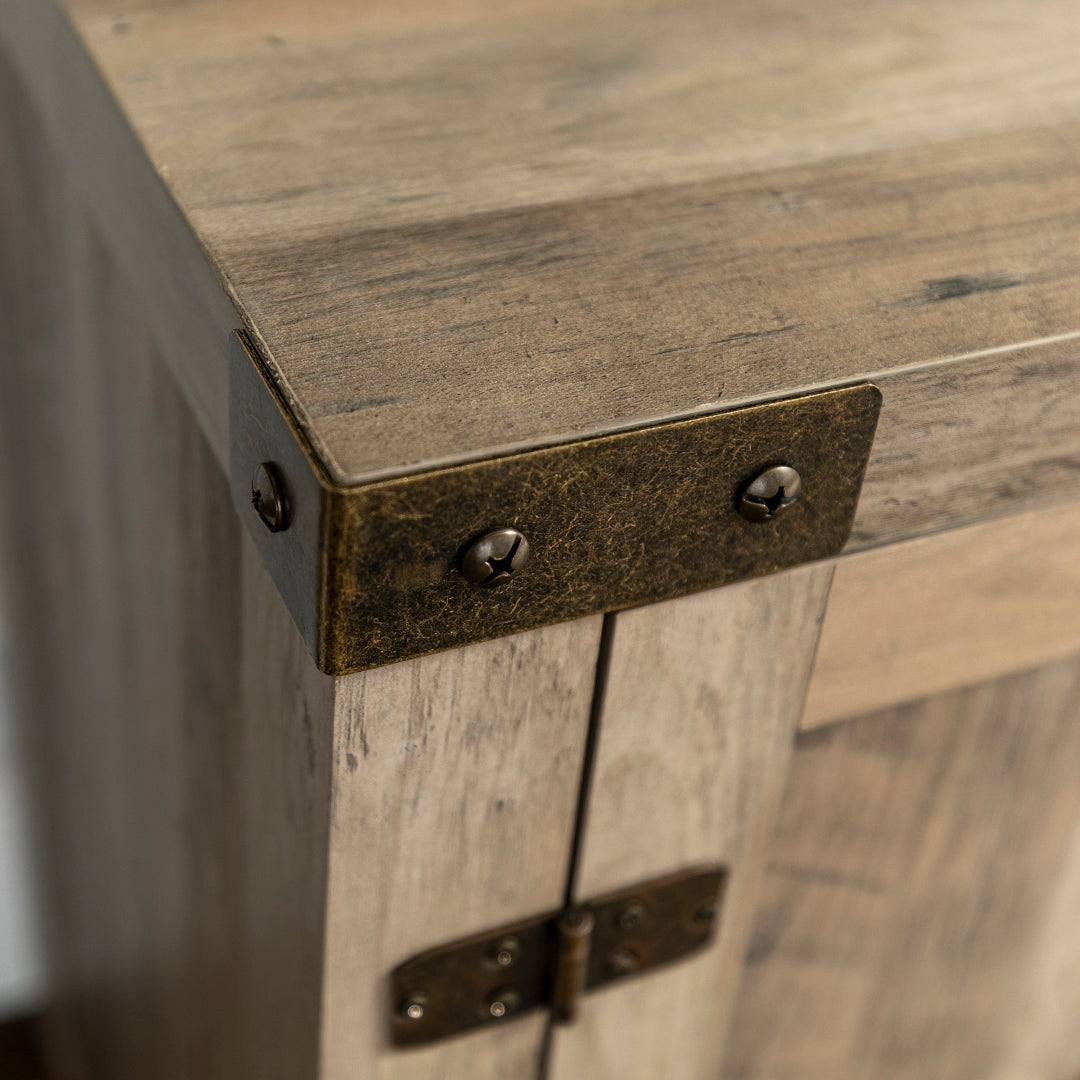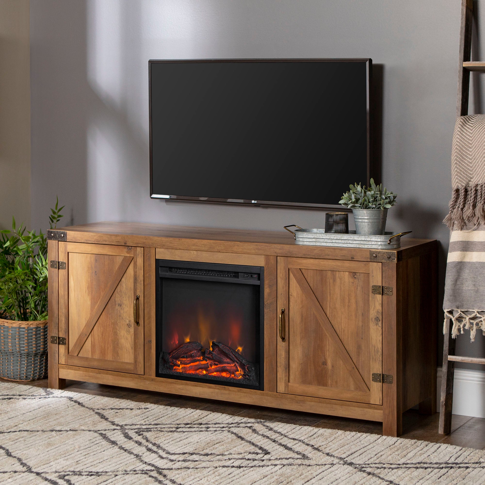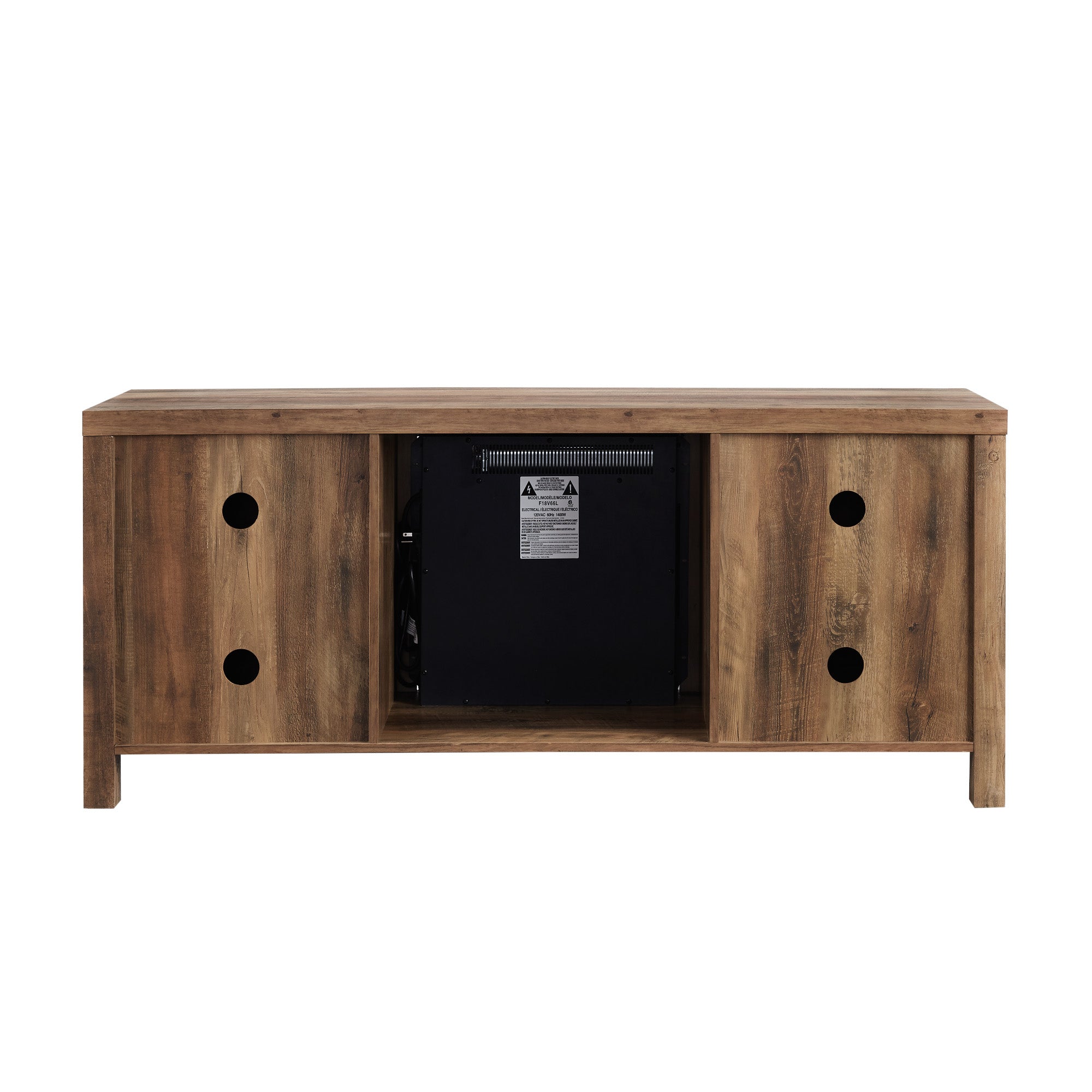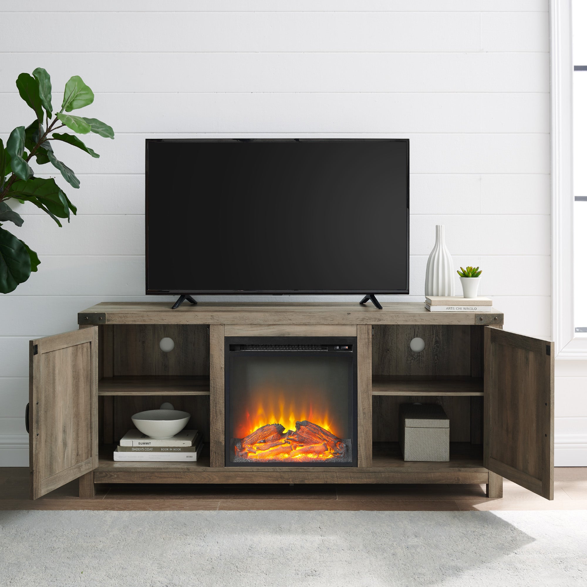 This cozy 58-inch fireplace TV stand is the perfect piece to give your living or family room area a charming country feel. Features concealed storage space behind the barn styled side doors with adjustable shelving to fit your media and accessories, while having a mix of rustic and modern farmhouse style. Includes a fireplace insert to warm up when it gets chilly that’s easy to use and requires no electrician or venting.