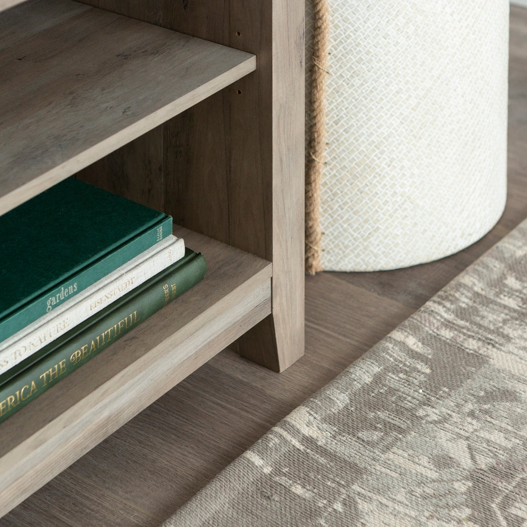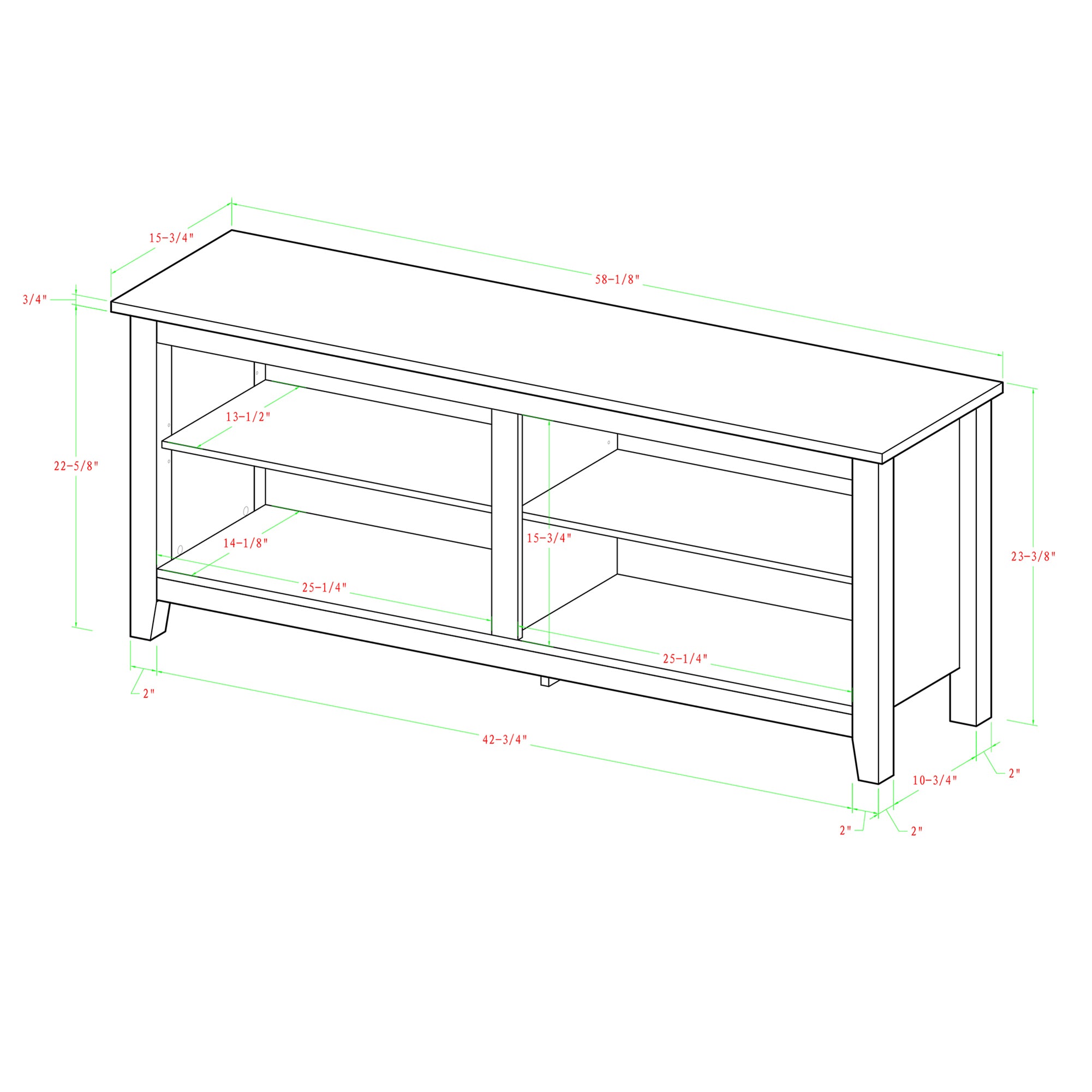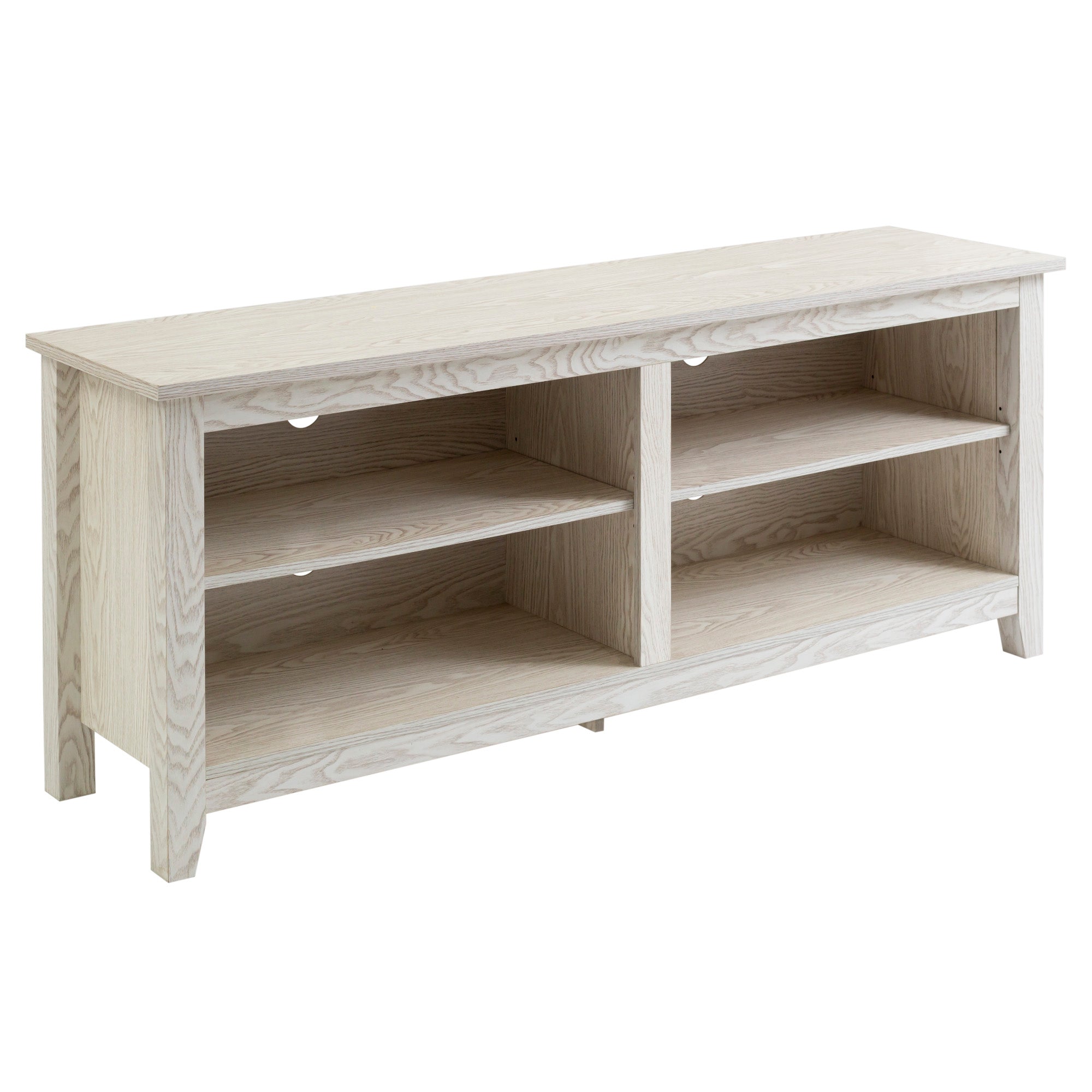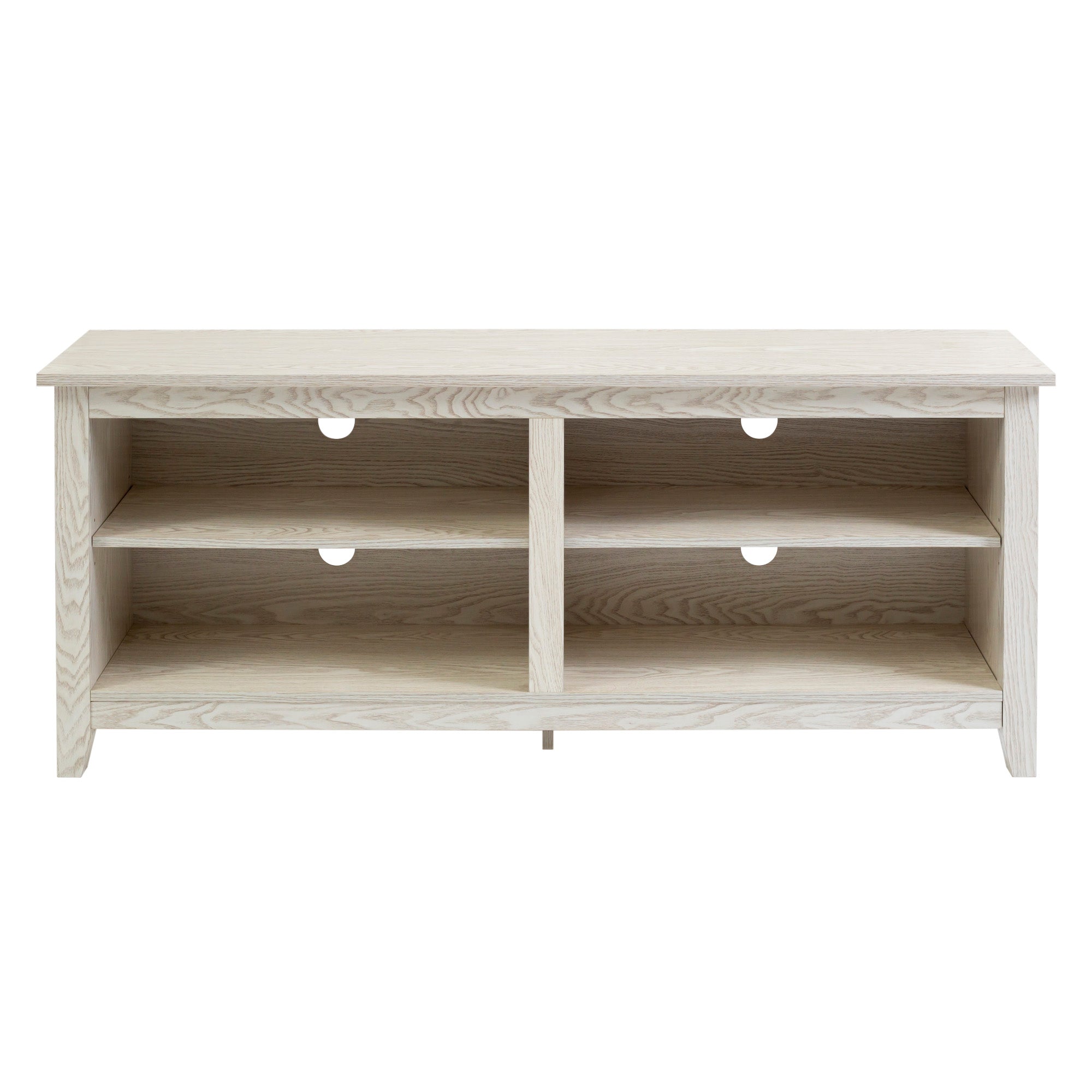 Display your TV in style with this 58-inch TV stand. Crafted from high-grade MDF with a durable laminate finish for a rich, textured surface, this storage console features two adjustable shelves on both sides for anything from your electronics to your home décor. With a cord management port at the back of each shelving space, you’ll never have to worry about a tangled mess of wires as it’ll keep them organized. This entertainment center mixes a traditional style with the on trend rustic farmhouse look with its simple design and will be a classic piece to your living room. This media stand will accommodate most flat-panel TVs up to 60 inches.
