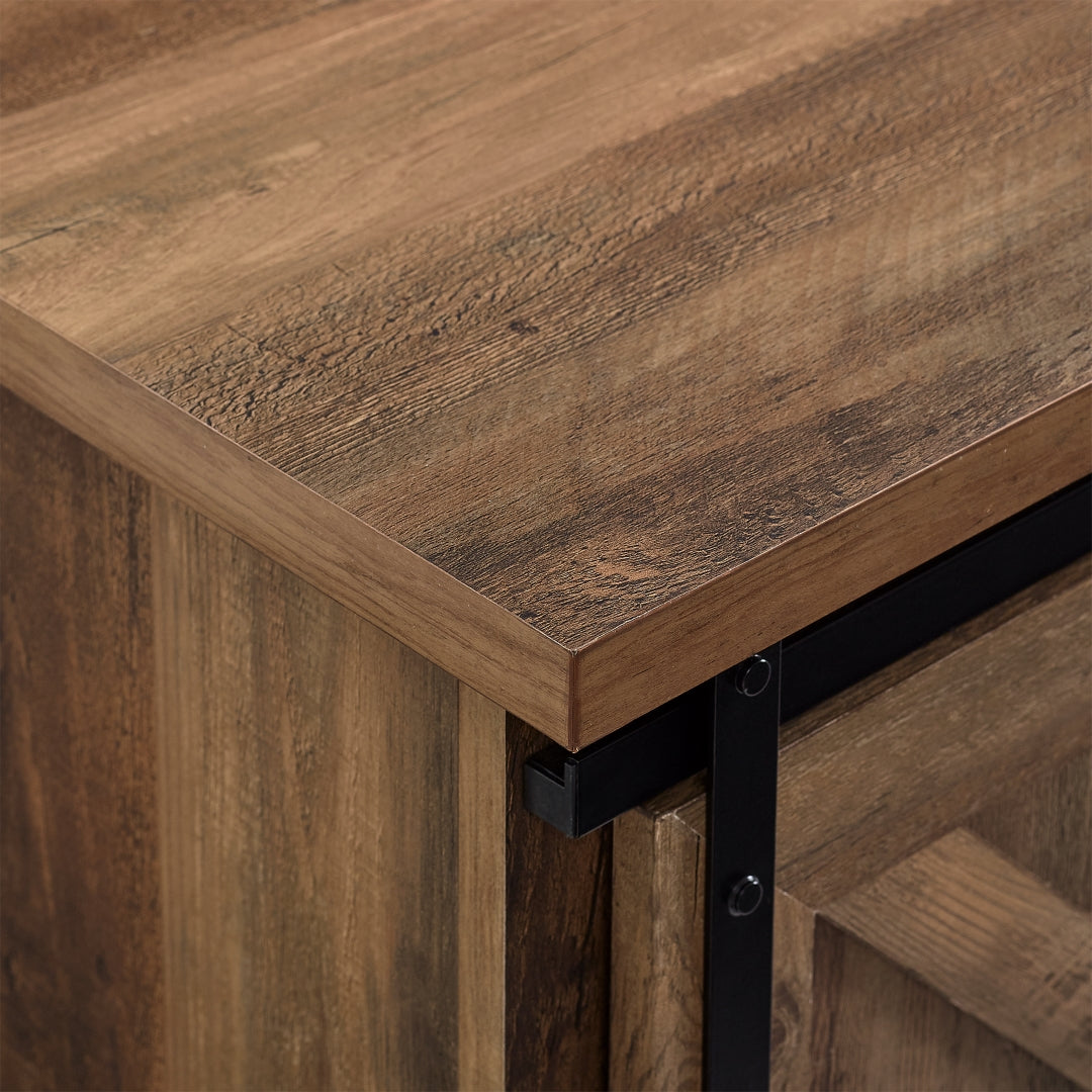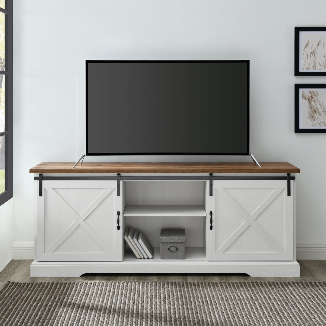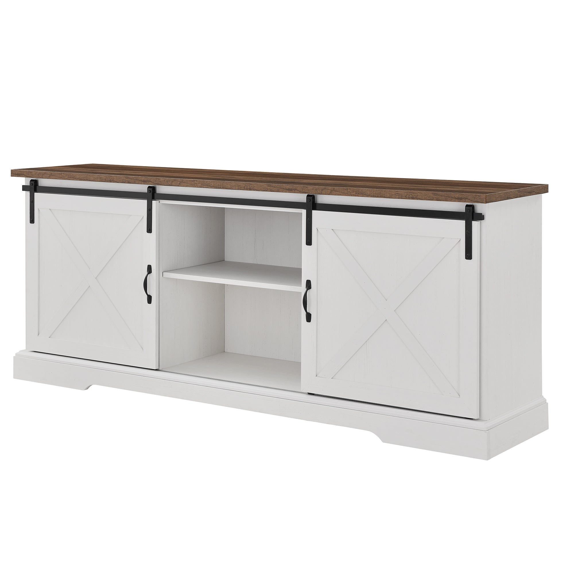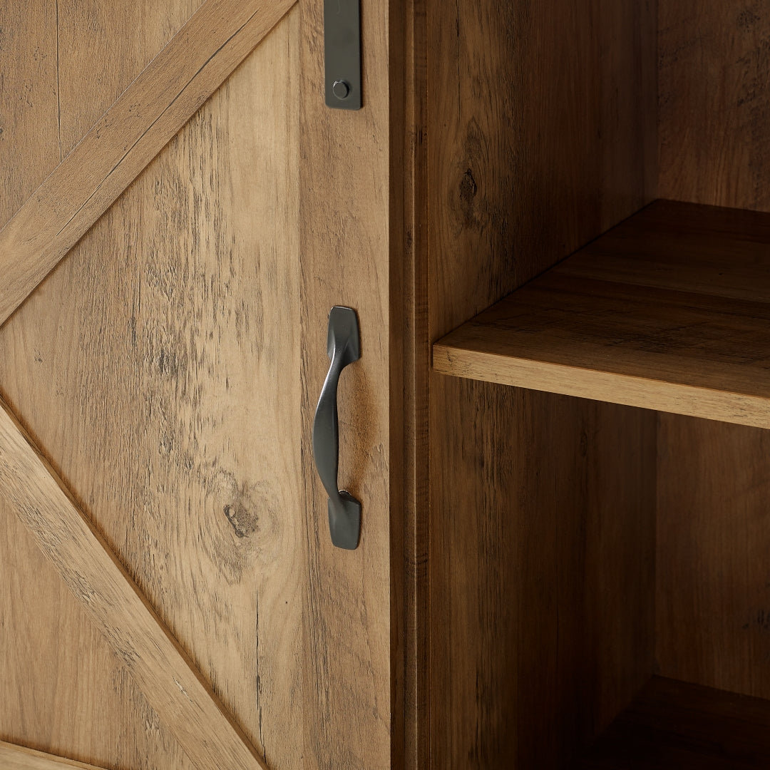- Product Feature 1: 2 sliding barn doors for a blend of open and closed storage