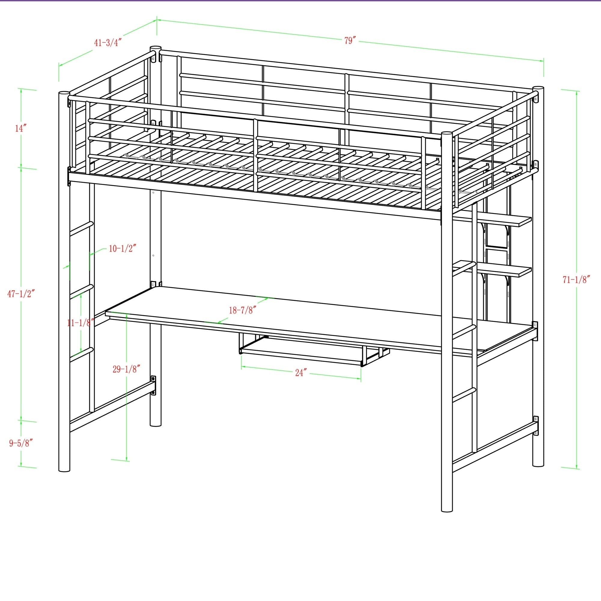 - Dimensions: BTOZWH Bunk Bed Work Station, White - 71" H x 79" L x 42" W