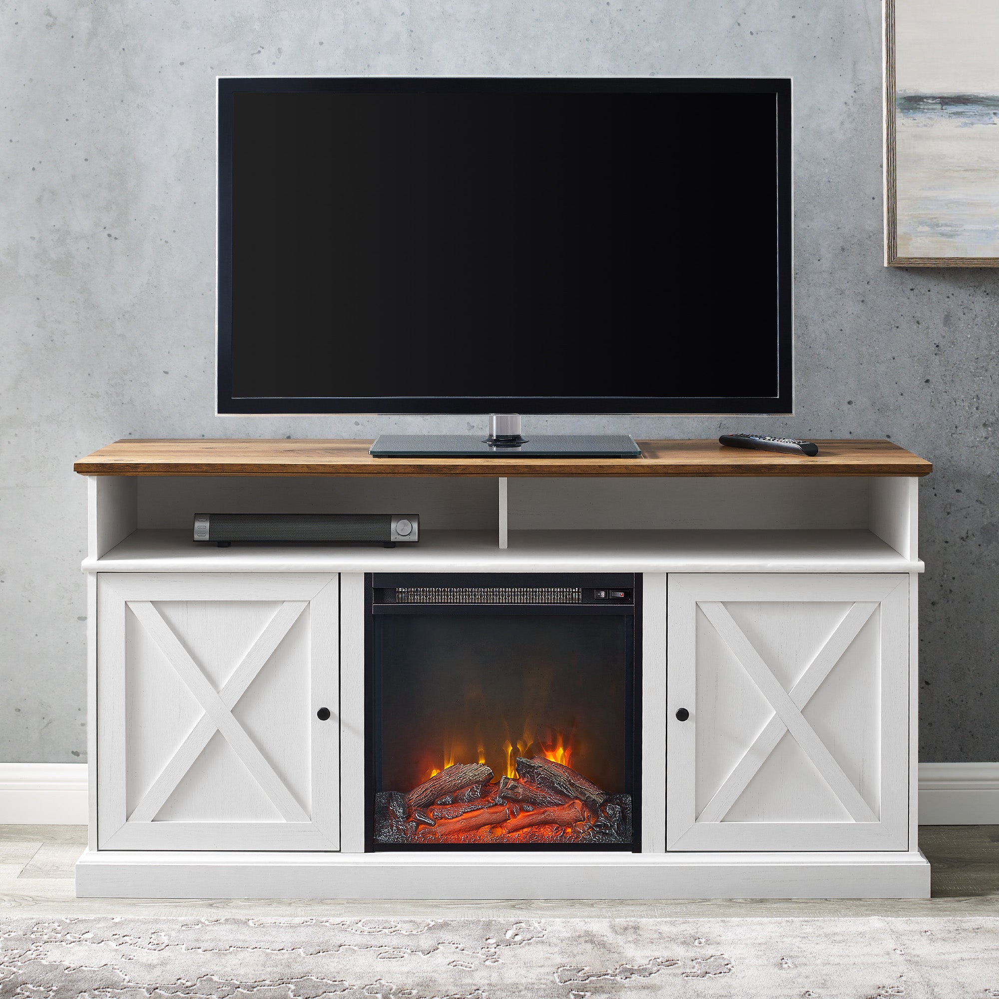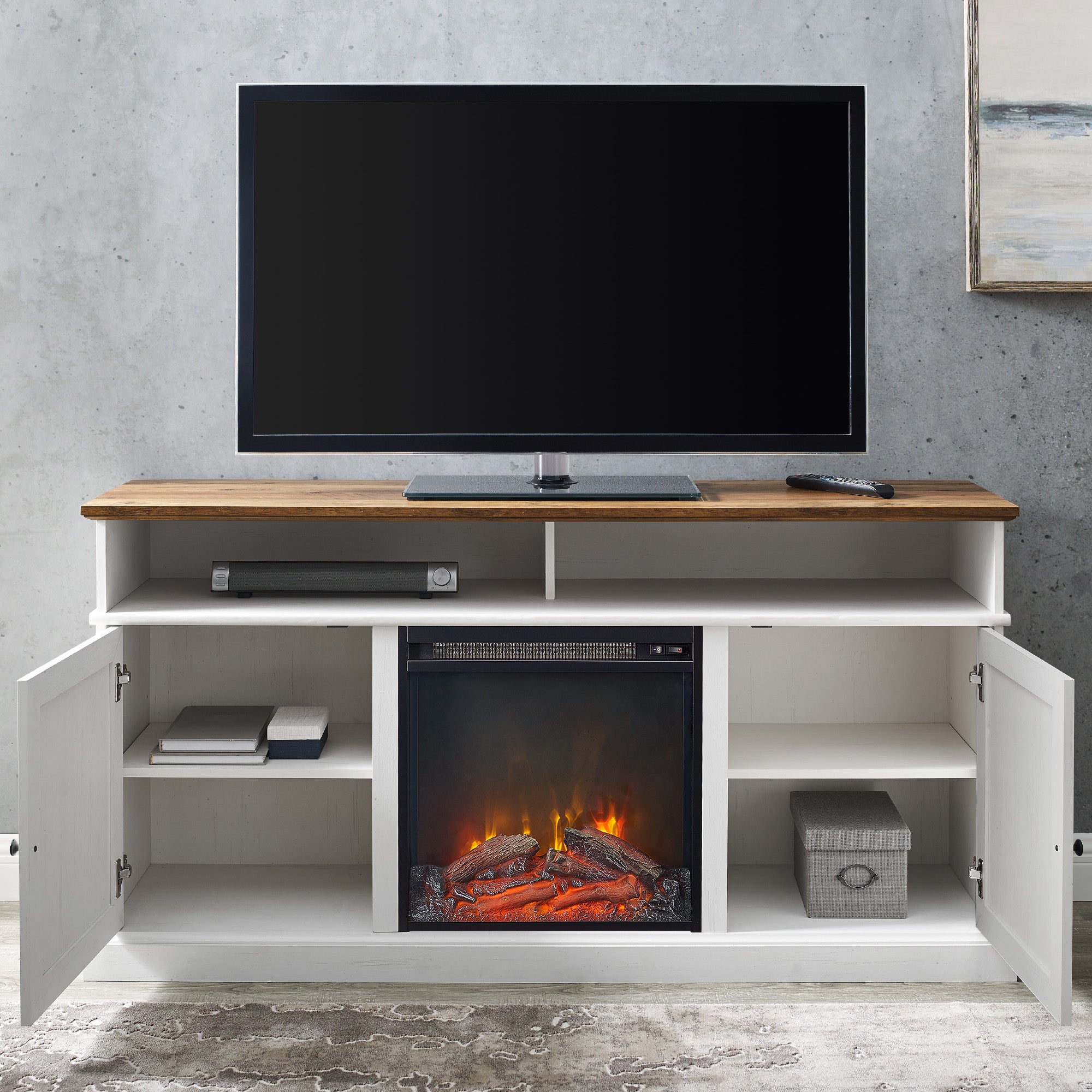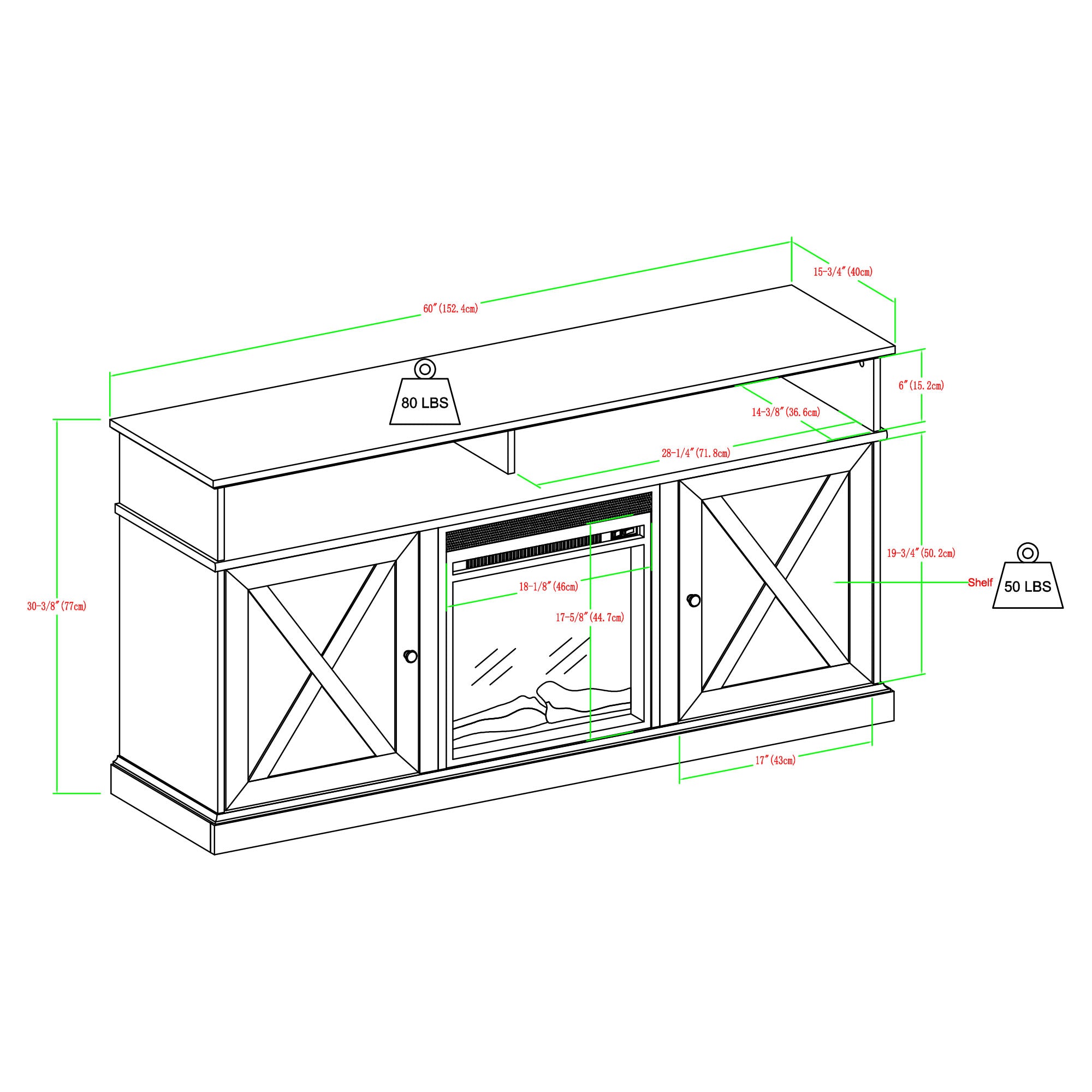 - Additional Features: 2 adjustable shelves, 2 doors with adjustable soft close metal hinges, cord management, 18" electric fireplace insert, wall anchor - Estimated Assembly Time: 180 minutes