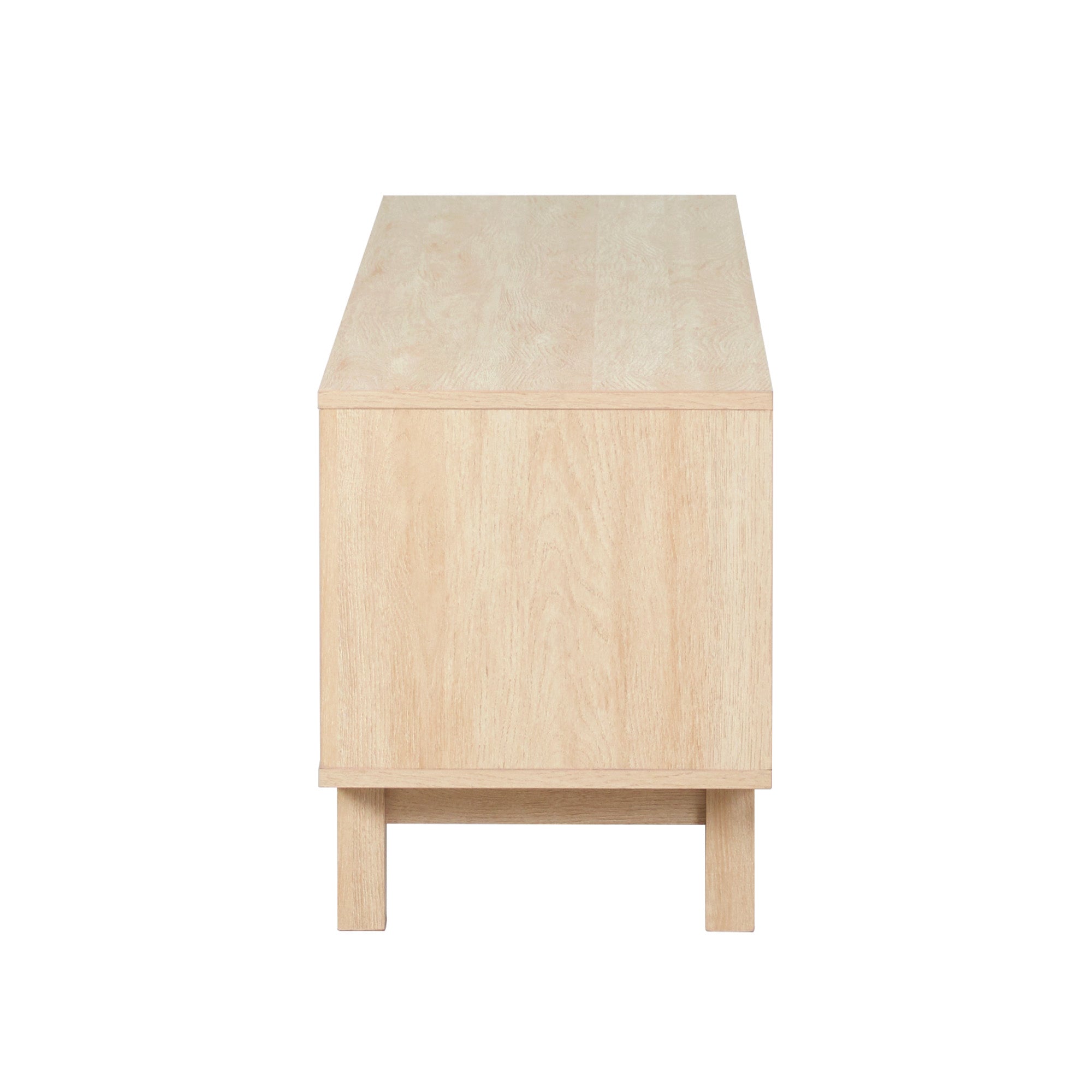 - Feature 2: Made with warp-resistant MDF, durable laminate, and faux rattan
