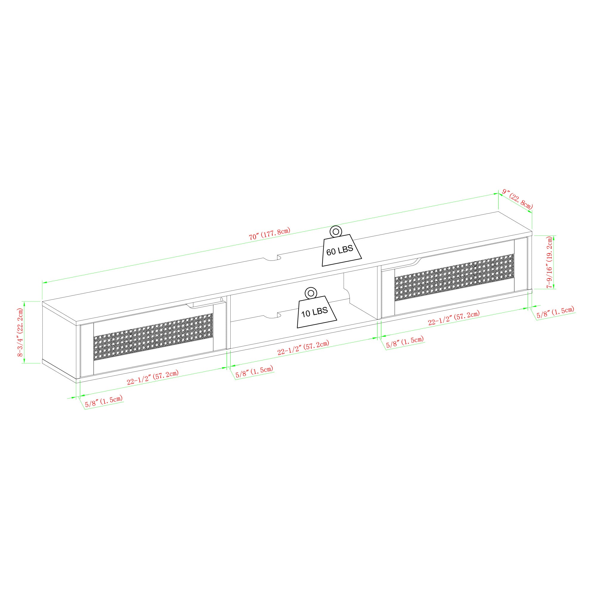 - Feature 9: suitable (to hang under) flat screen TV's up to 80"